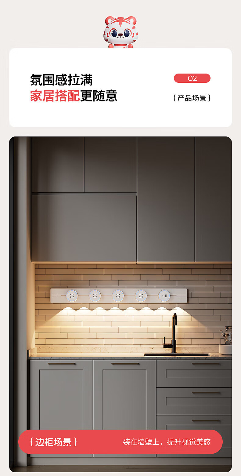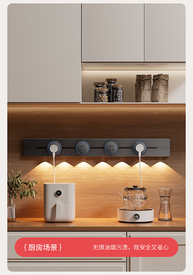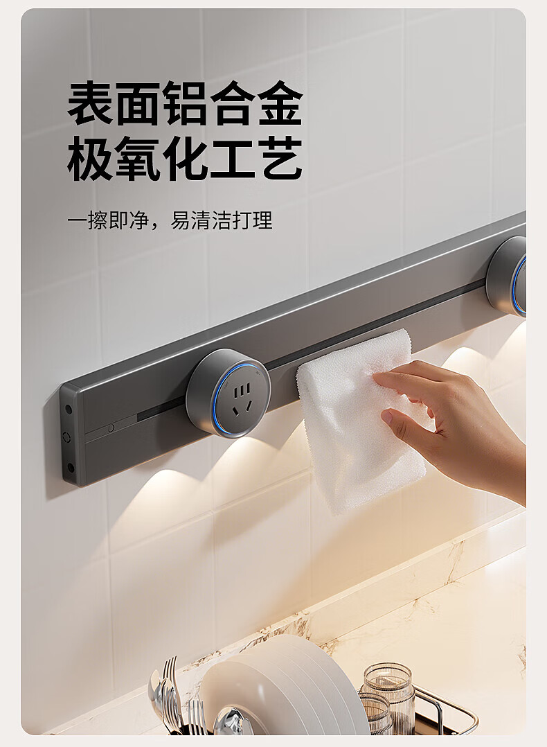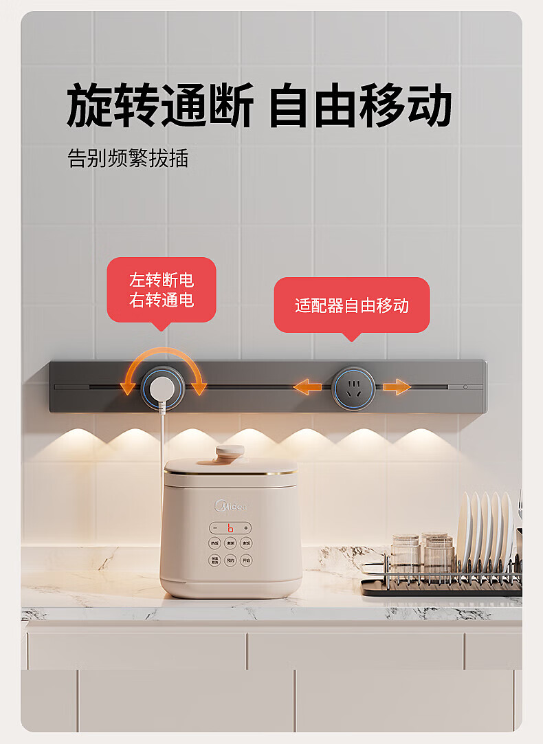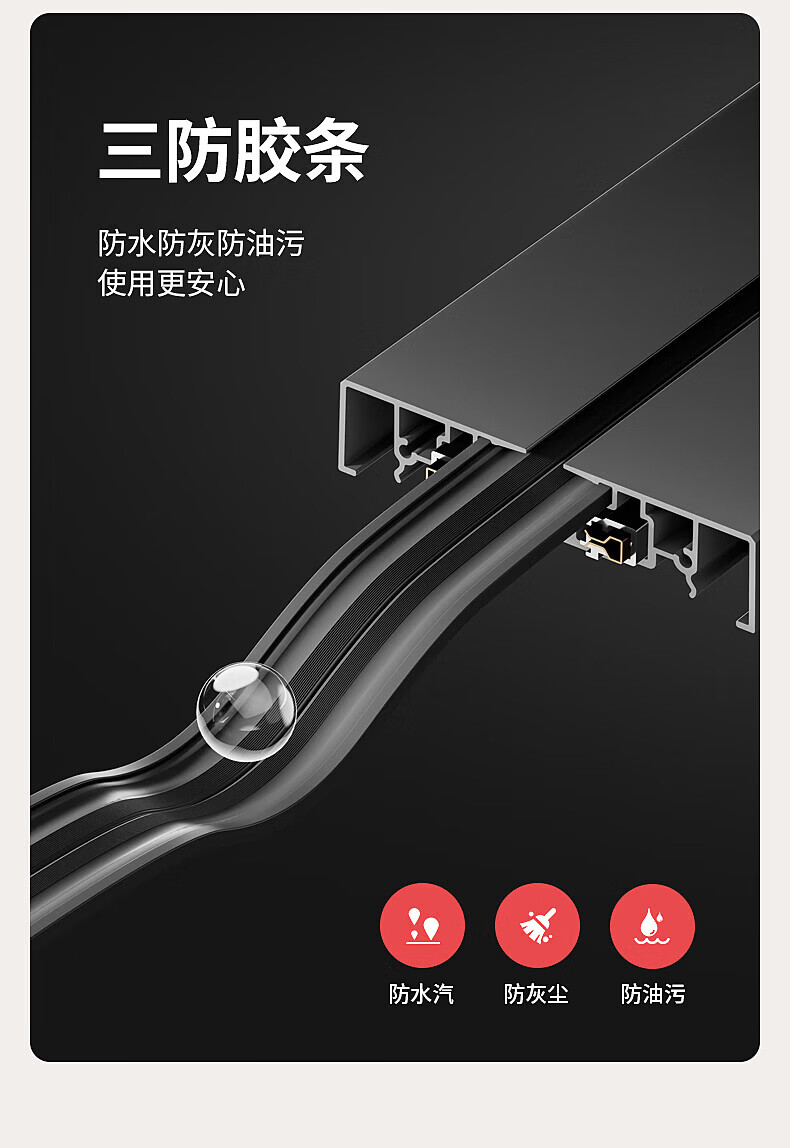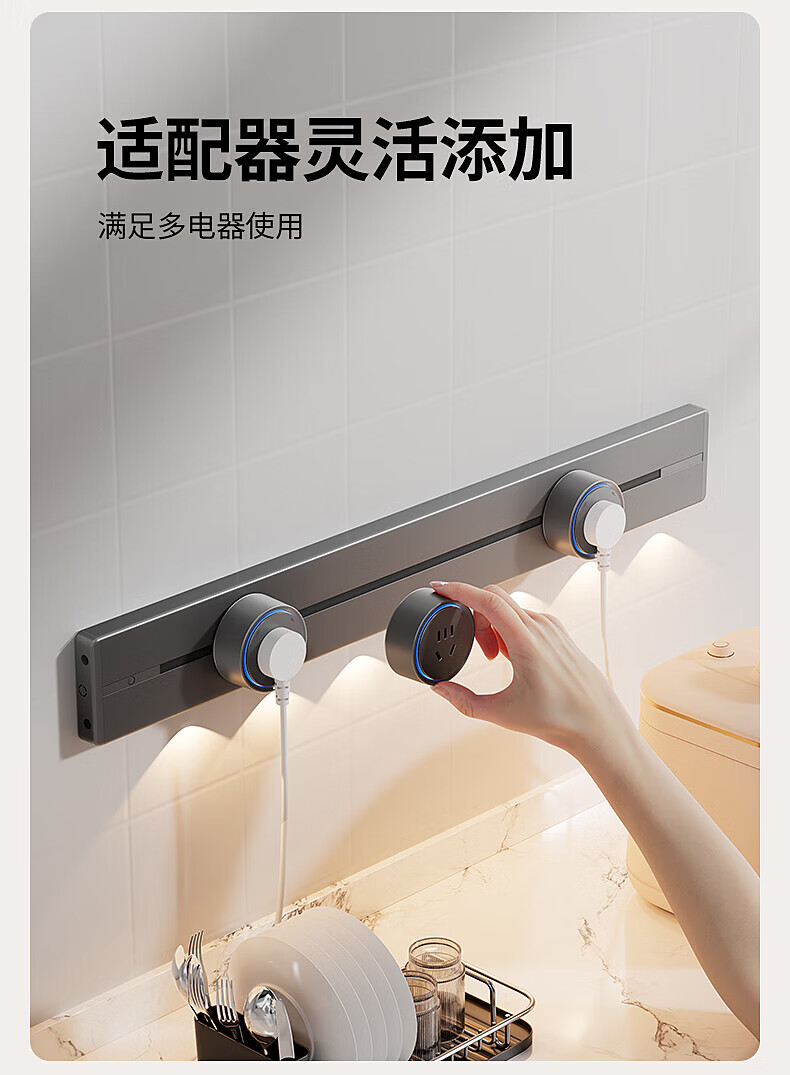 国际电工明装触摸感应灯轨道插座可移动家用厨房客厅导轨插座大功率滑轨插 暗夜黑 50CM山丘感应灯轨道+3个五孔