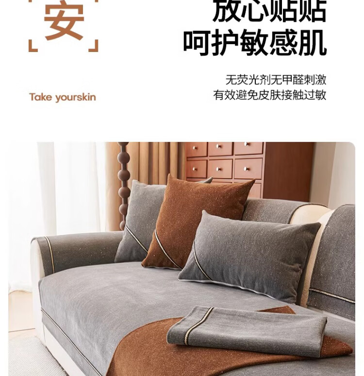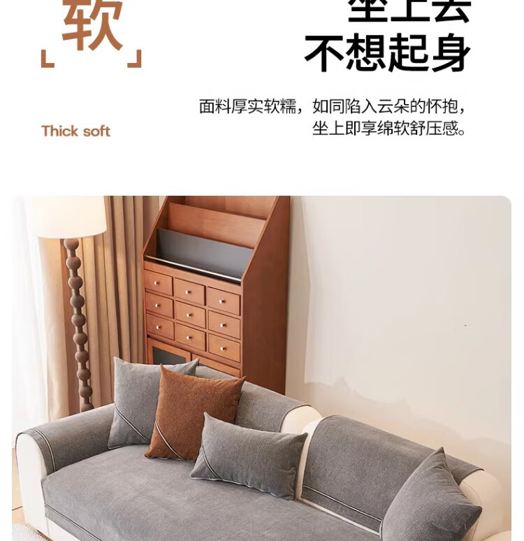 无印良品沙发垫子高档轻奢防滑耐磨雪尼尔四季通用坐垫防滑沙发座垫可定制 思慕-灰色 【防猫抓不粘毛 无色差无异味 】 90X160cm (小两人位)