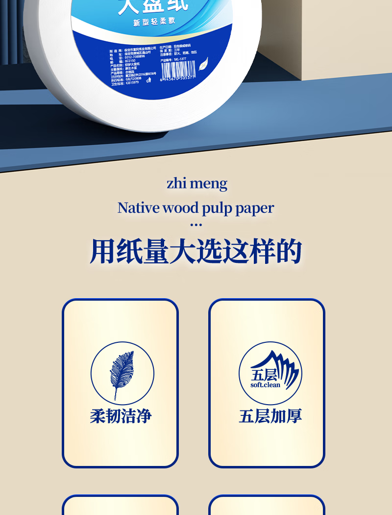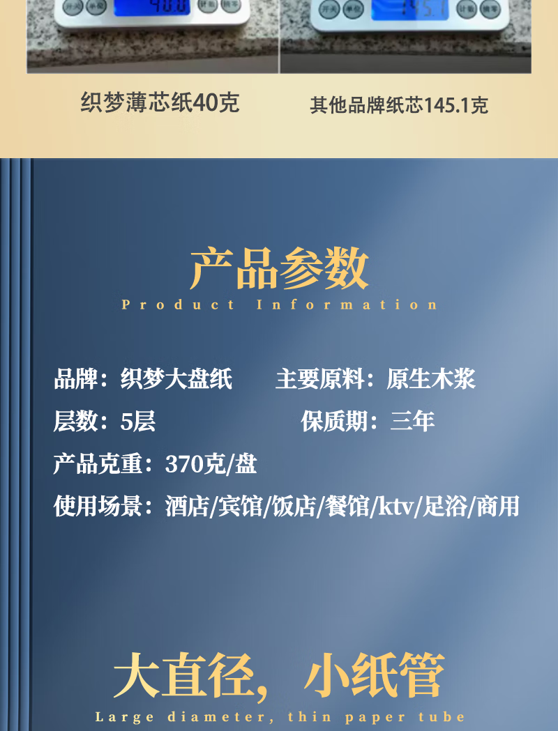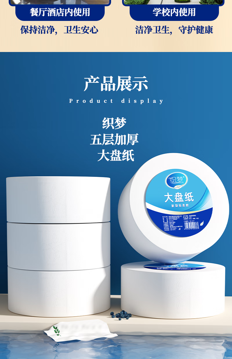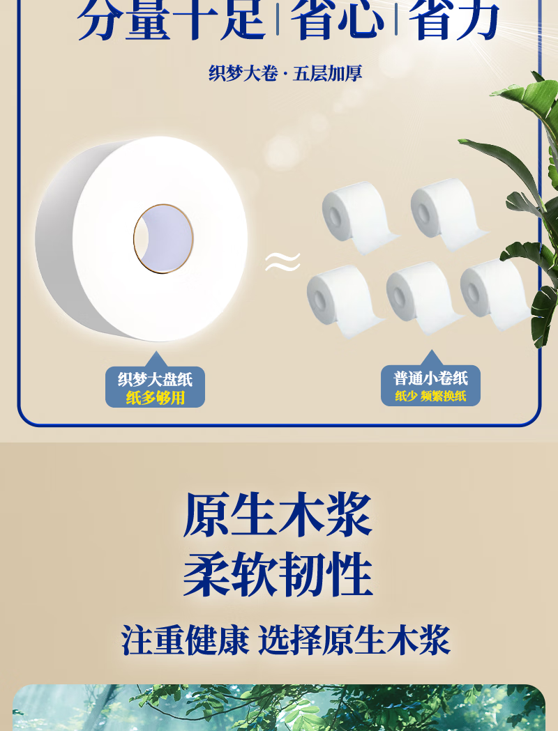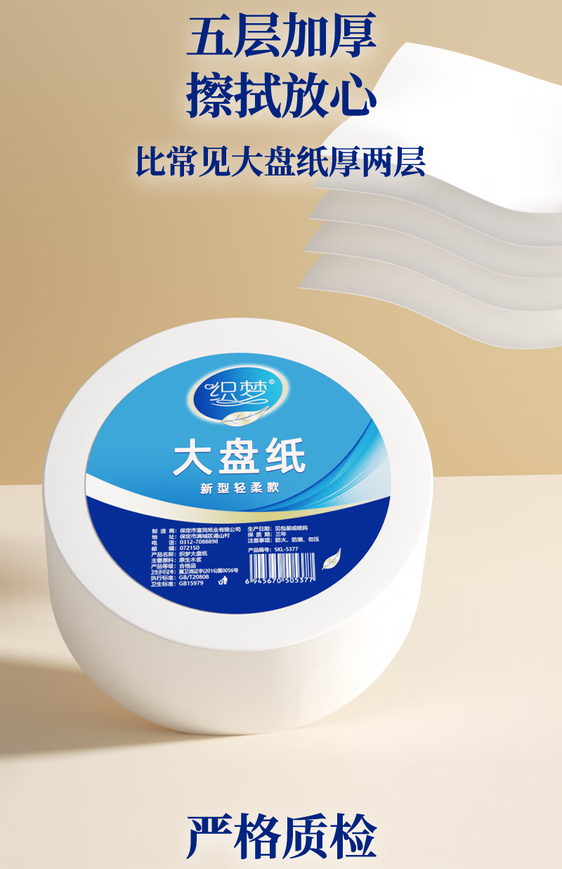 织梦【精选厂家】大卷纸厕所卷纸酒店大卷卫生纸厕纸商用有芯卷纸大筒 5层 370g/卷*12卷