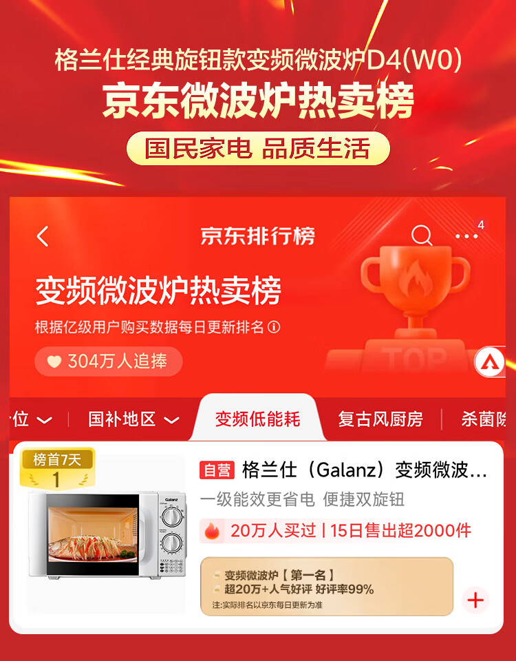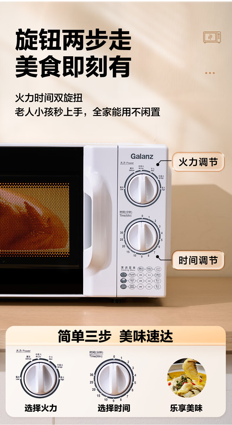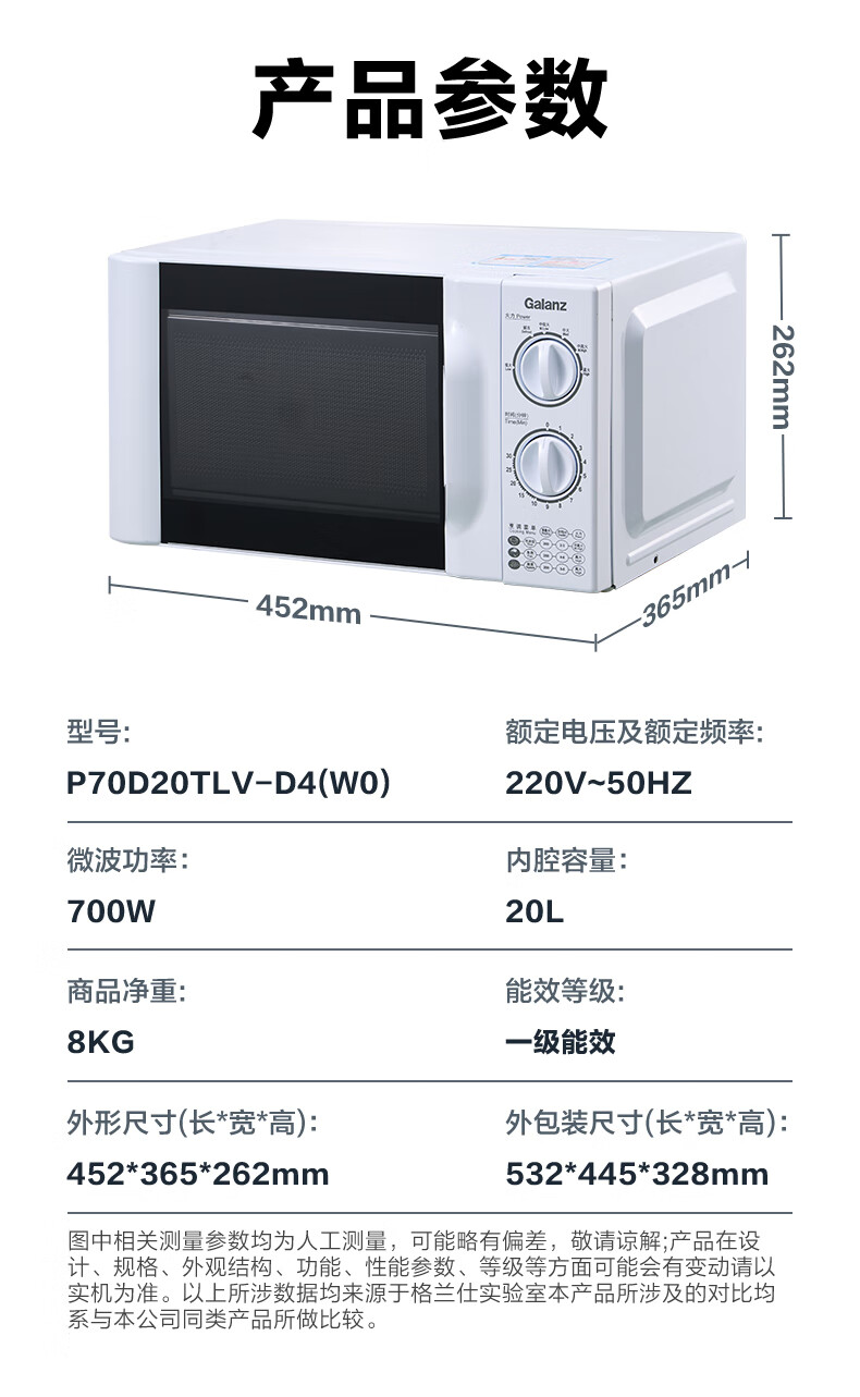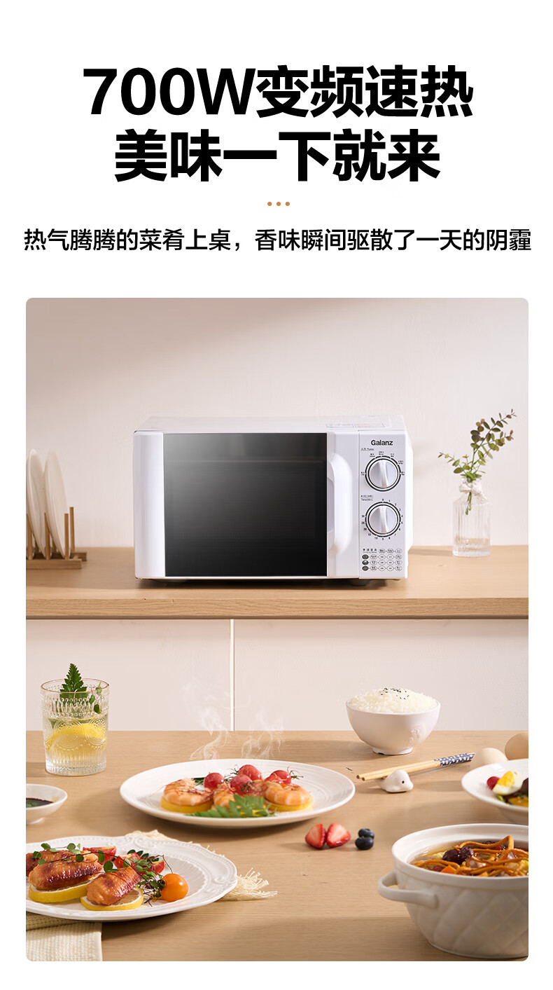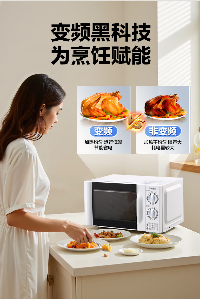 格兰仕(Galanz)变频微波炉家用 一级能效省电 经典转盘加热 双旋便捷操作 D4变频款(D4W0)