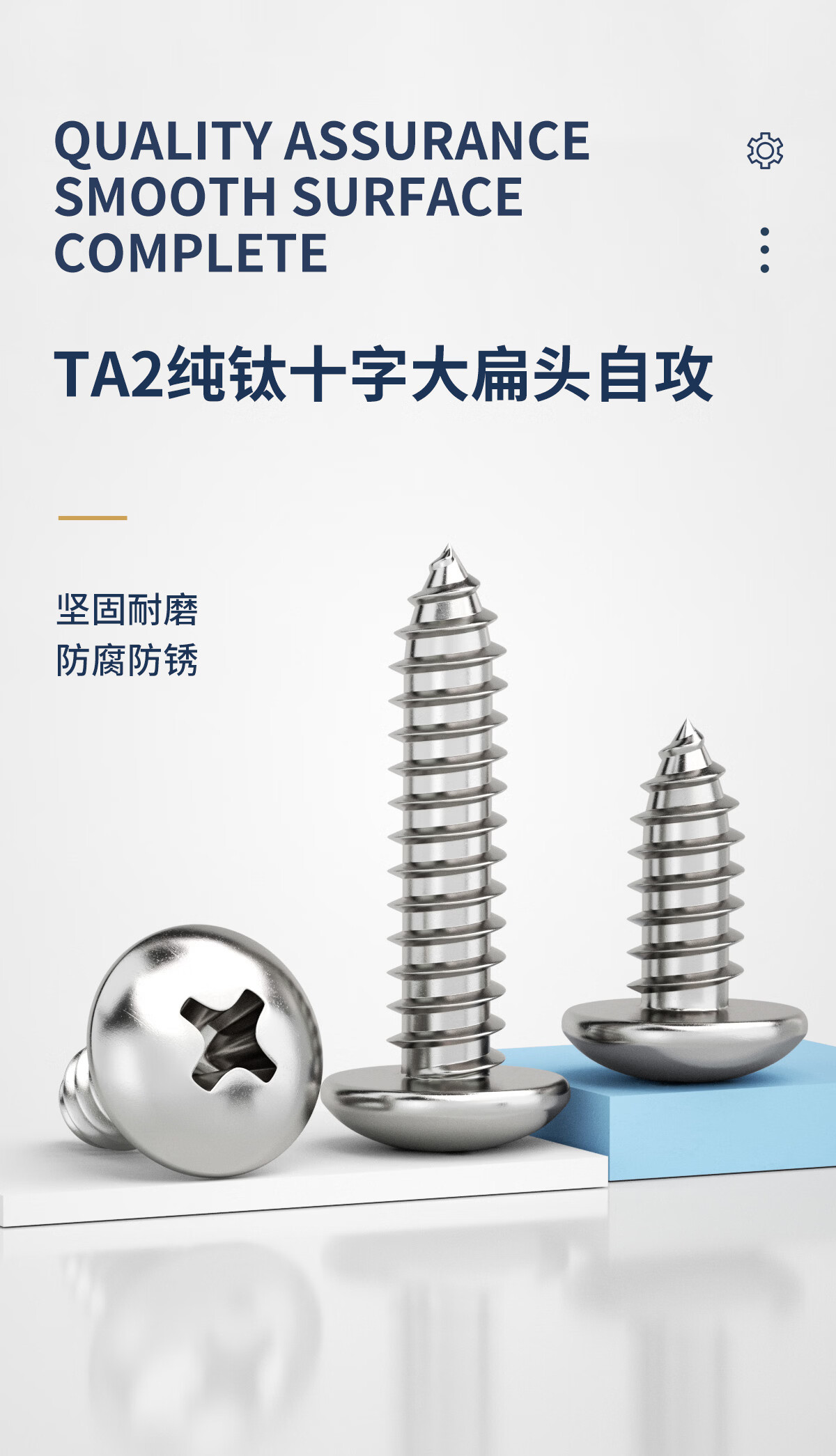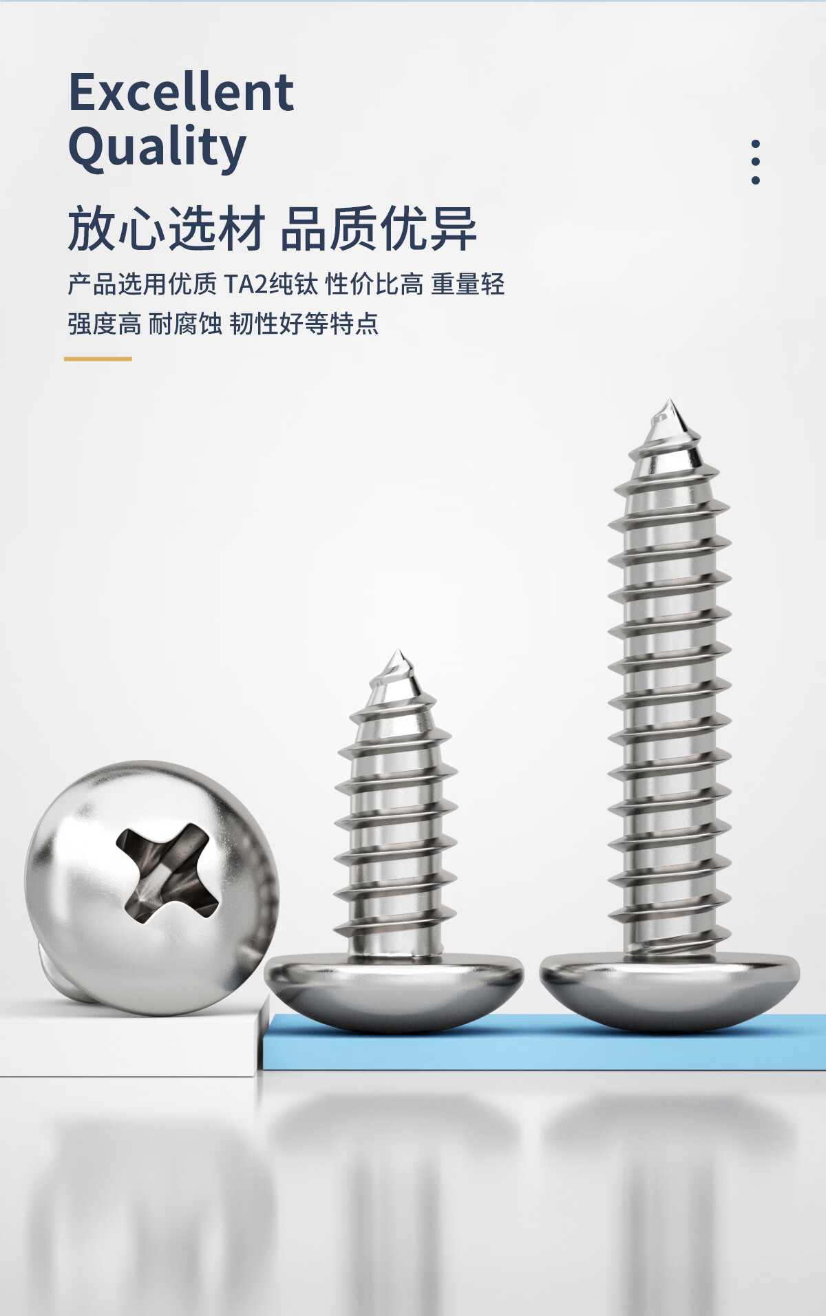 固万基(GUWANJI)国标TA2纯钛十字大扁头自攻螺丝钉伞头蘑菇头圆头十字木螺丝M4M5 M4x10(5只)