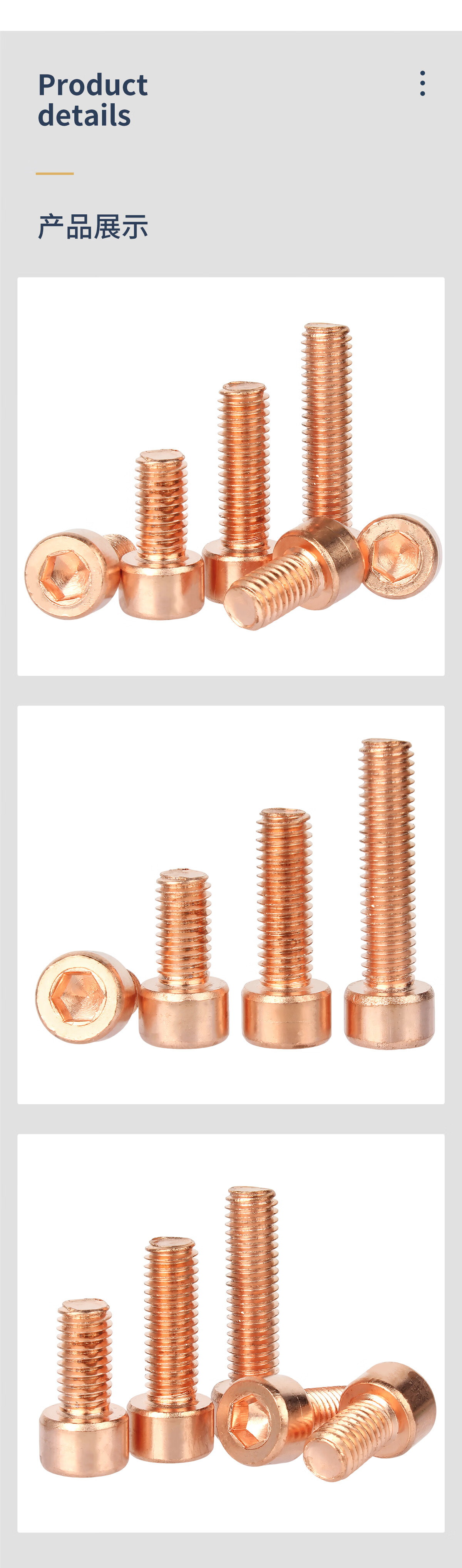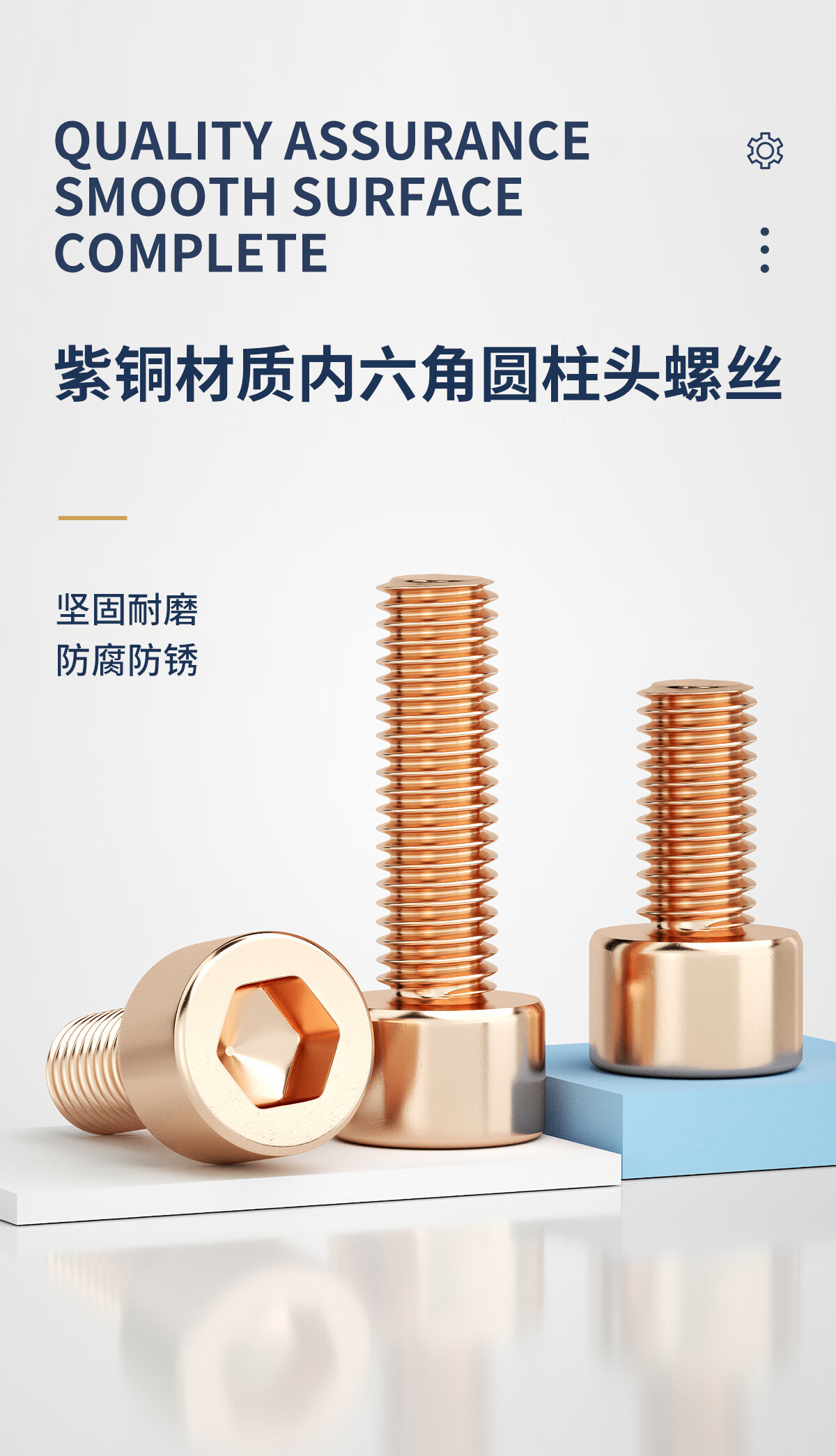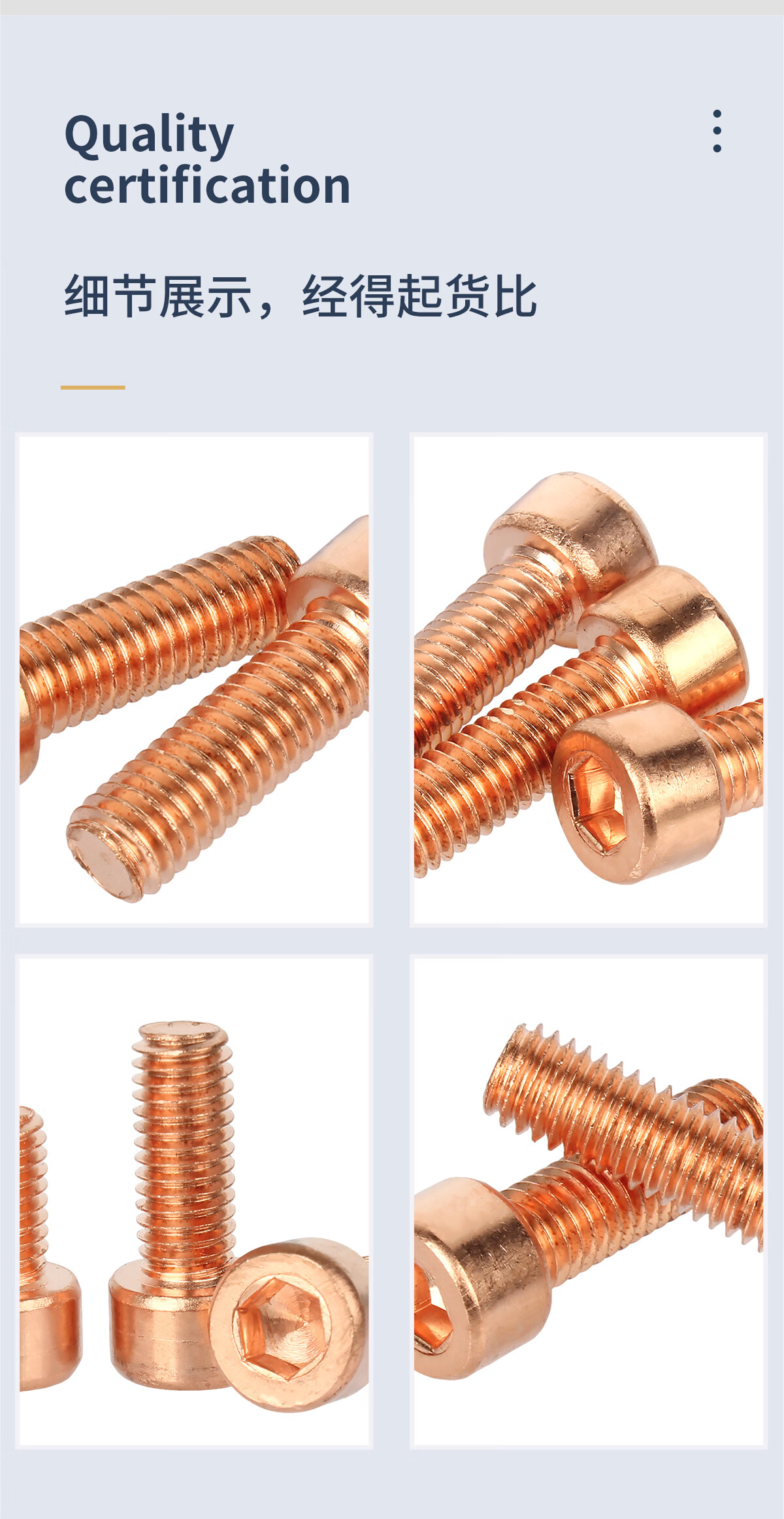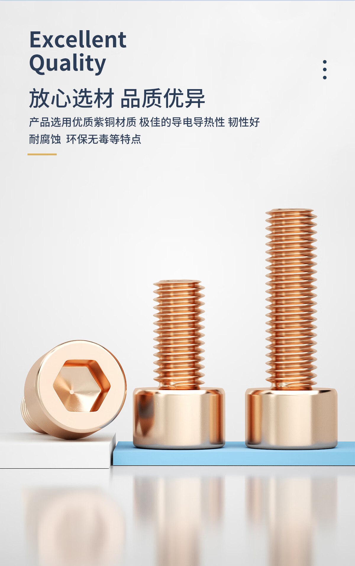 固万基(GUWANJI)国标T2纯紫铜内六角螺丝红铜圆柱头螺栓铜螺钉全M4M5M6M8M10M12mm M2x4[30只]
