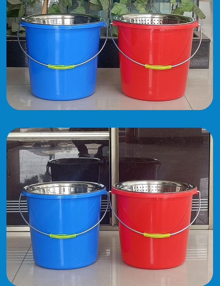 GIOIO厨房泔水干湿分离过滤垃圾桶泔水过滤茶叶潲水桶漏桶大号厨房商用 红色12L无盖+塑料沥水篮
