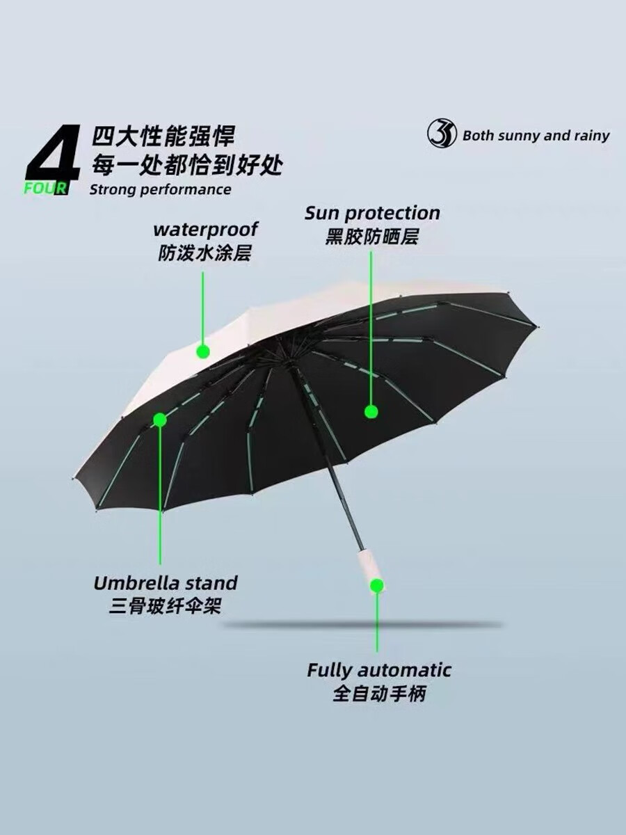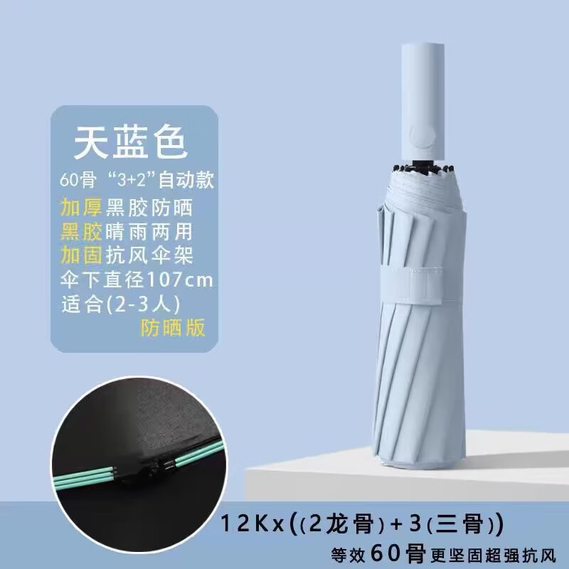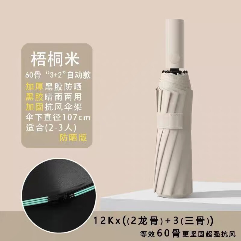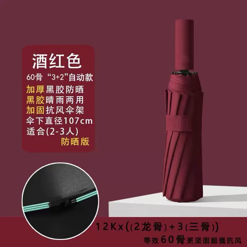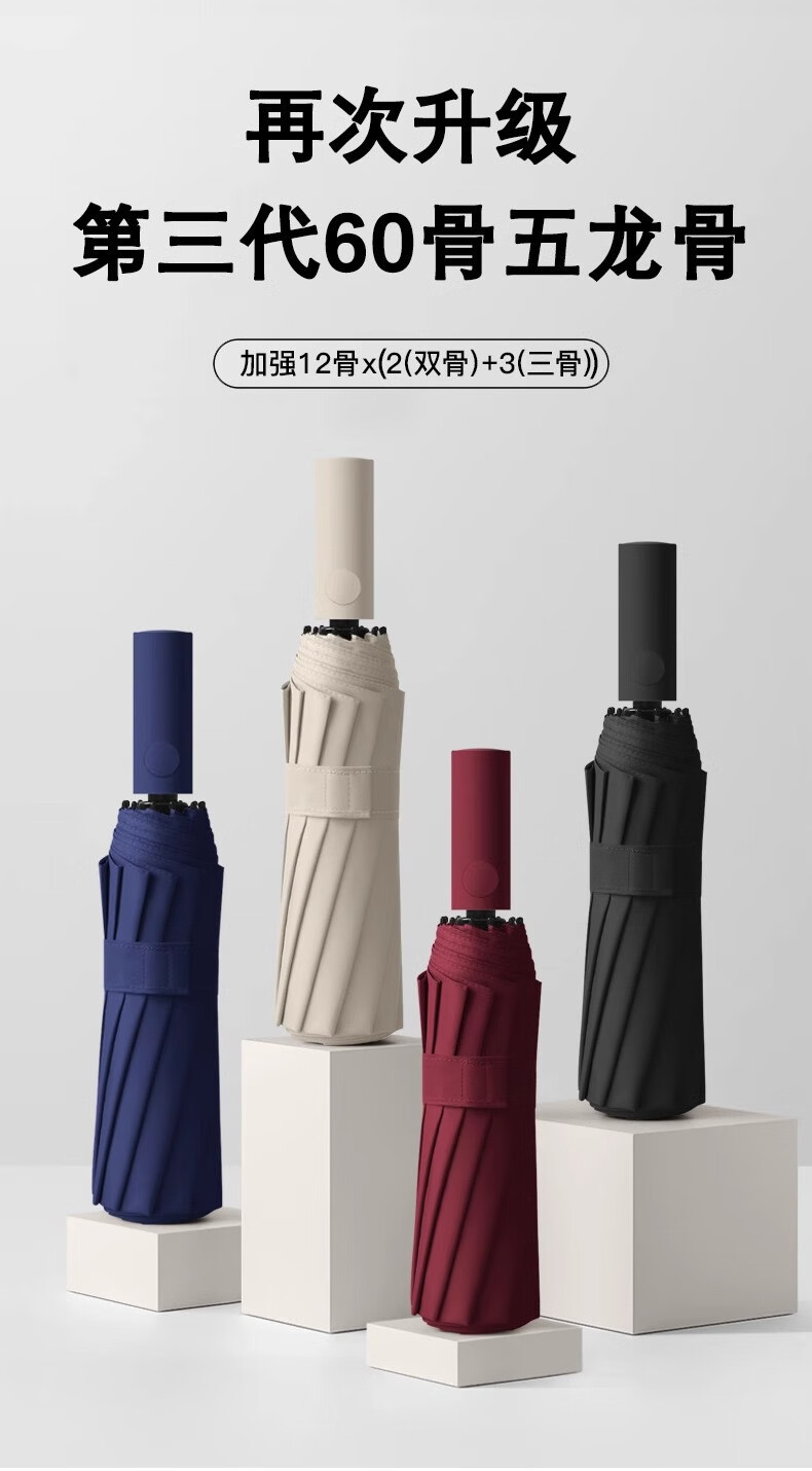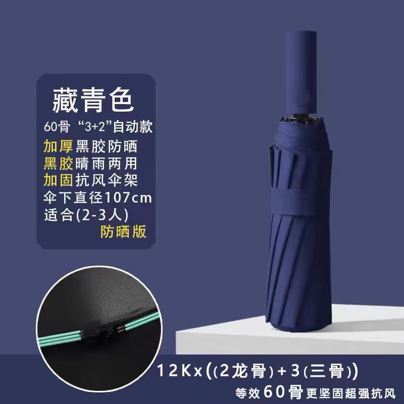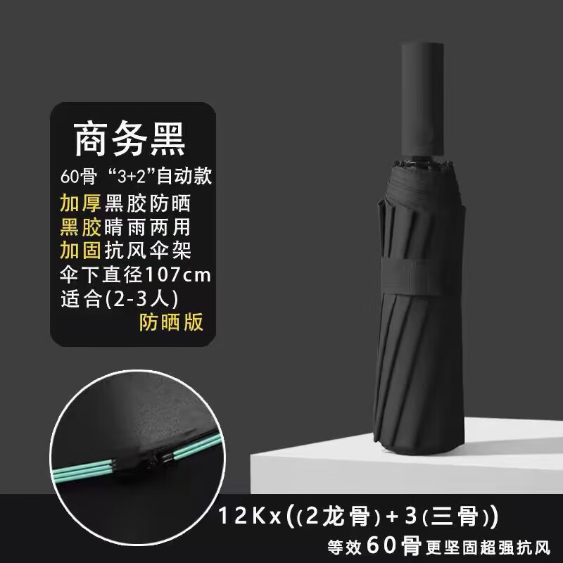 印象城可折叠雨伞全自动晴雨伞大号双人大伞晴雨两用双段五龙骨可定制 60骨双段五龙骨遮阳伞-黑色