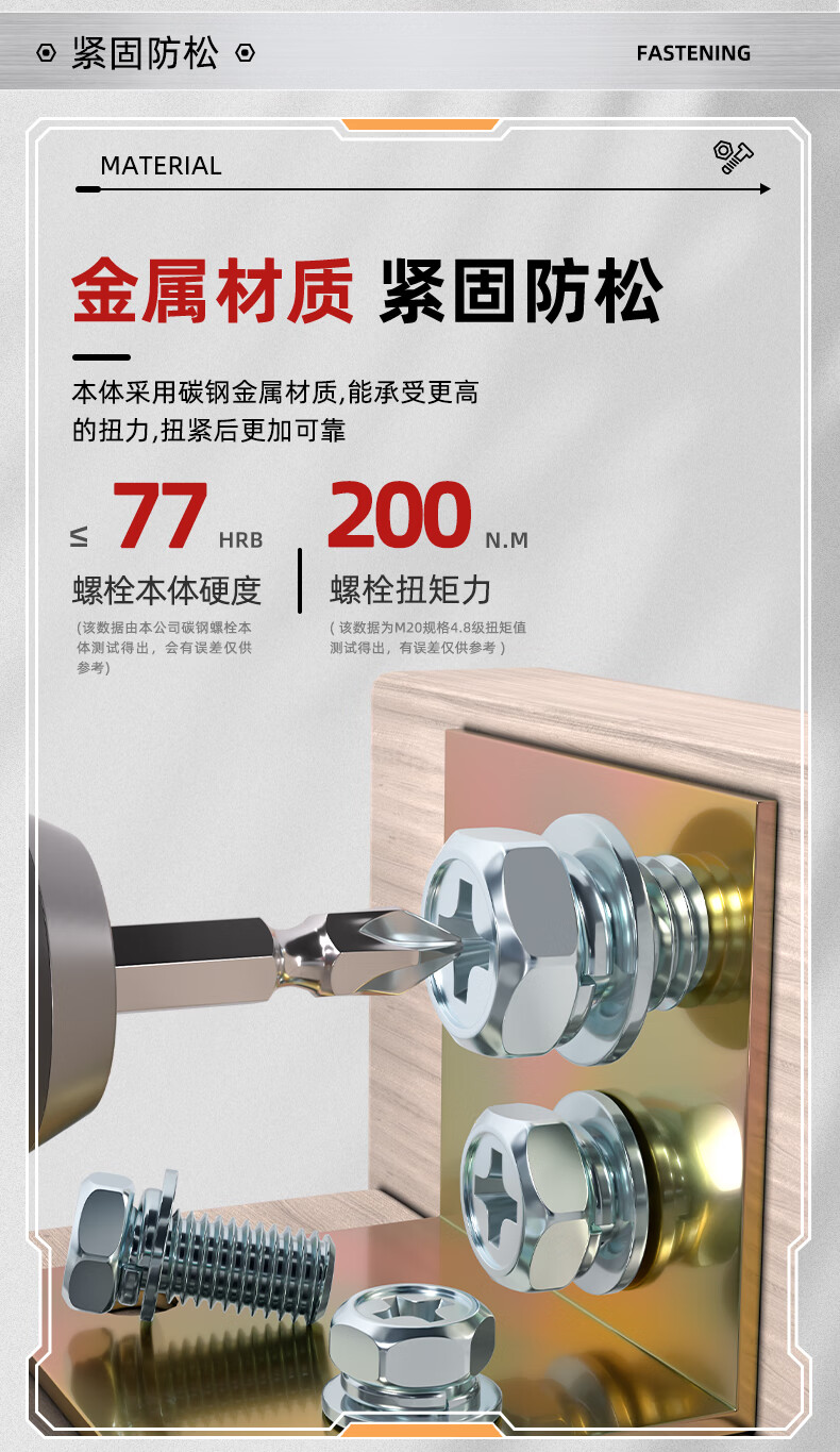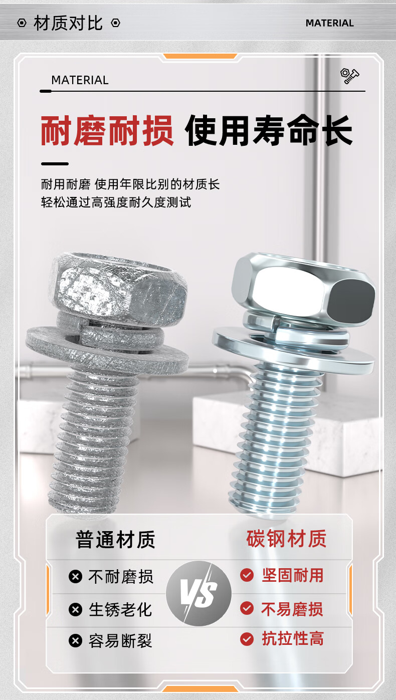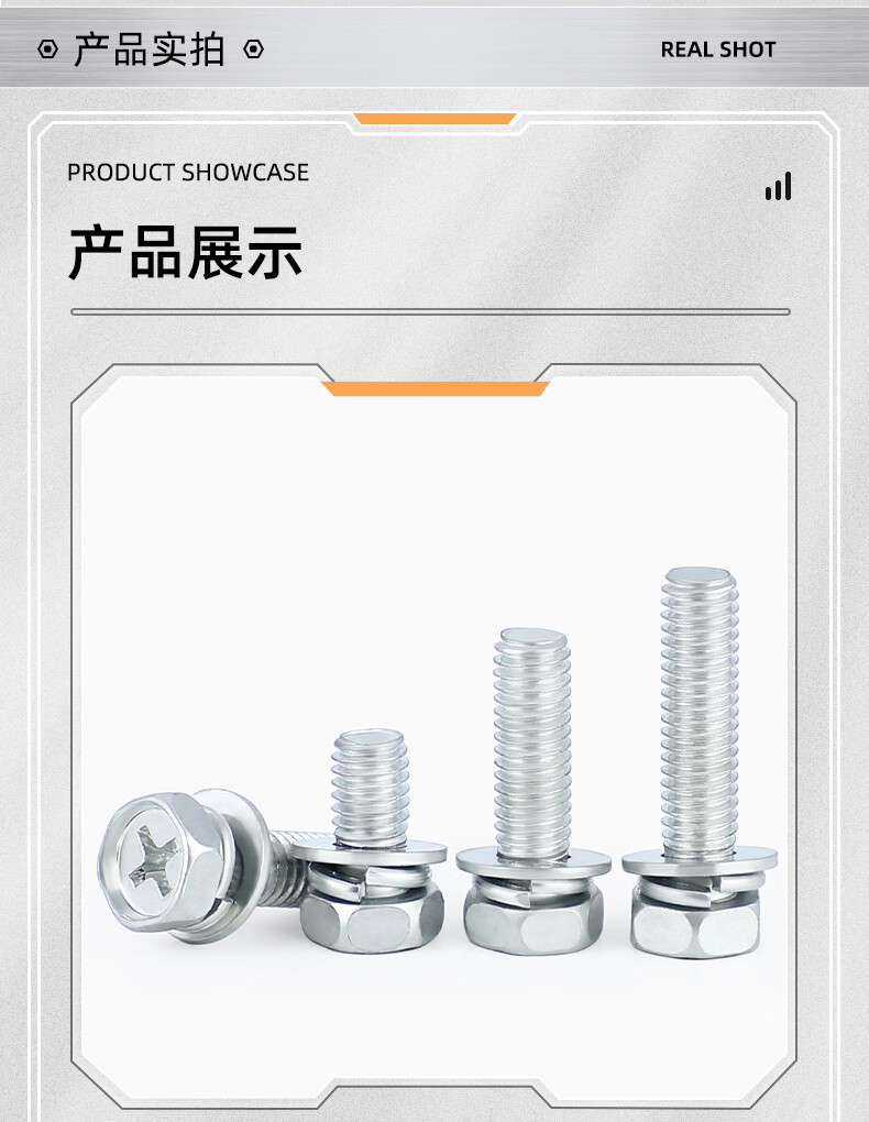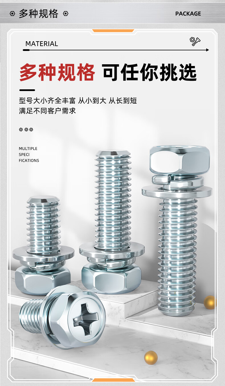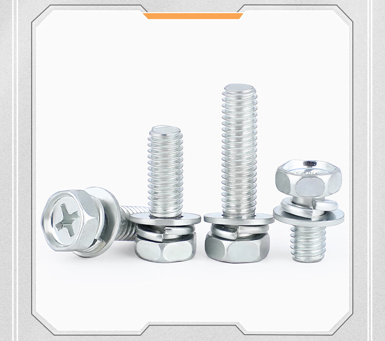 天卓五金4.8级镀锌十字外六角三组合螺丝钉带平弹垫片凹穴组合螺栓M4M8M10 M3*6【500个】