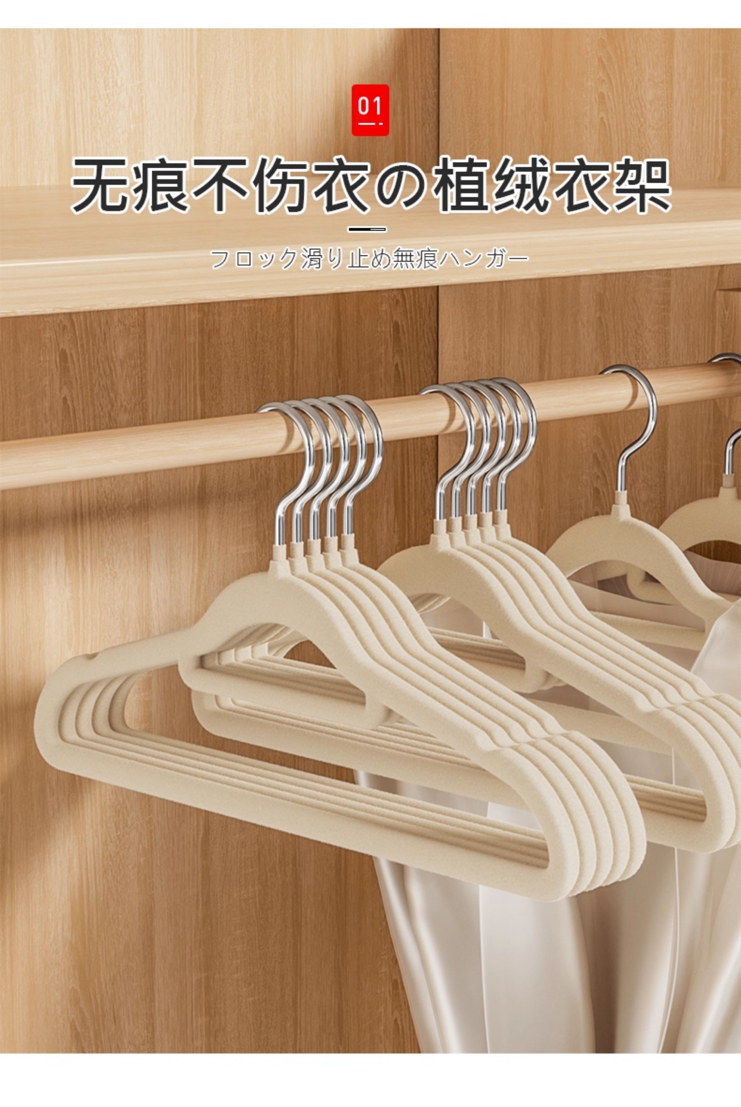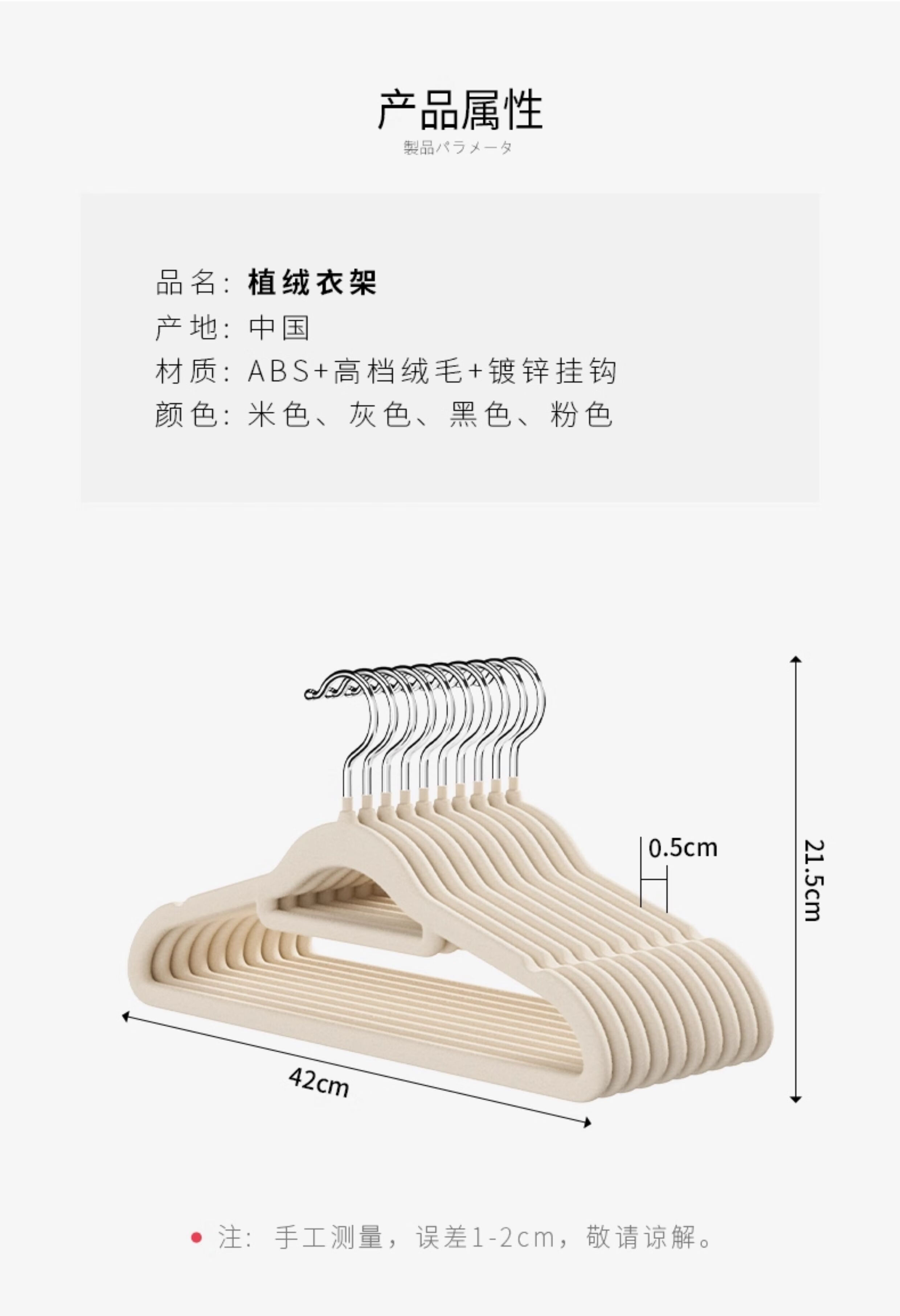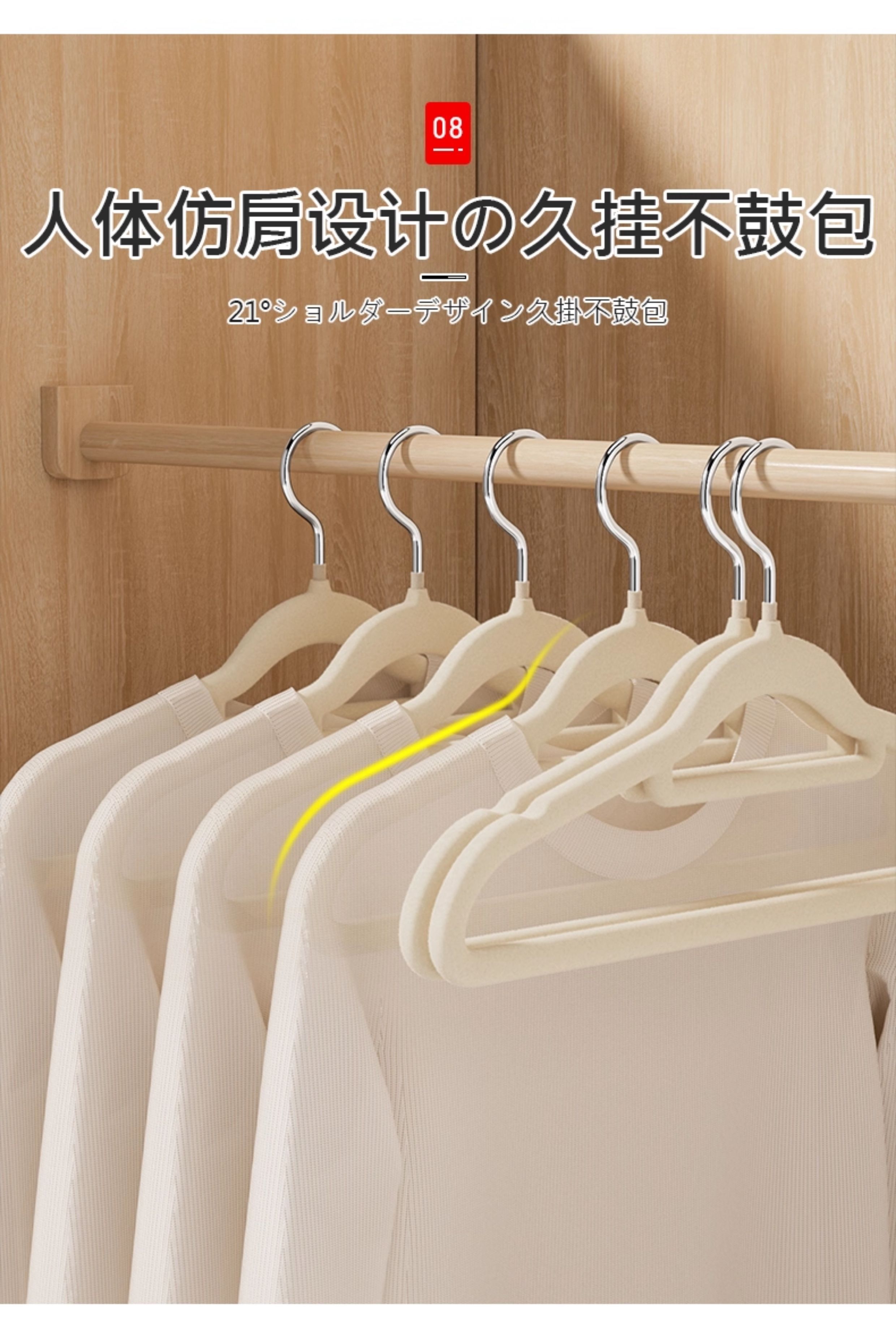 吱凡日本植绒衣架整理师专用衣挂家用挂衣防滑无痕防肩角衣架子晾衣撑 【20支】米白【升级加粗-不掉毛】
