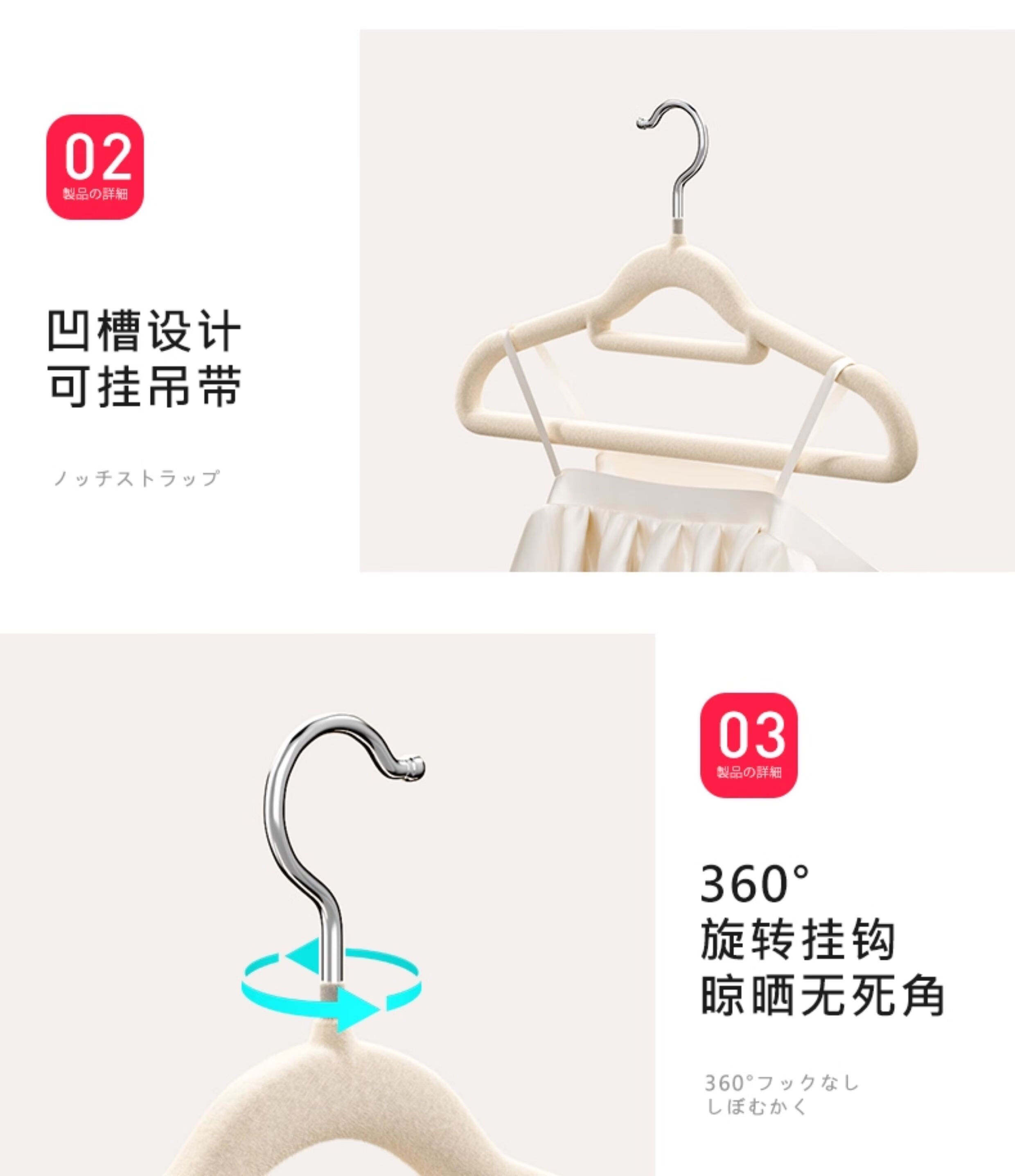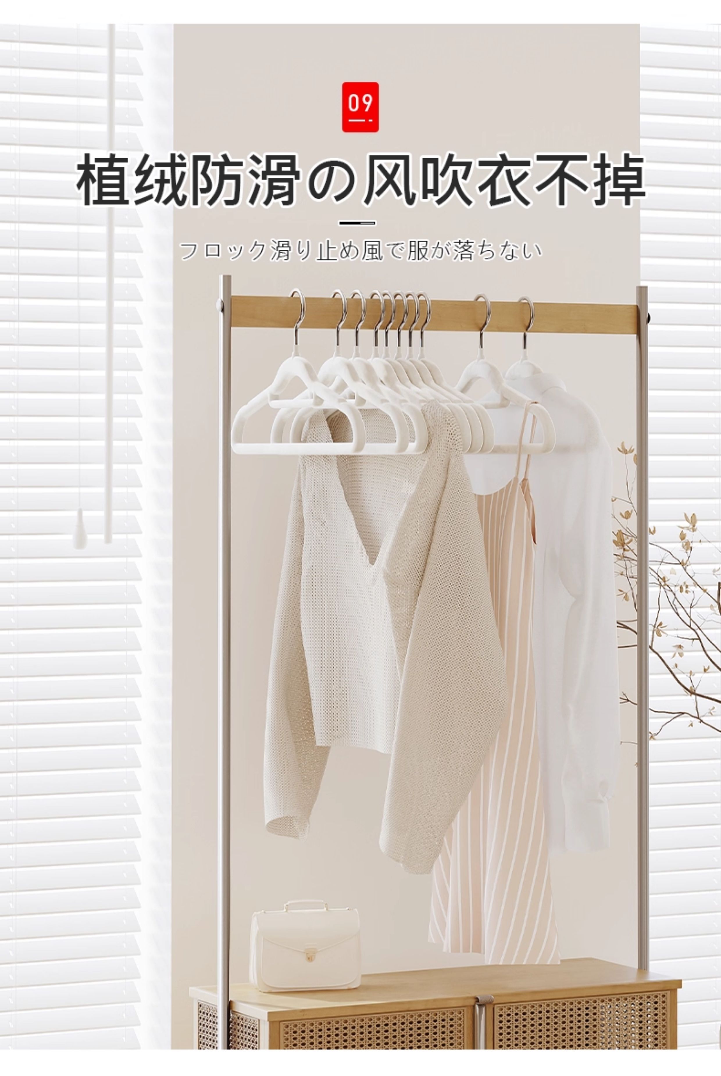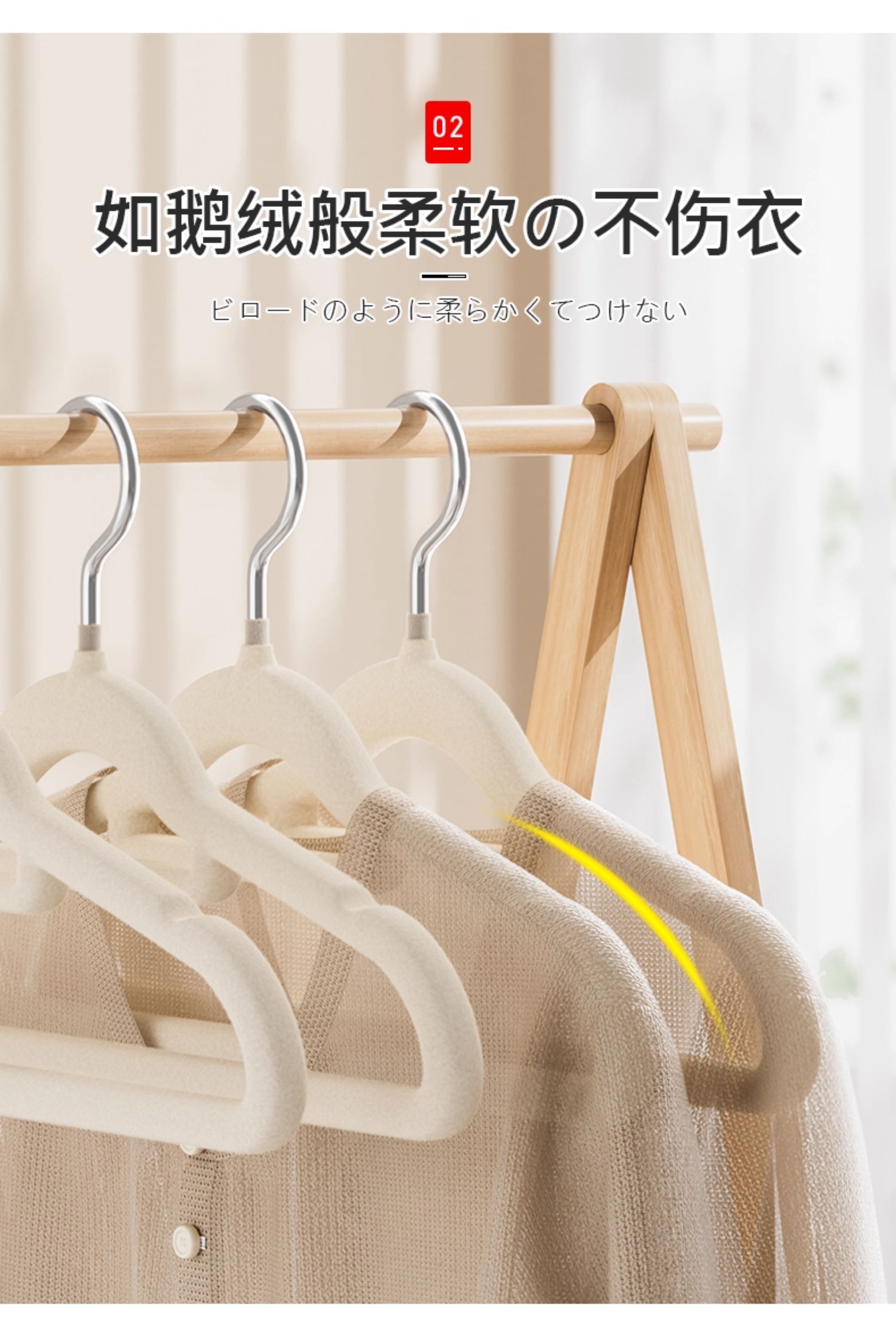 吱凡日本植绒衣架整理师专用衣挂家用挂衣防滑无痕防肩角衣架子晾衣撑 【20支】米白【升级加粗-不掉毛】