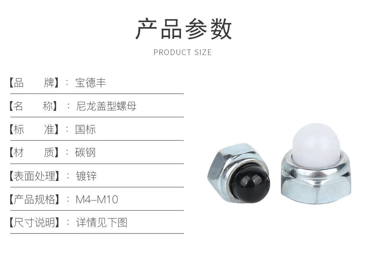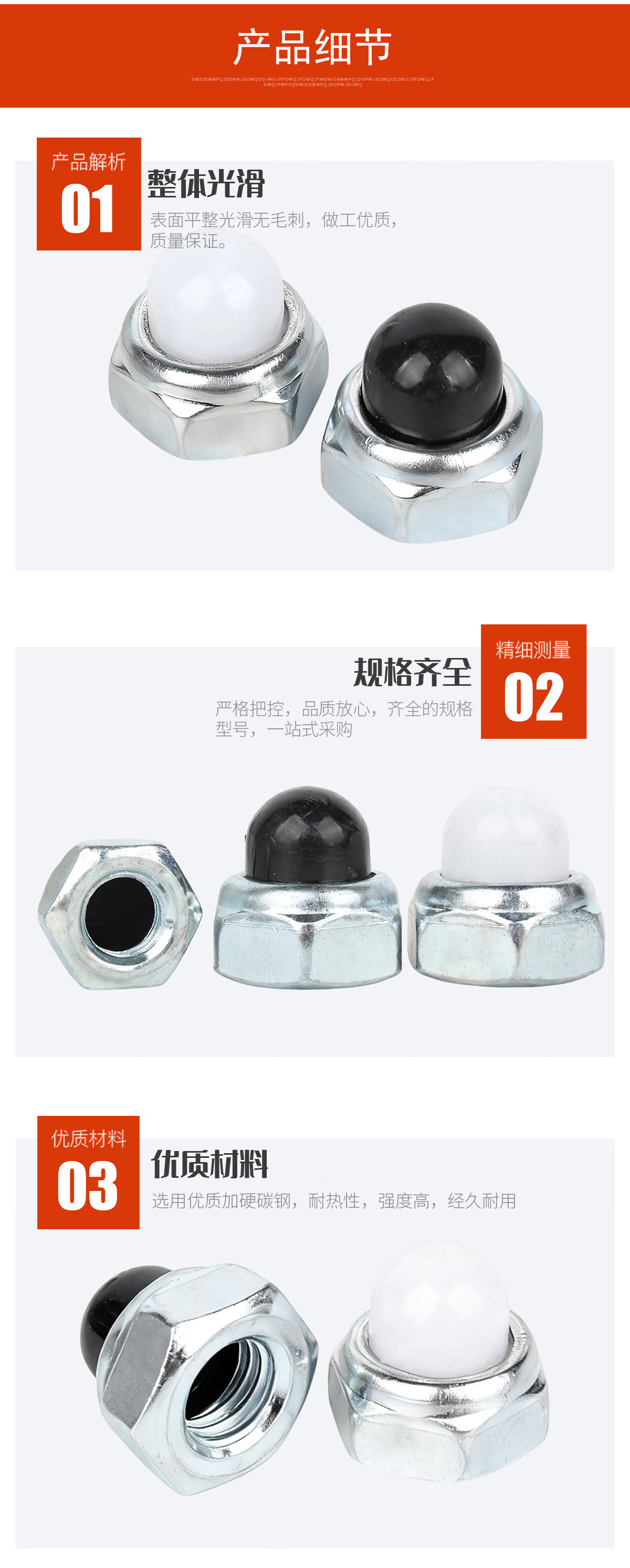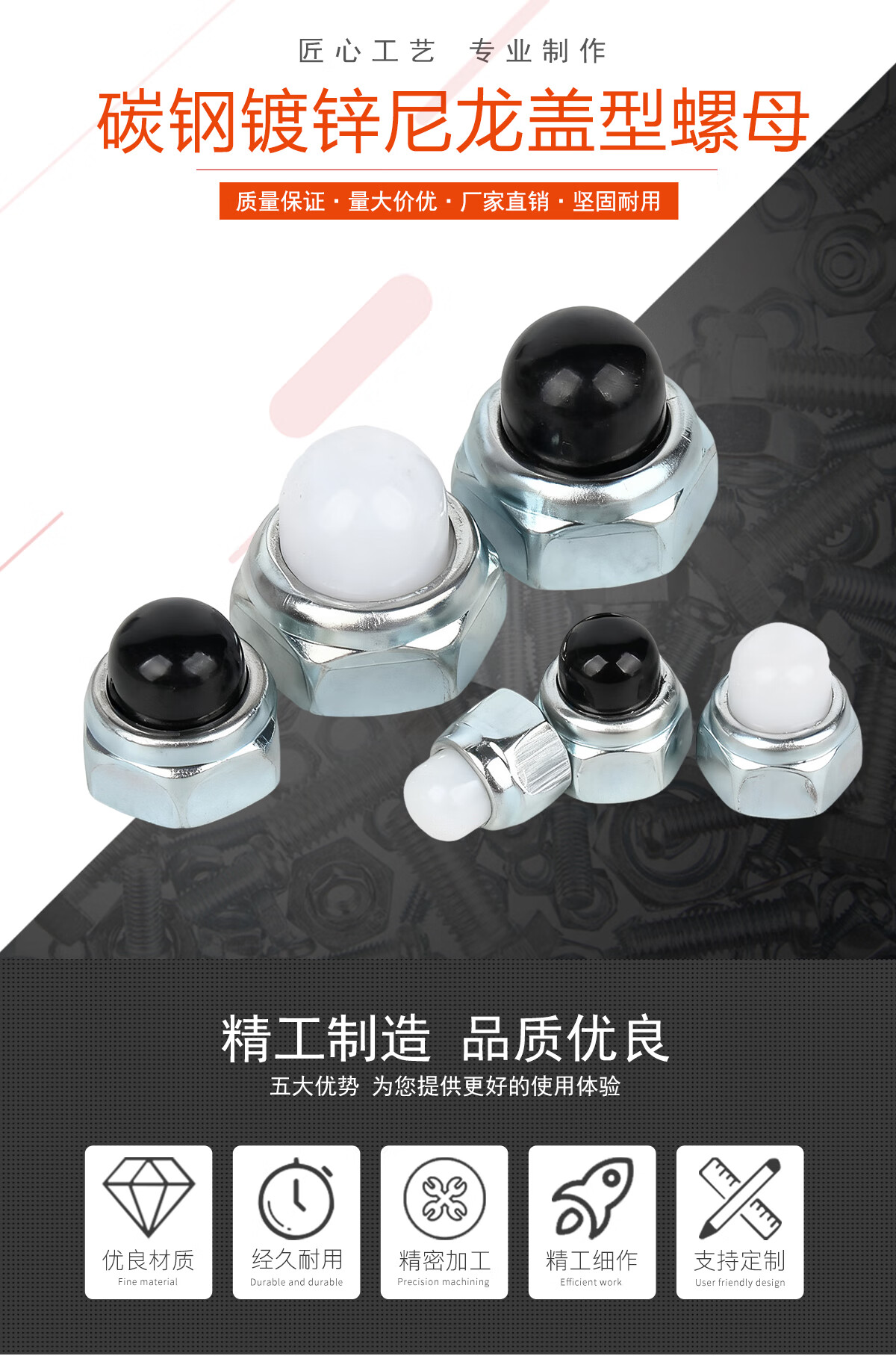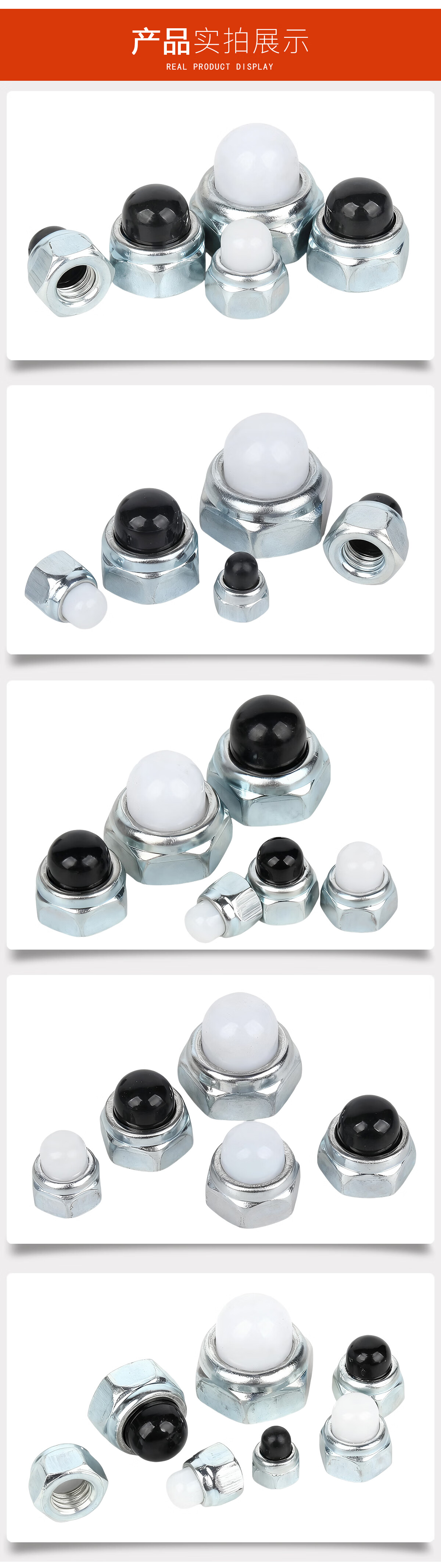宝德丰碳钢镀锌尼龙头盖型螺母防松装饰帽圆球头螺帽圆头六角盖母M5M6M8 M4[50只]黑盖