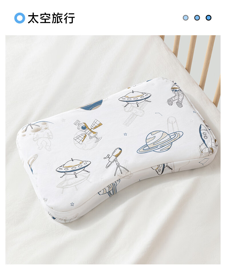 贝肽斯婴儿枕头儿童硅胶枕护颈宝宝枕头幼儿园四季通用 太空旅行 纯棉款-【1-3岁】枕高3.5cm