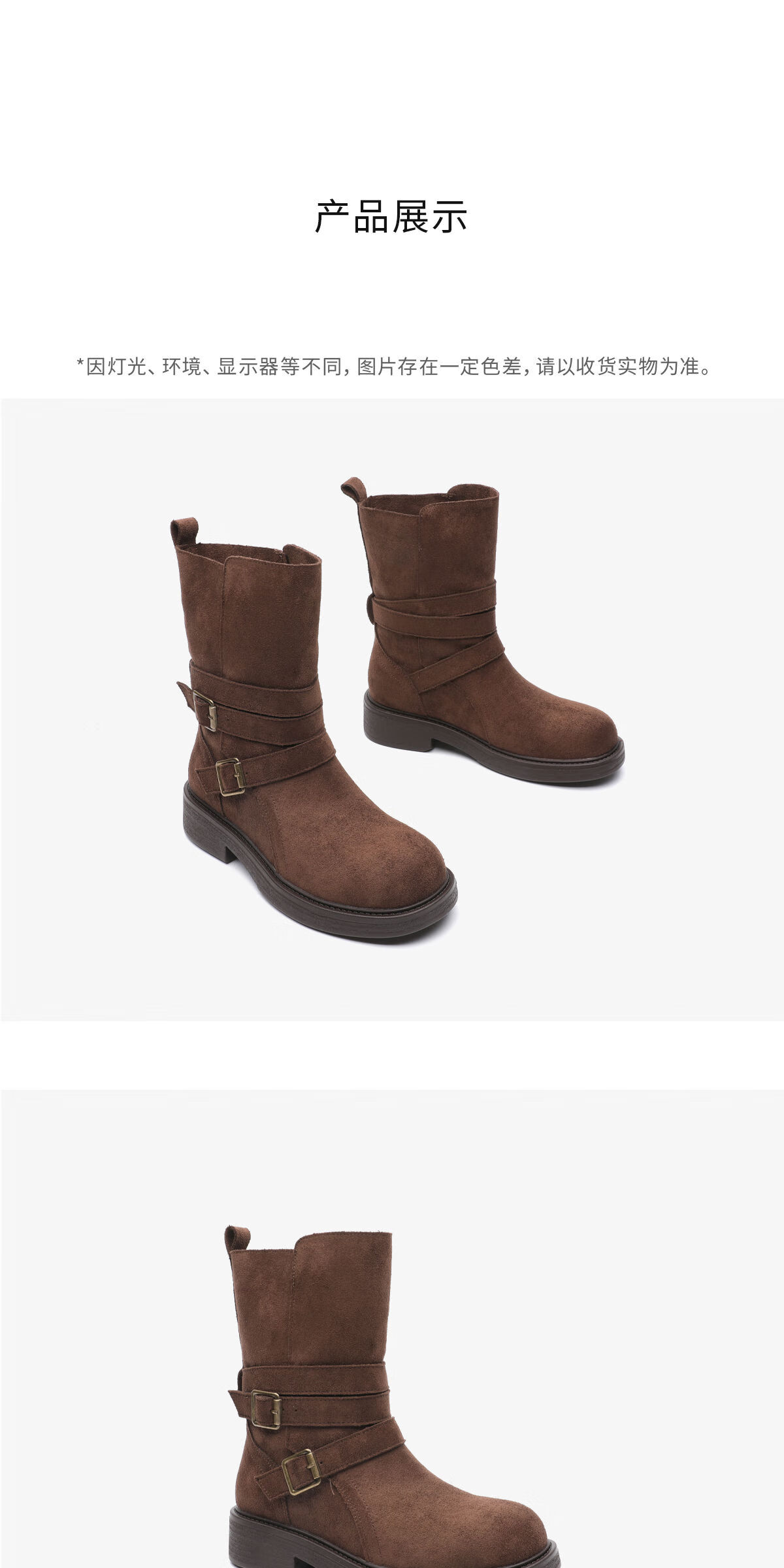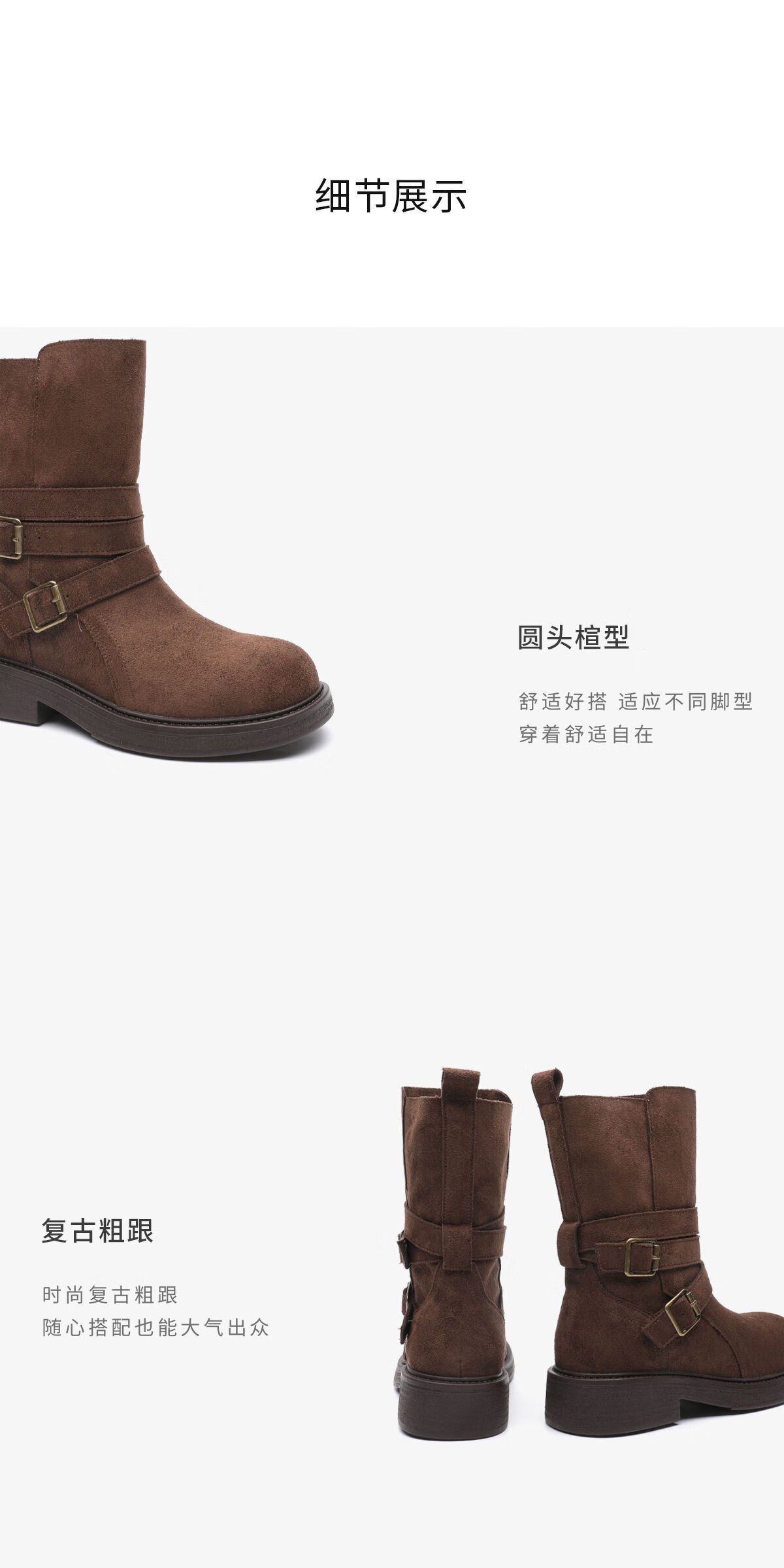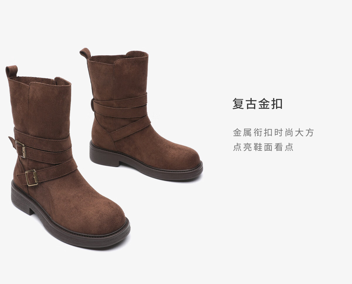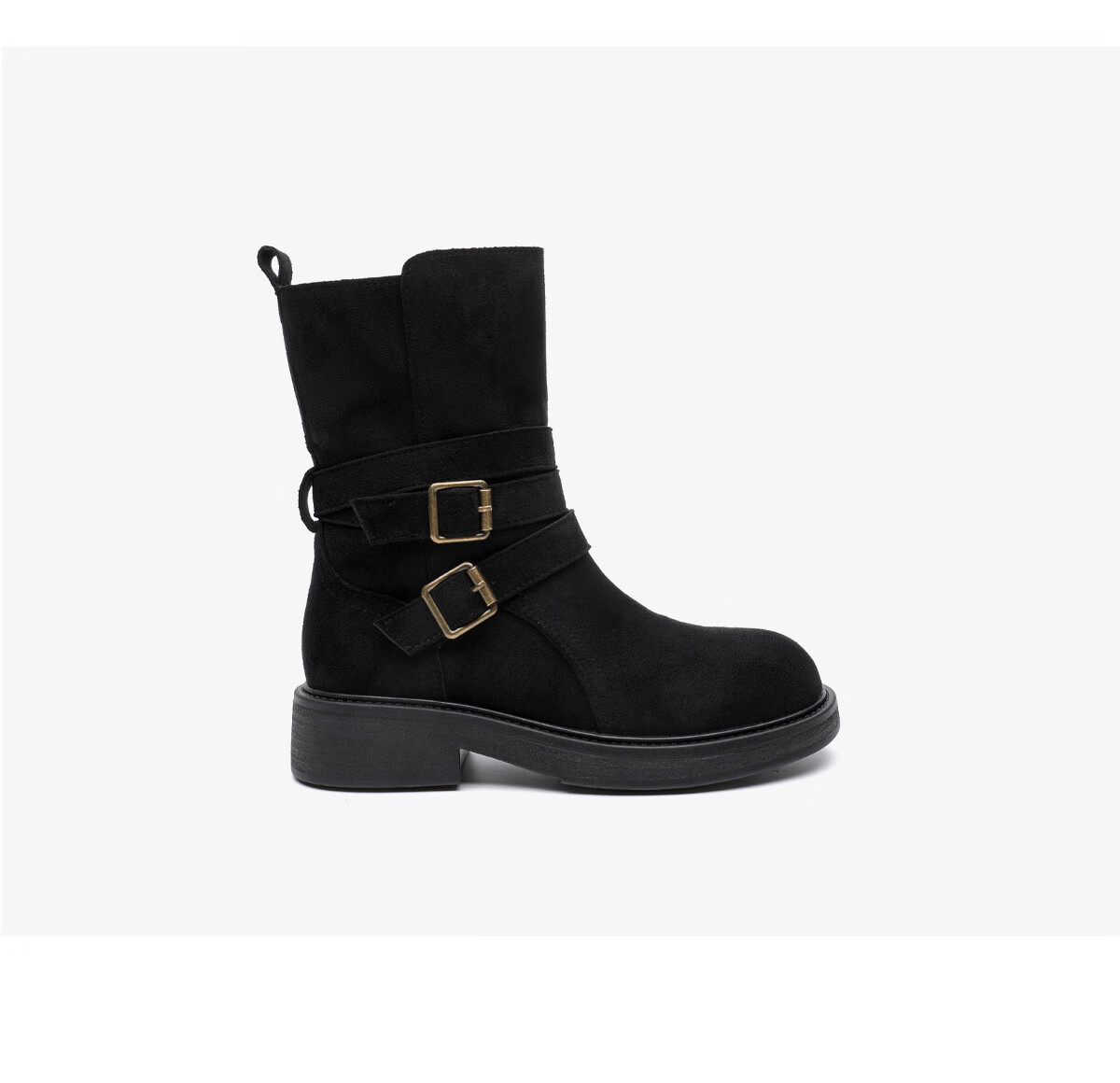月芽儿西部牛仔靴冬季2025新款美拉德废土风百搭工装短靴 绒里黑色01T 36