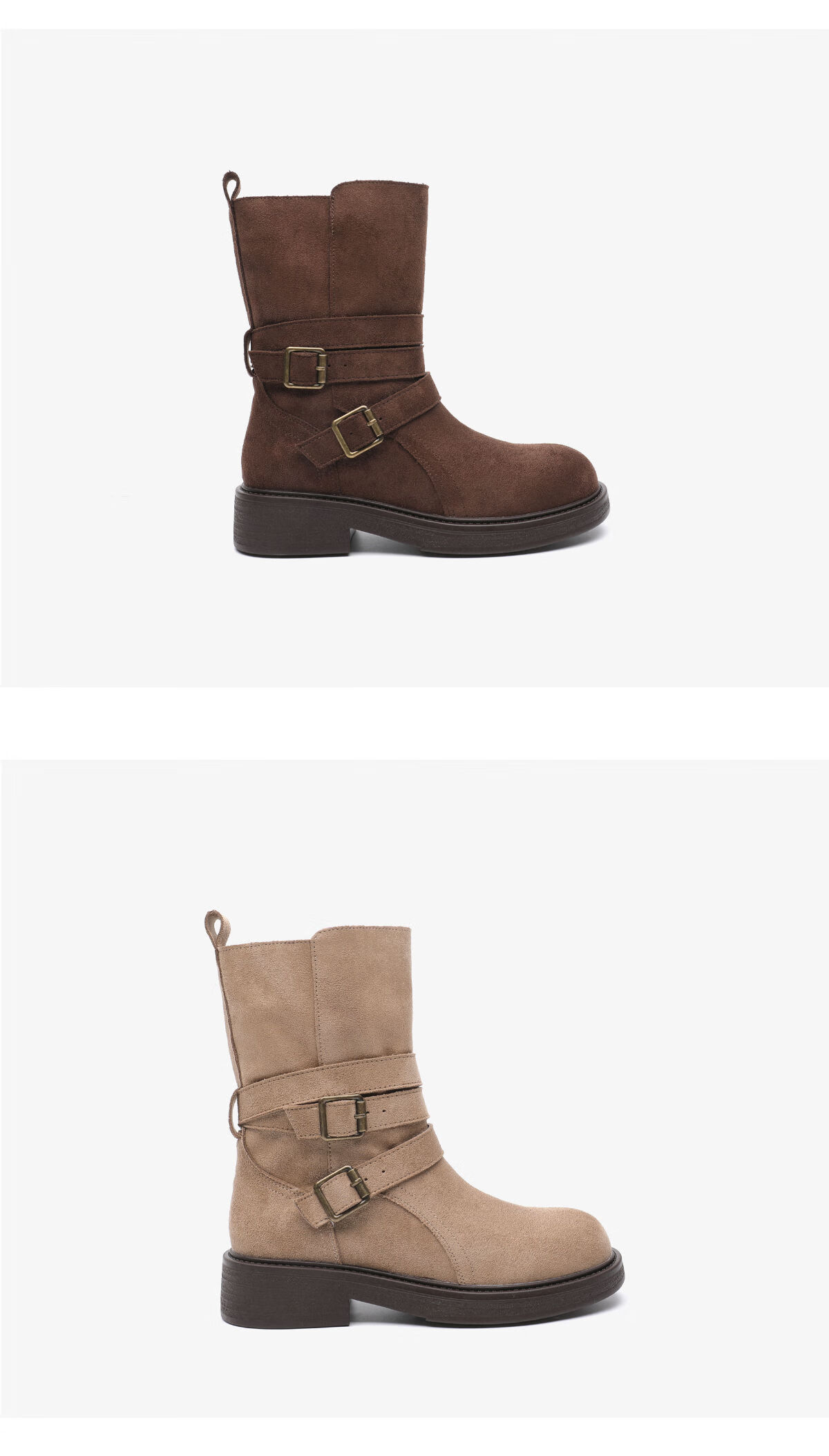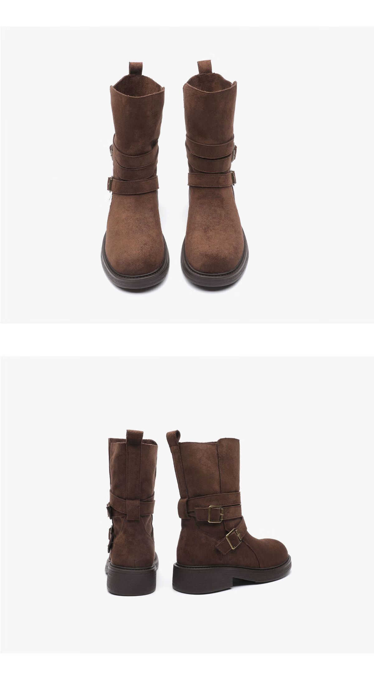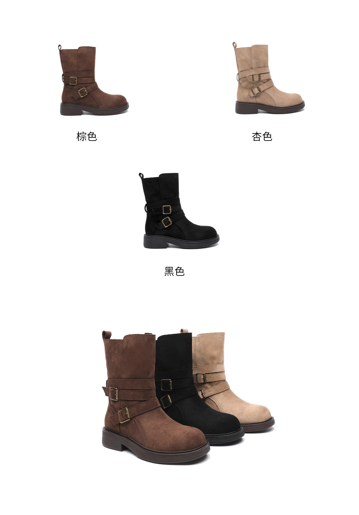 月芽儿西部牛仔靴冬季2025新款美拉德废土风百搭工装短靴 绒里黑色01T 36