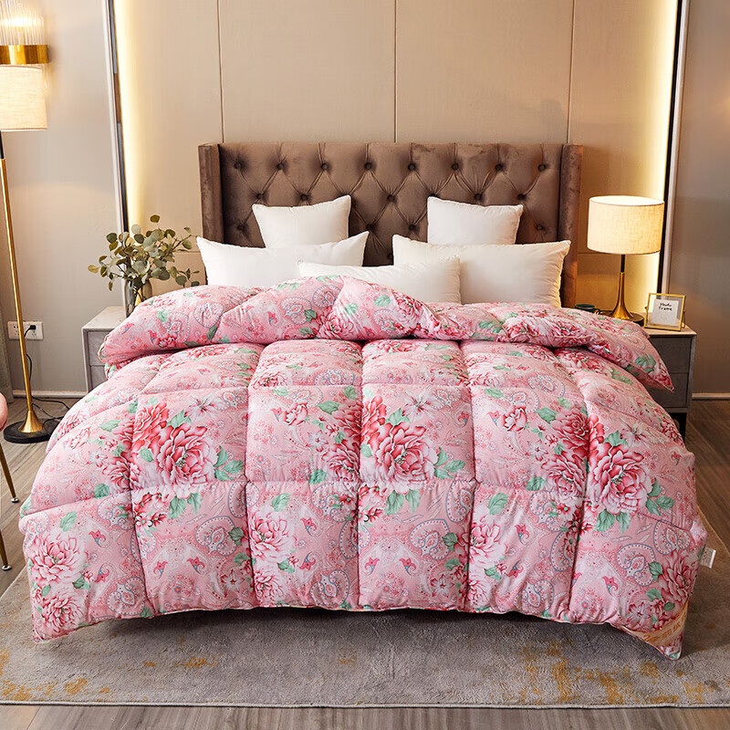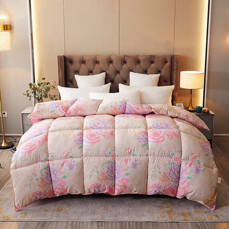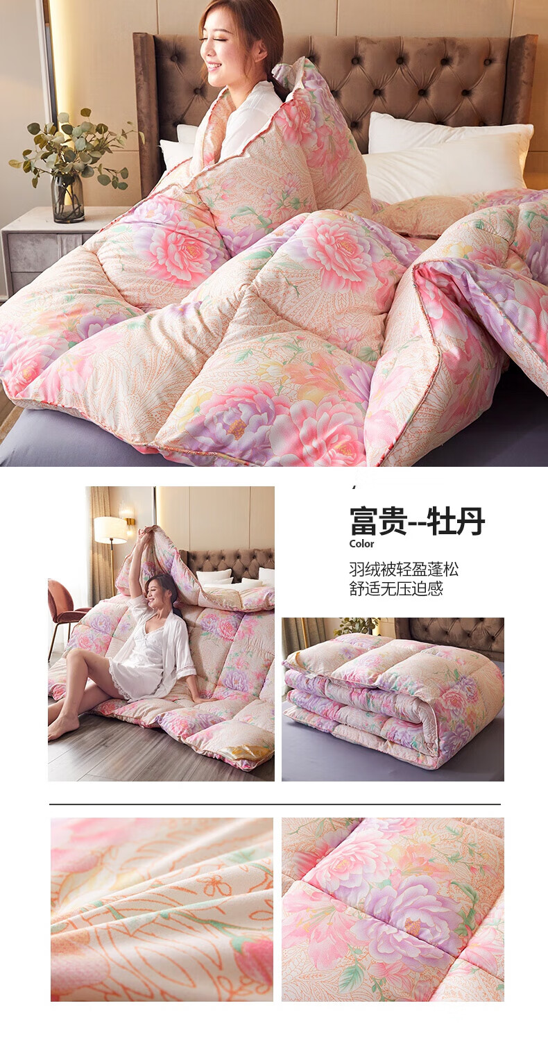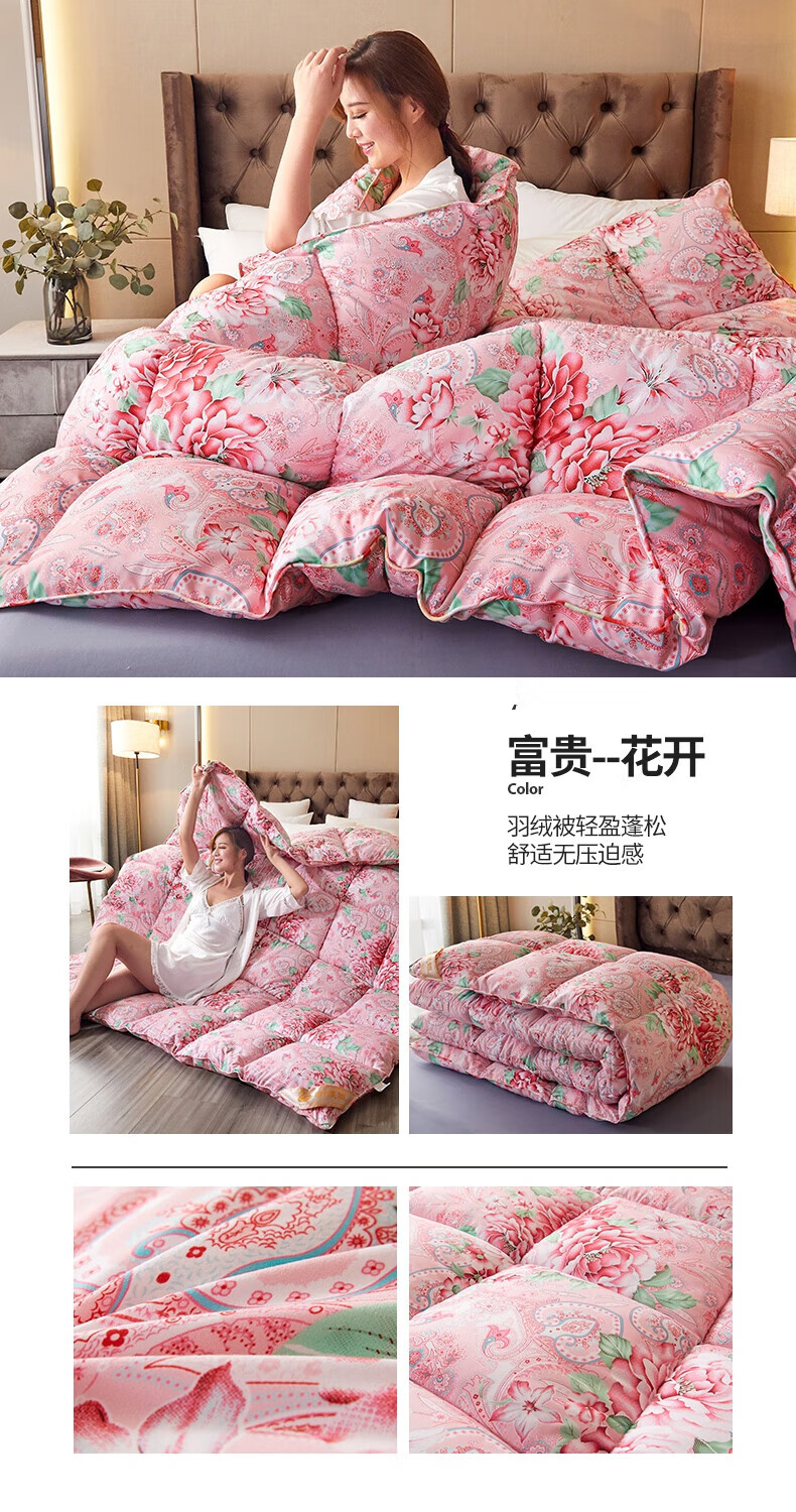 恒源祥加厚保暖冬被芯白鹅丝绒被羽丝绒被酒店单人冬季鸭绒被春秋棉被子 富贵--花开 150x200cm被子【4斤夏被】