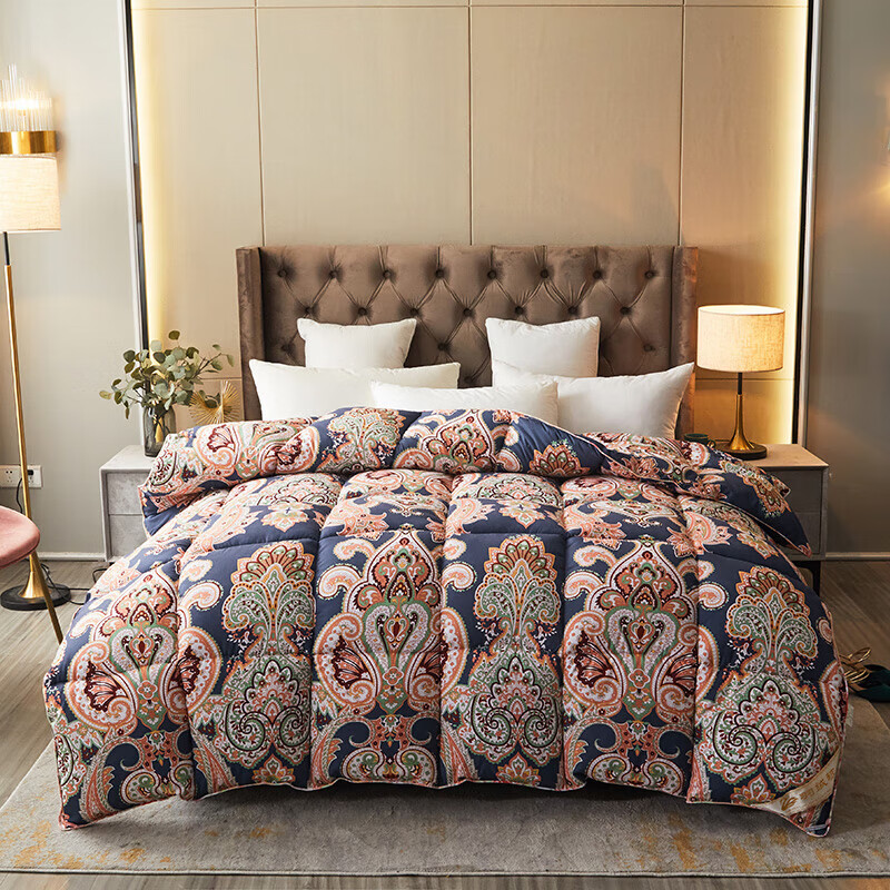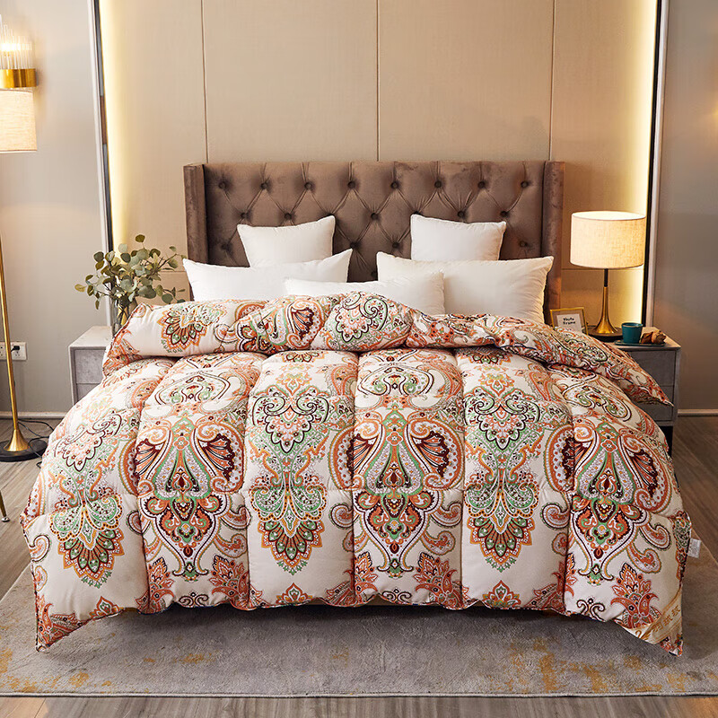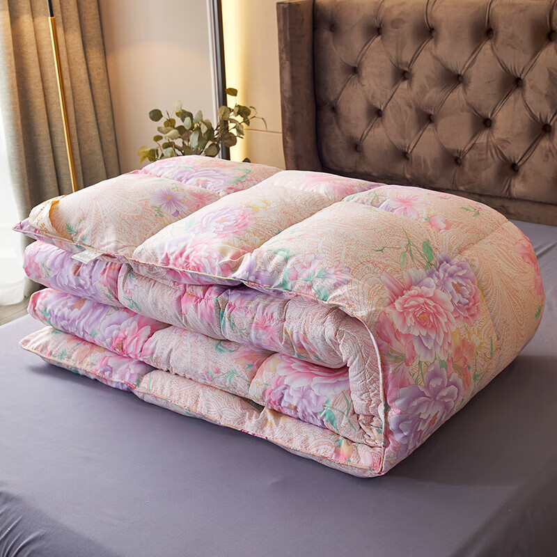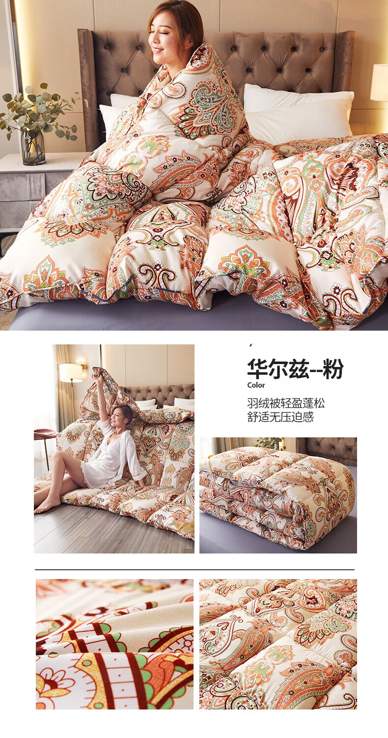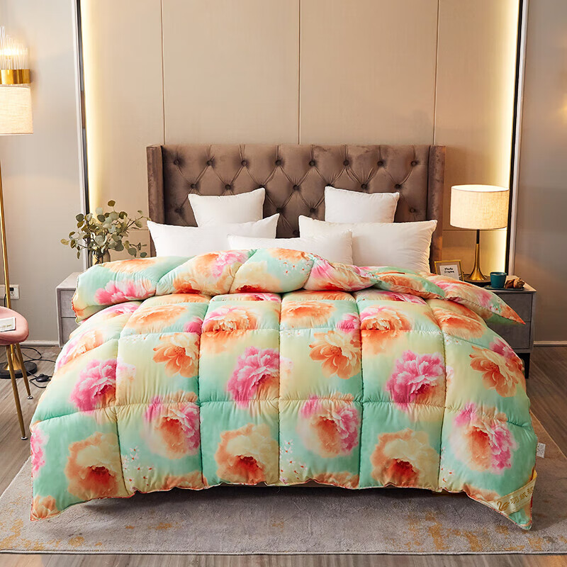 恒源祥加厚保暖冬被芯白鹅丝绒被羽丝绒被酒店单人冬季鸭绒被春秋棉被子 富贵--花开 150x200cm被子【4斤夏被】