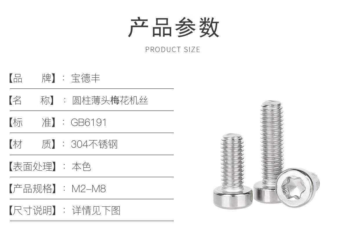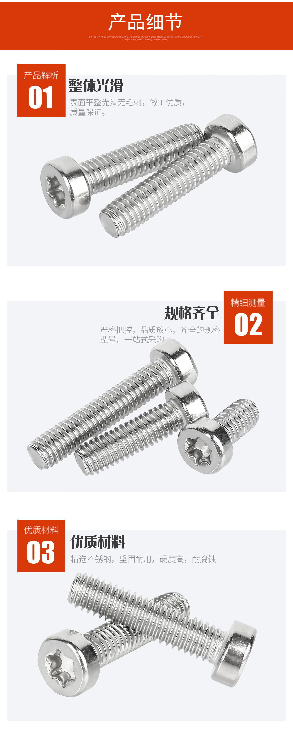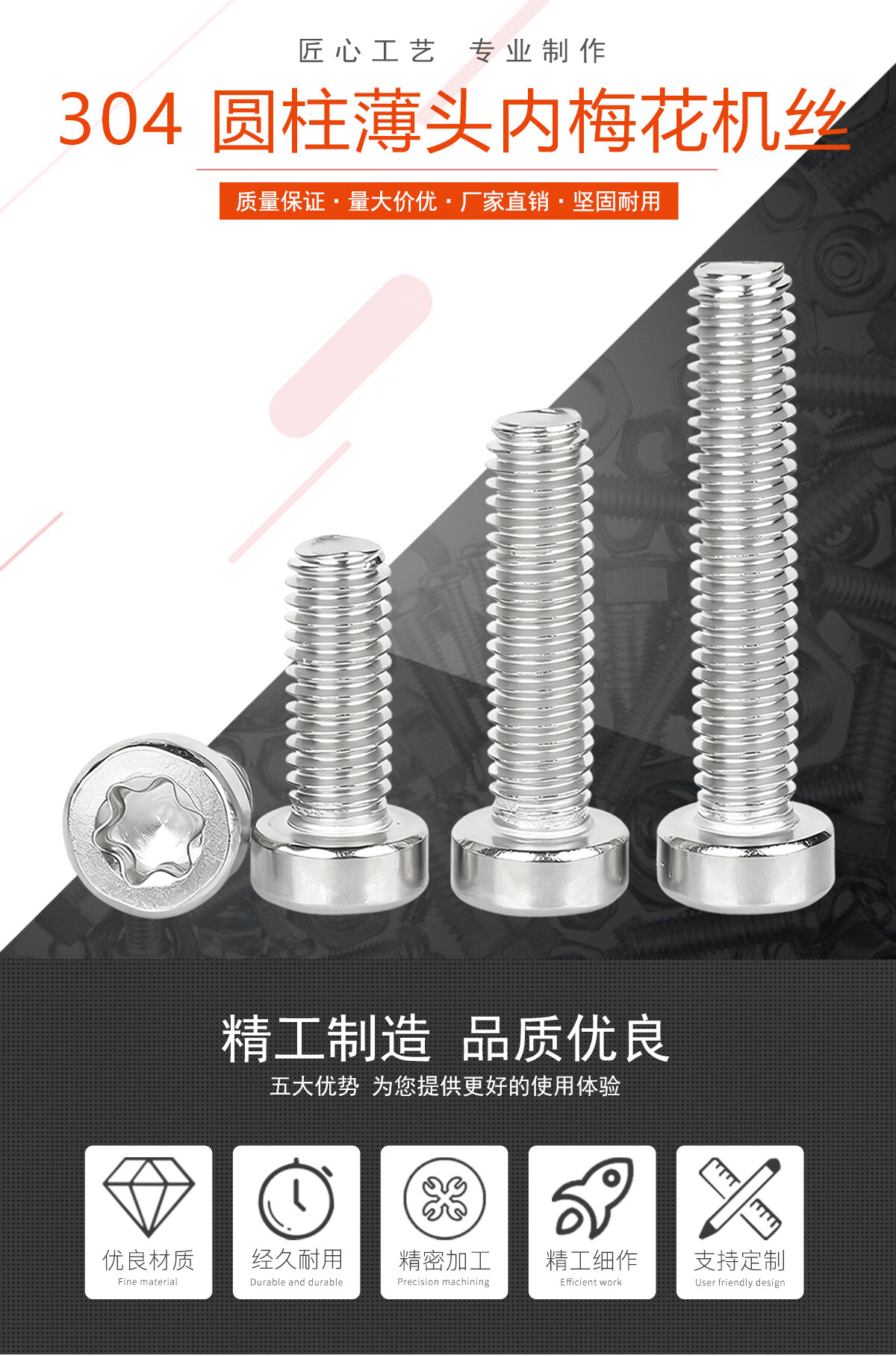 宝德丰GB2671.1 304不锈钢薄头圆柱头梅花螺丝钉GB6191六星型防盗防拆栓 M2x4[200只]