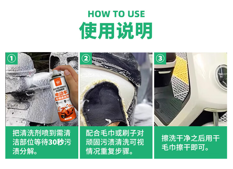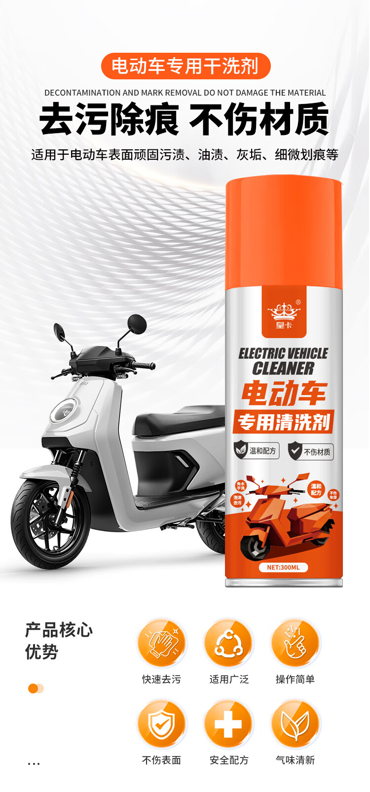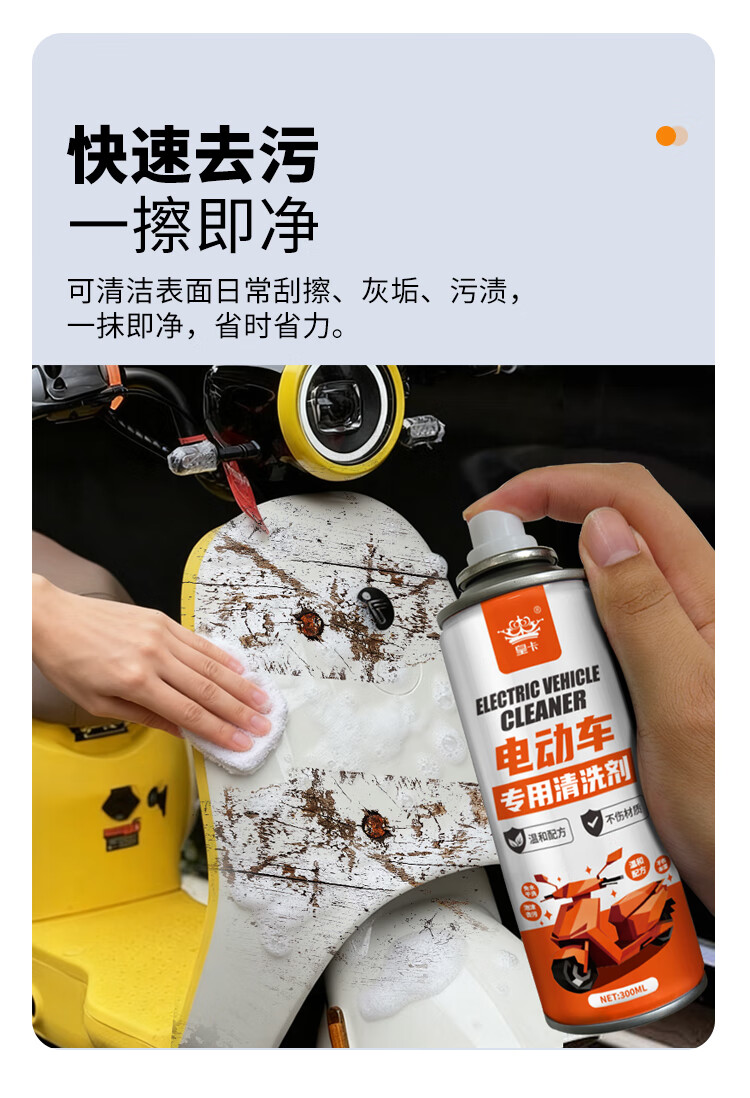 【京东快递】多功能电动车清洗剂摩托车外壳清洁剂洗车泡沫液去污剂 电动车清洁剂/1 300ML