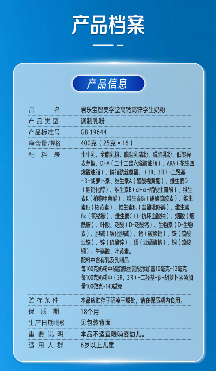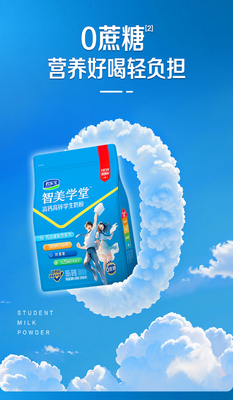 君乐宝乐钙高钙高锌智美学堂学生奶粉 学生奶粉2袋