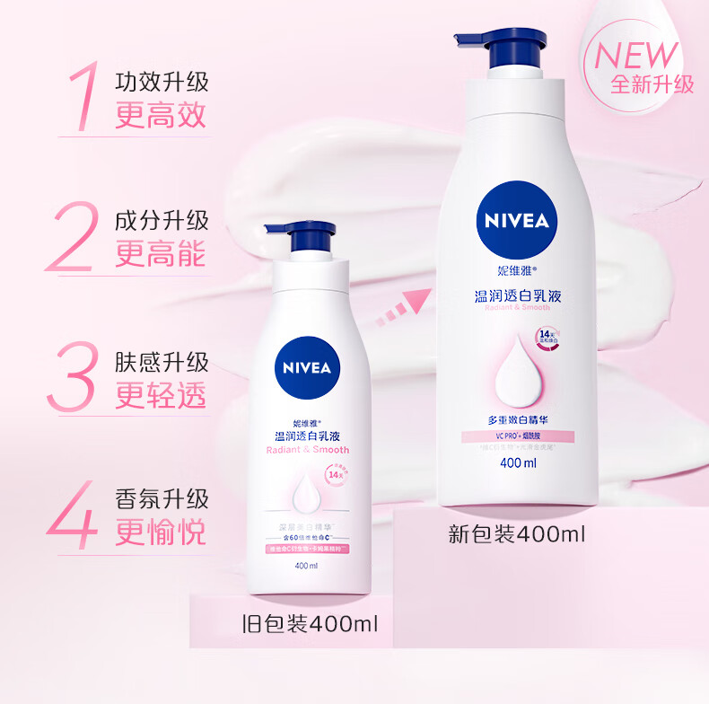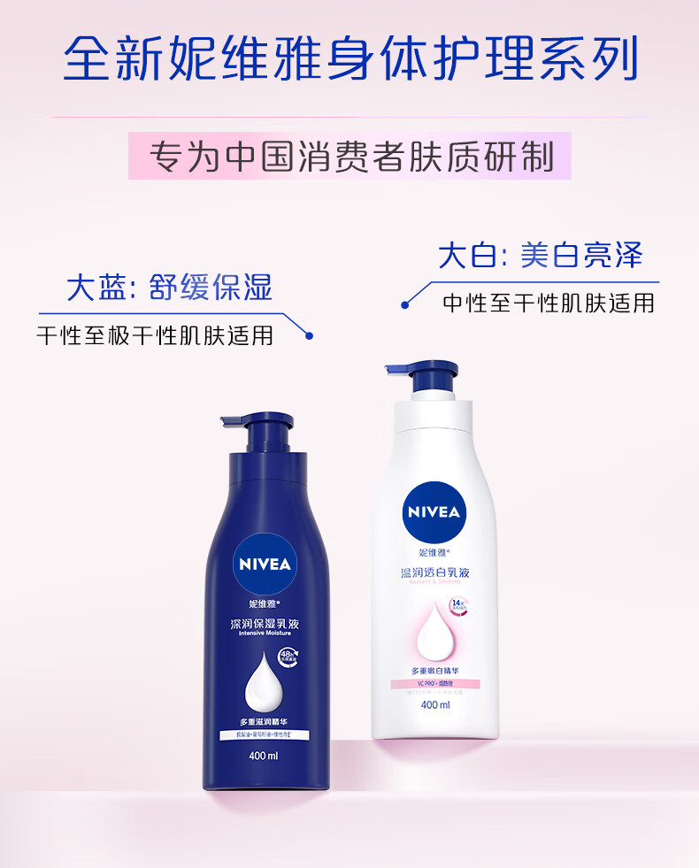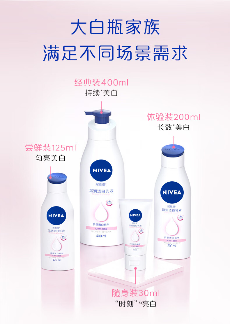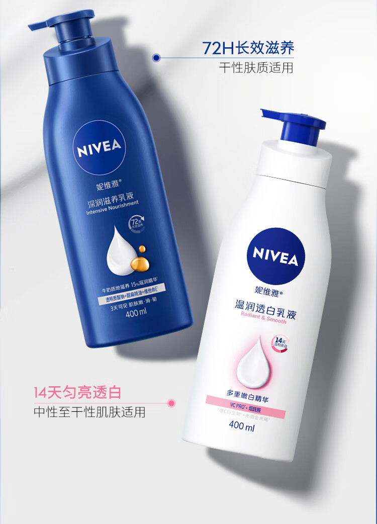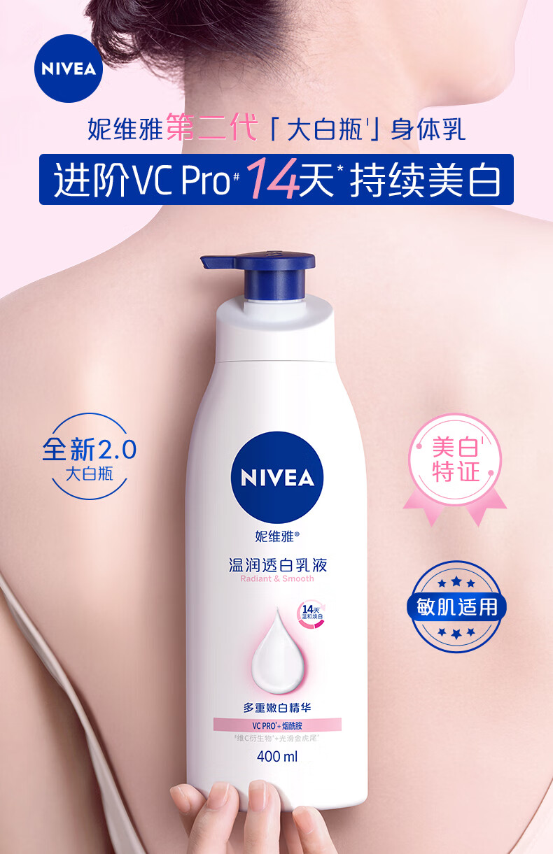 妮维雅(NIVEA)【孙颖莎同款】女士身体乳润肤滋润补水保湿美白特证滋养送女友 【有效美白】大白瓶200ml*2