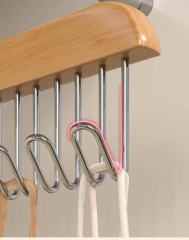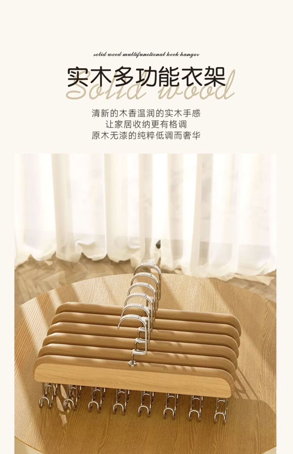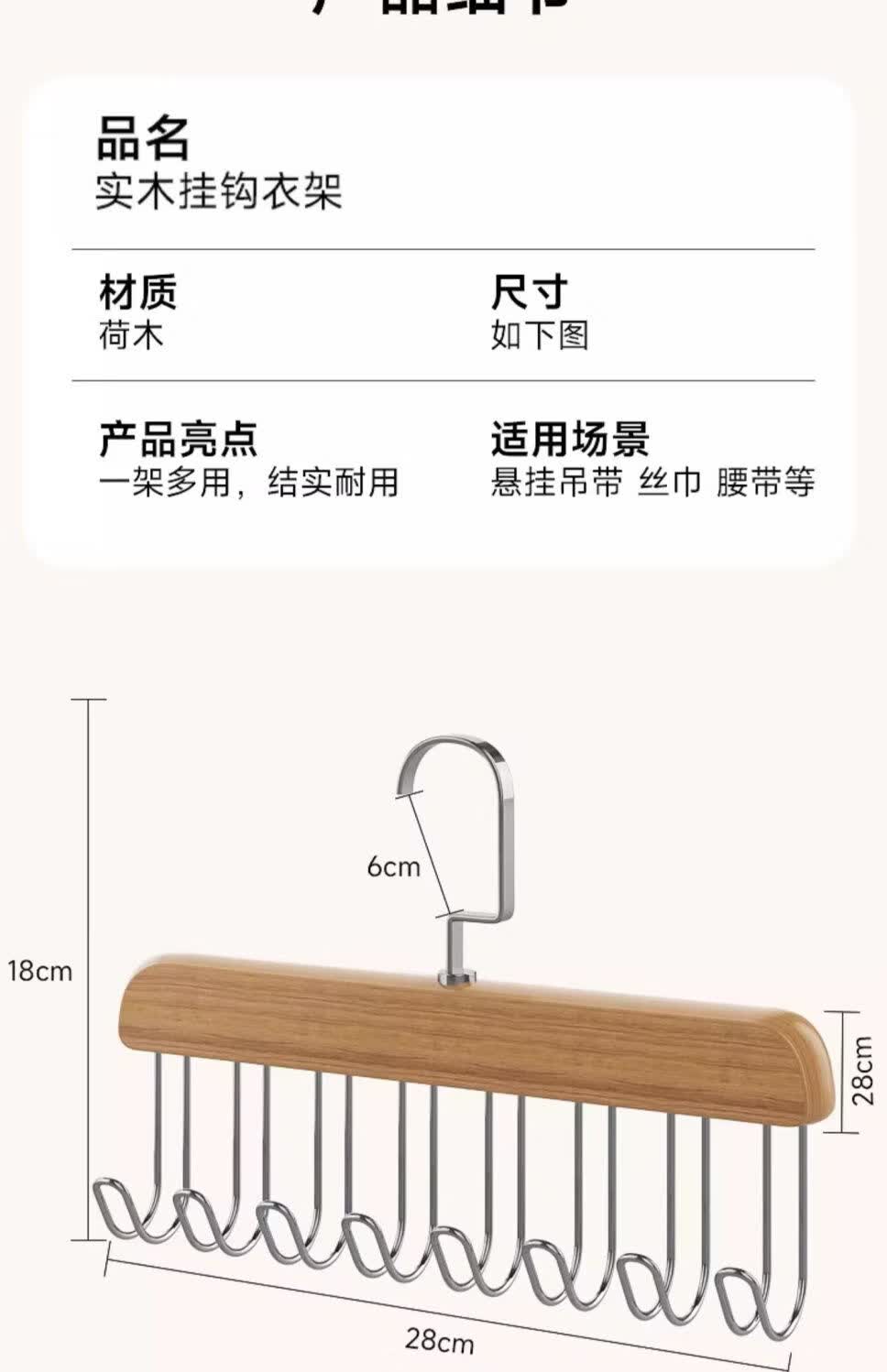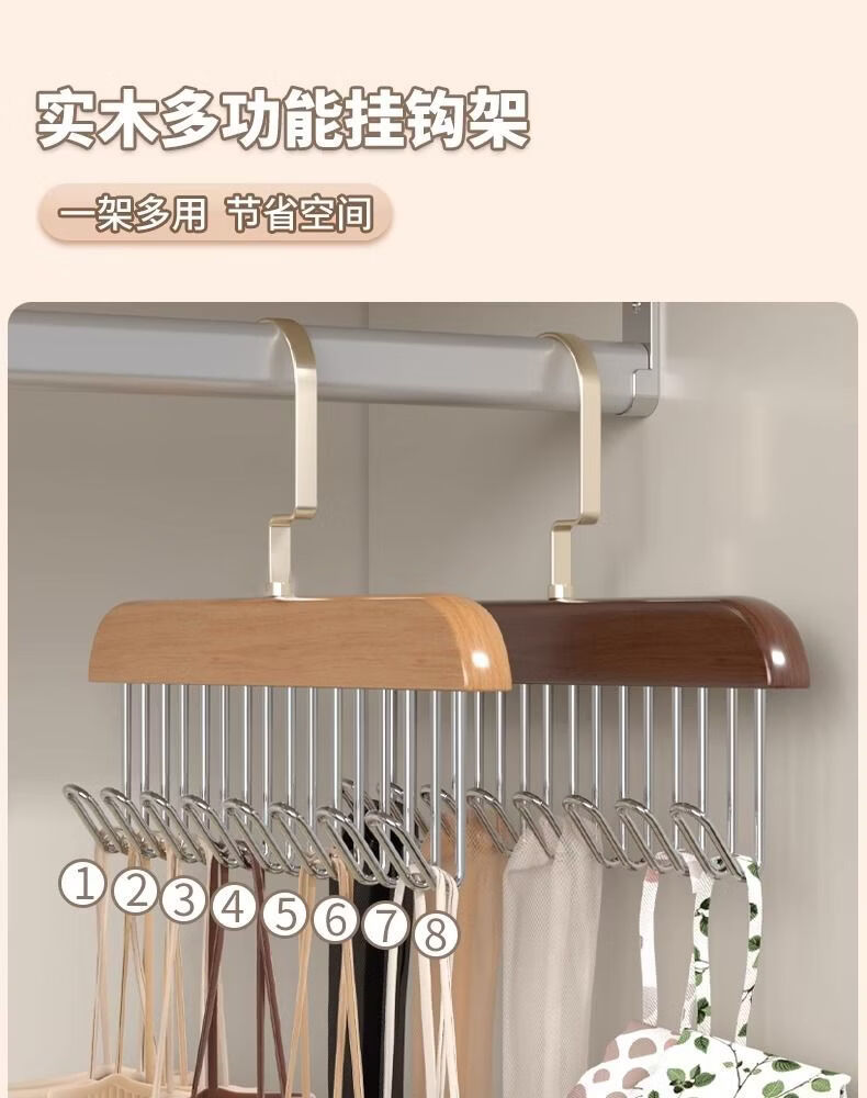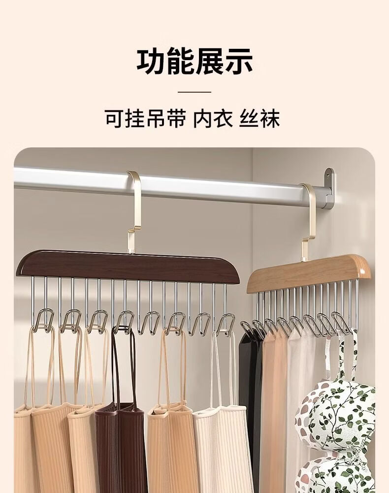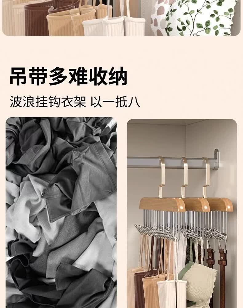 易思迪木质吊带衣架实木波浪晾衣架内衣背心收纳神器家用宿舍挂钩 原木色多功能收纳三个装