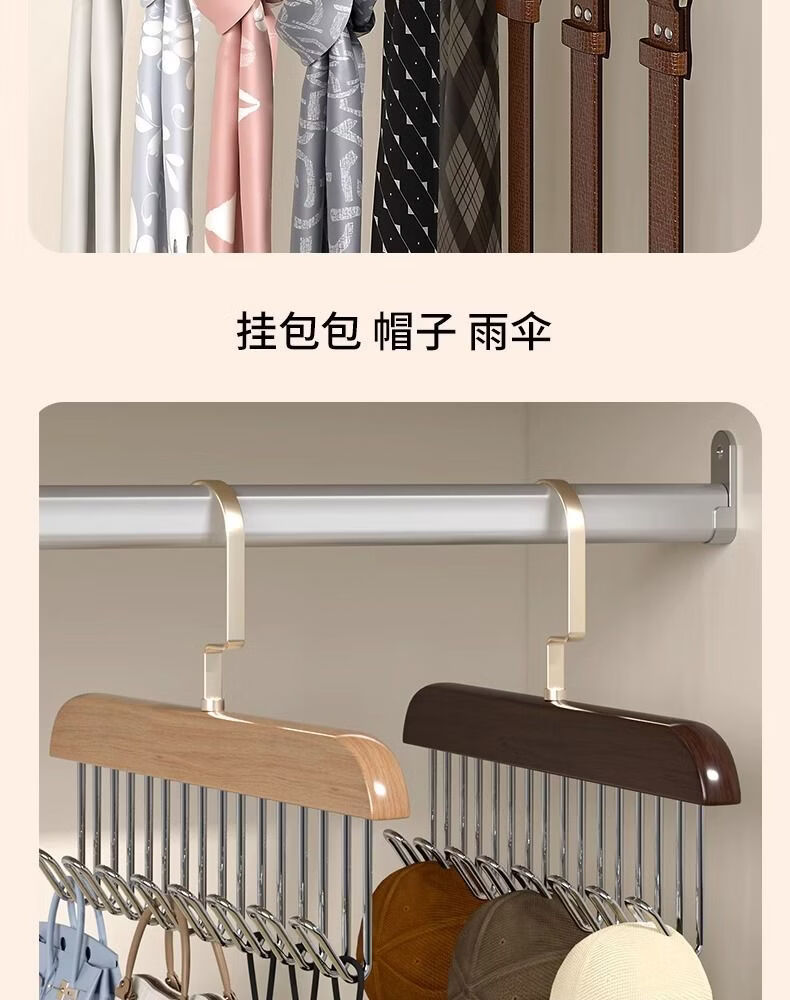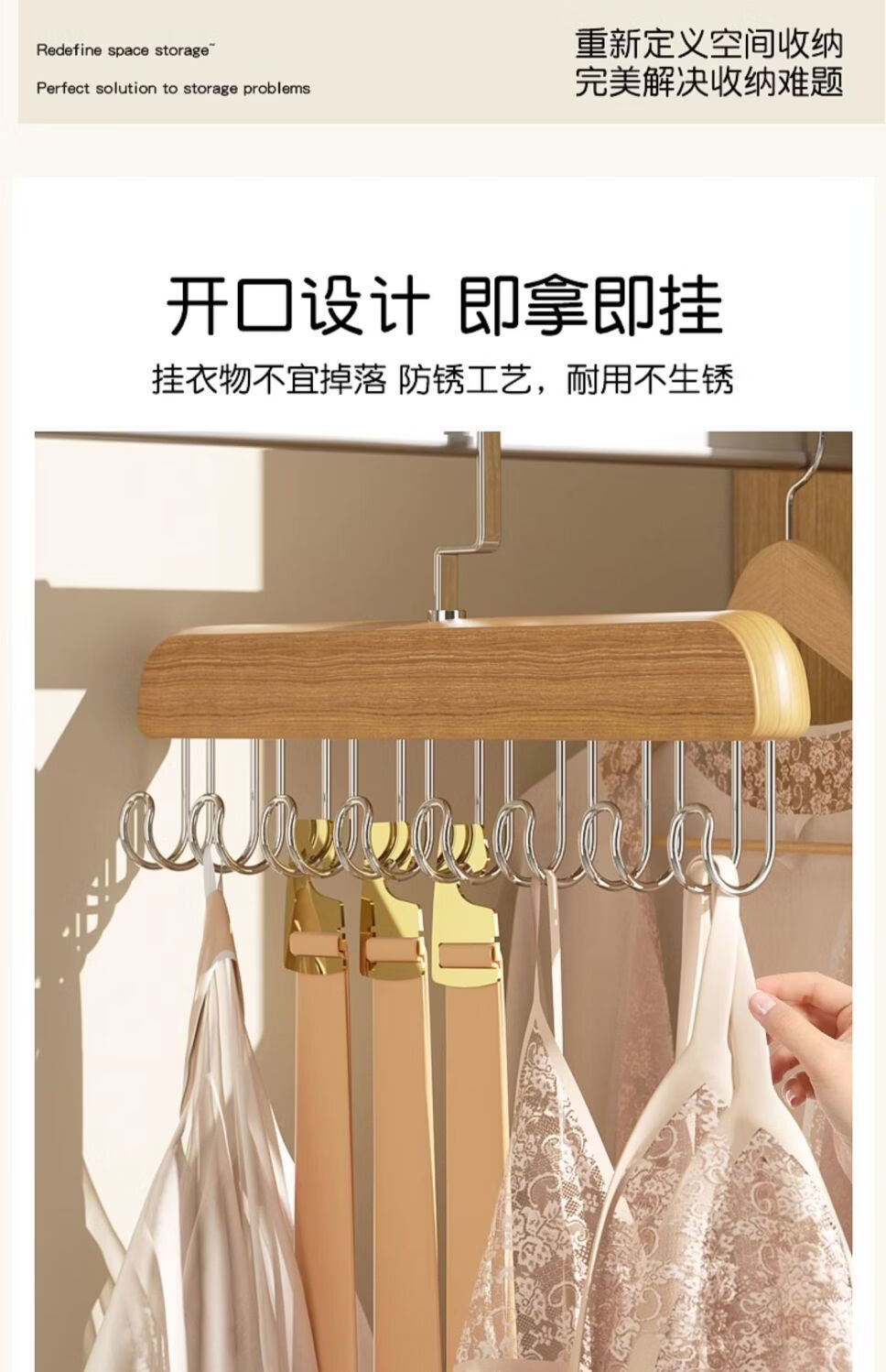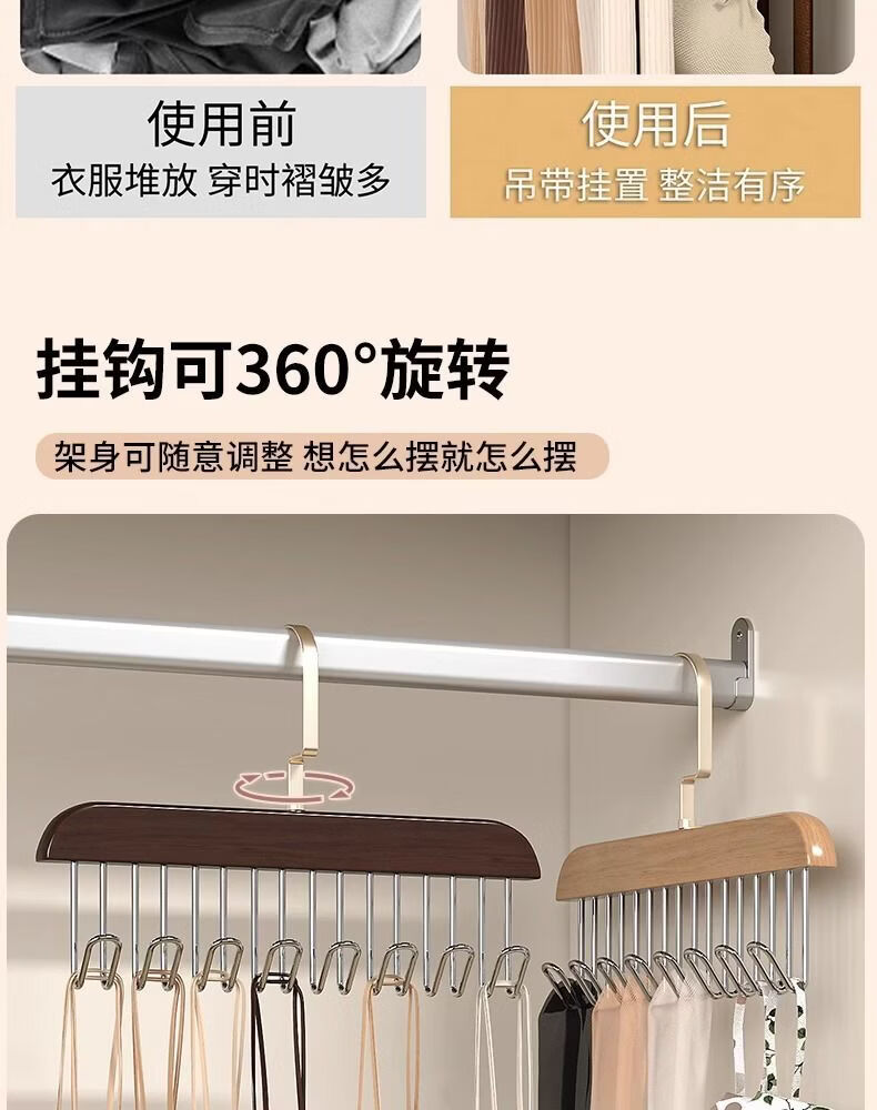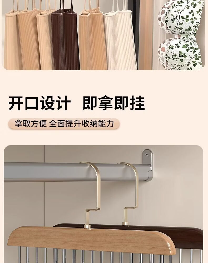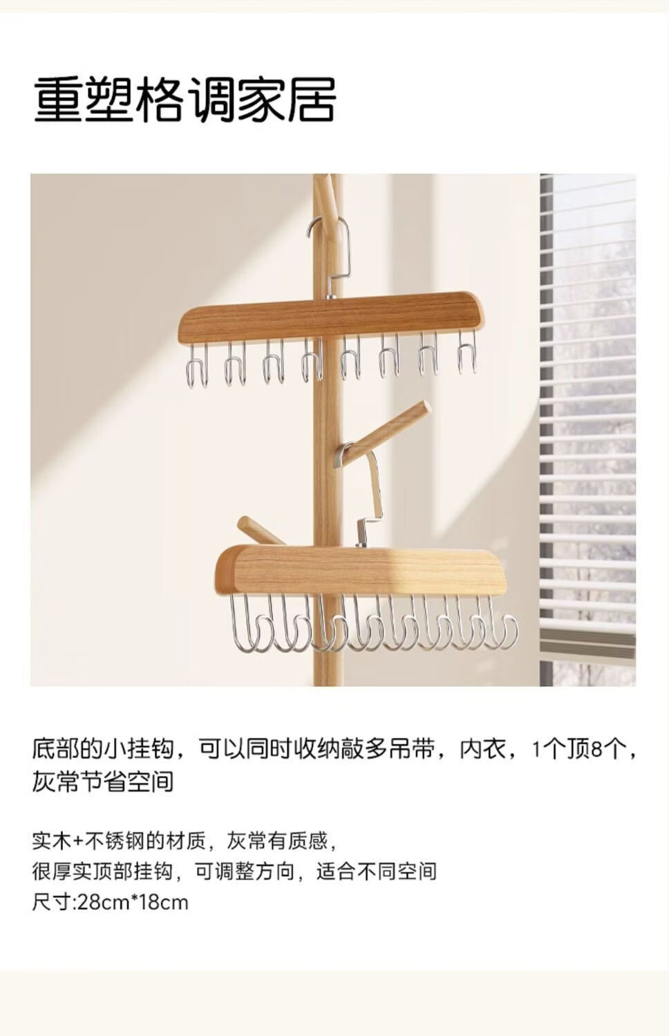 易思迪木质吊带衣架实木波浪晾衣架内衣背心收纳神器家用宿舍挂钩 原木色多功能收纳三个装