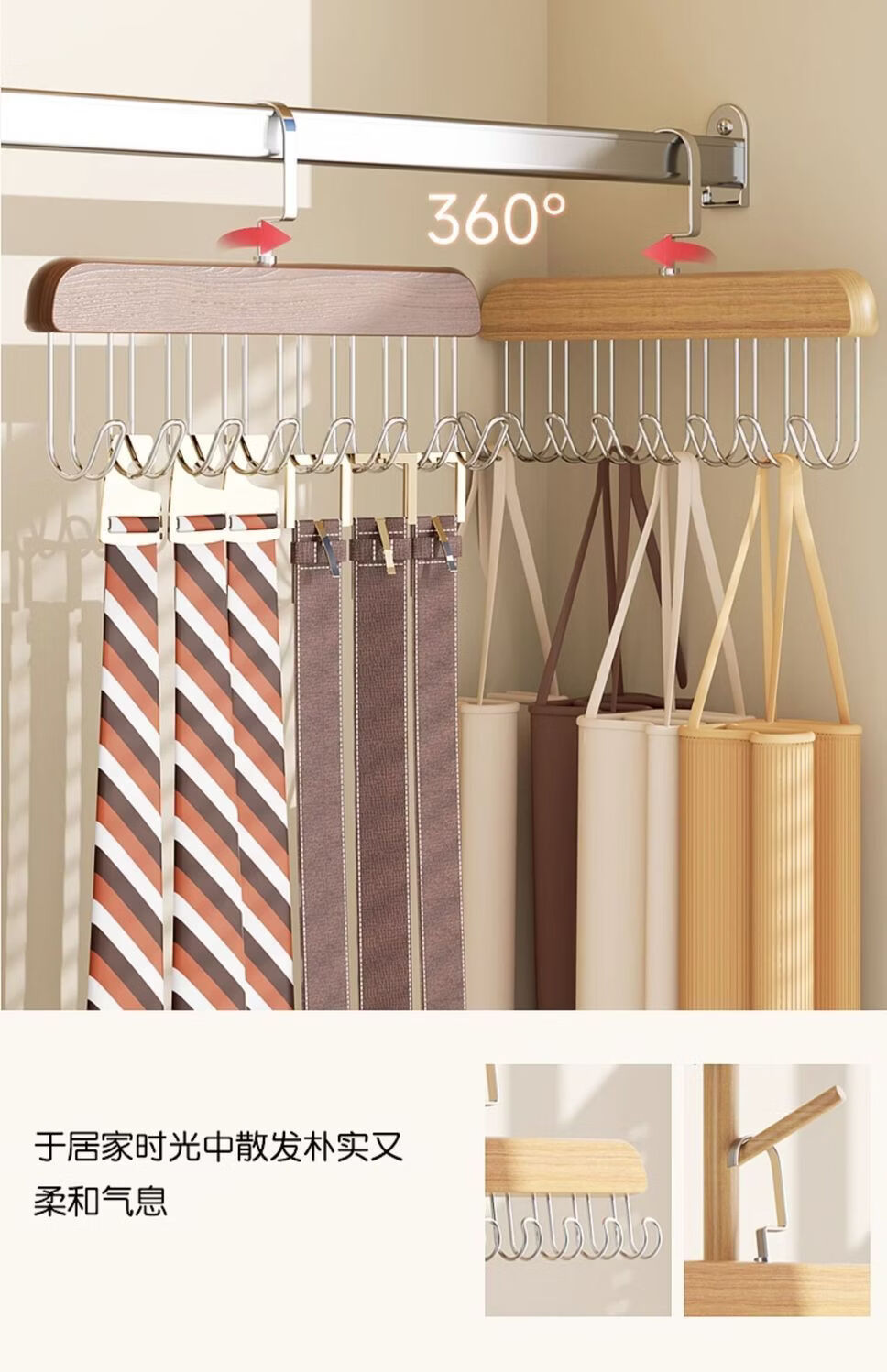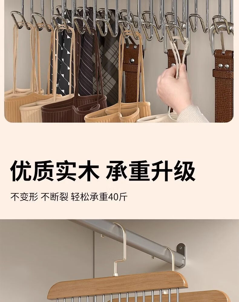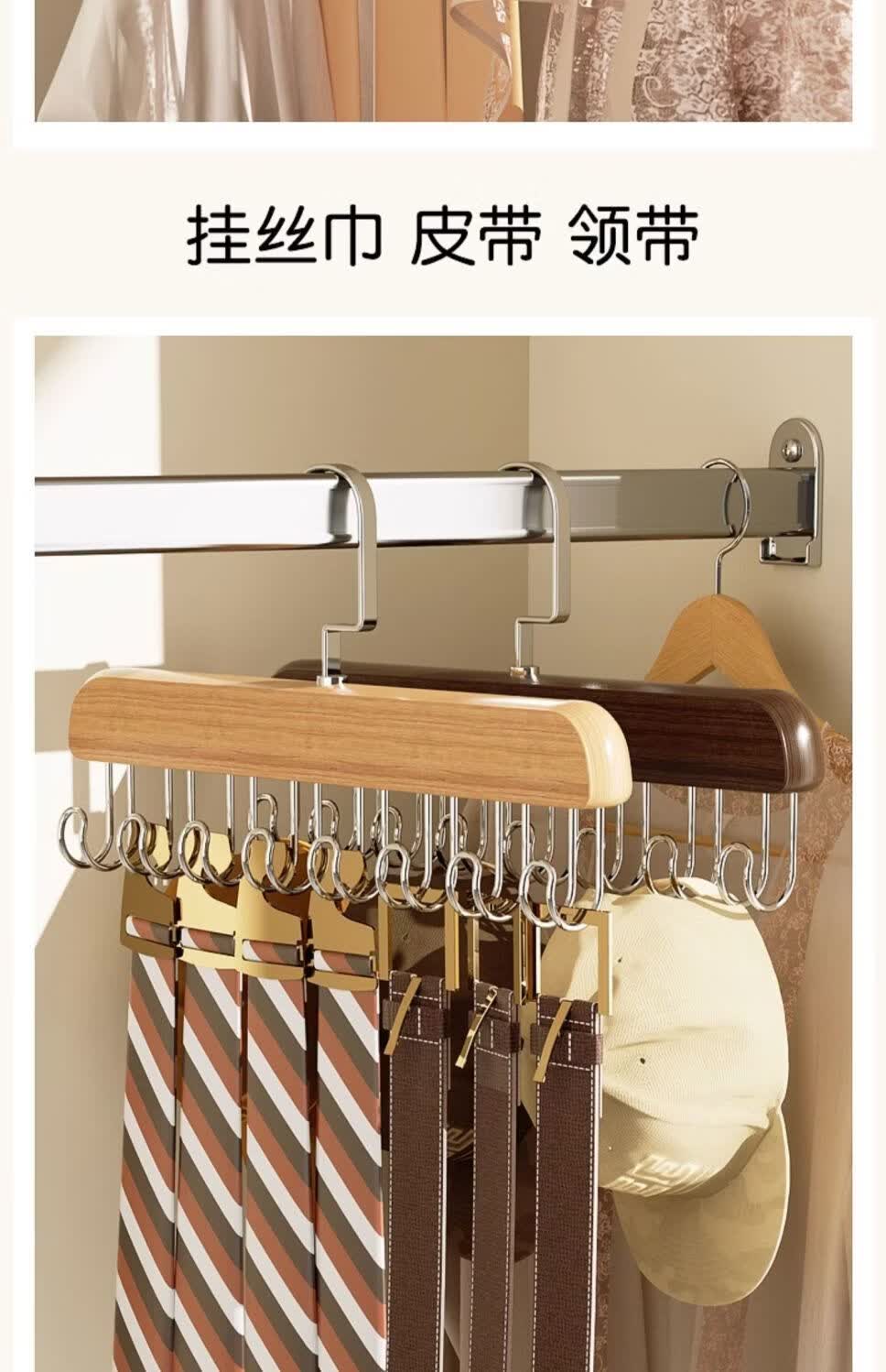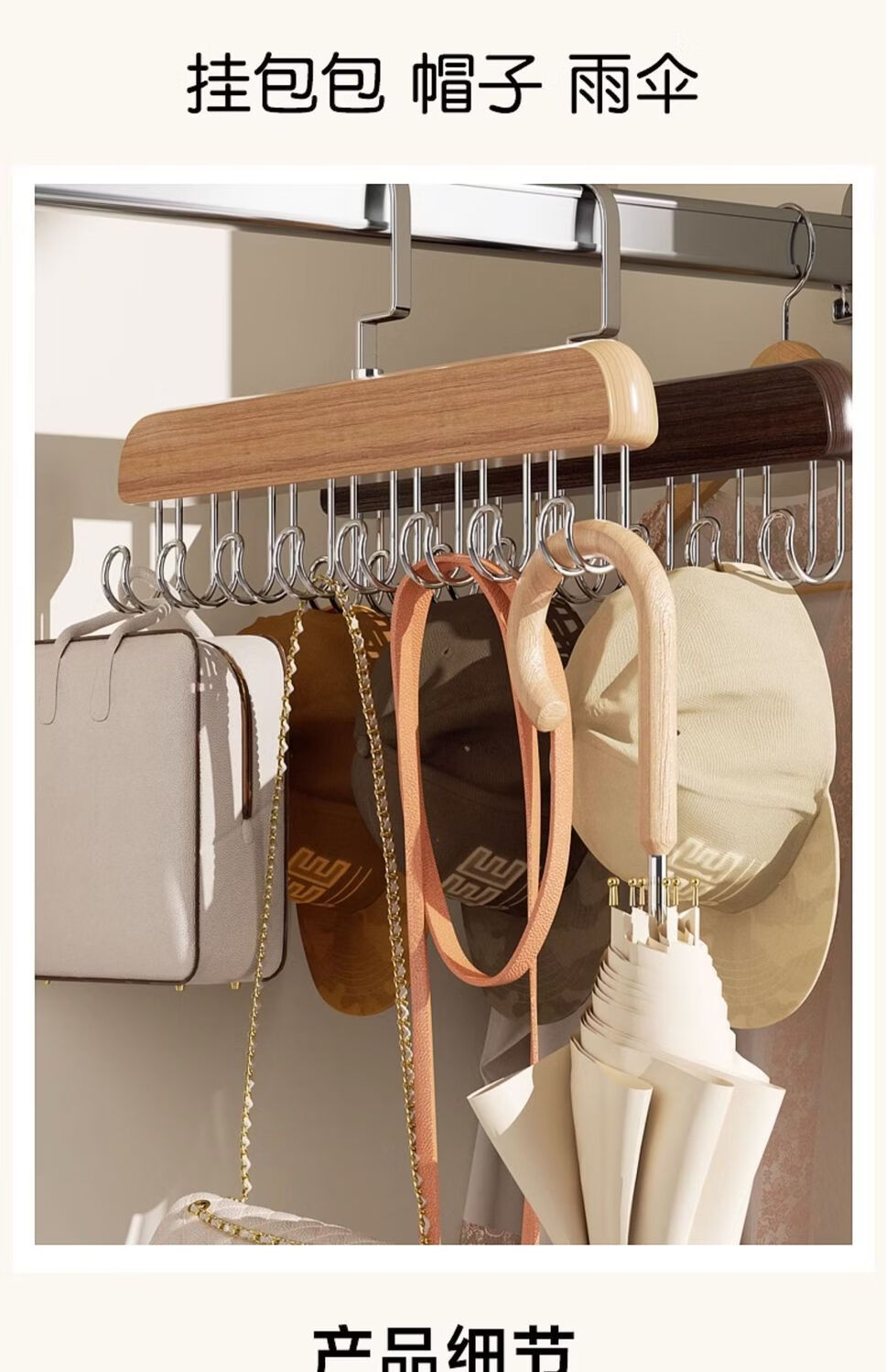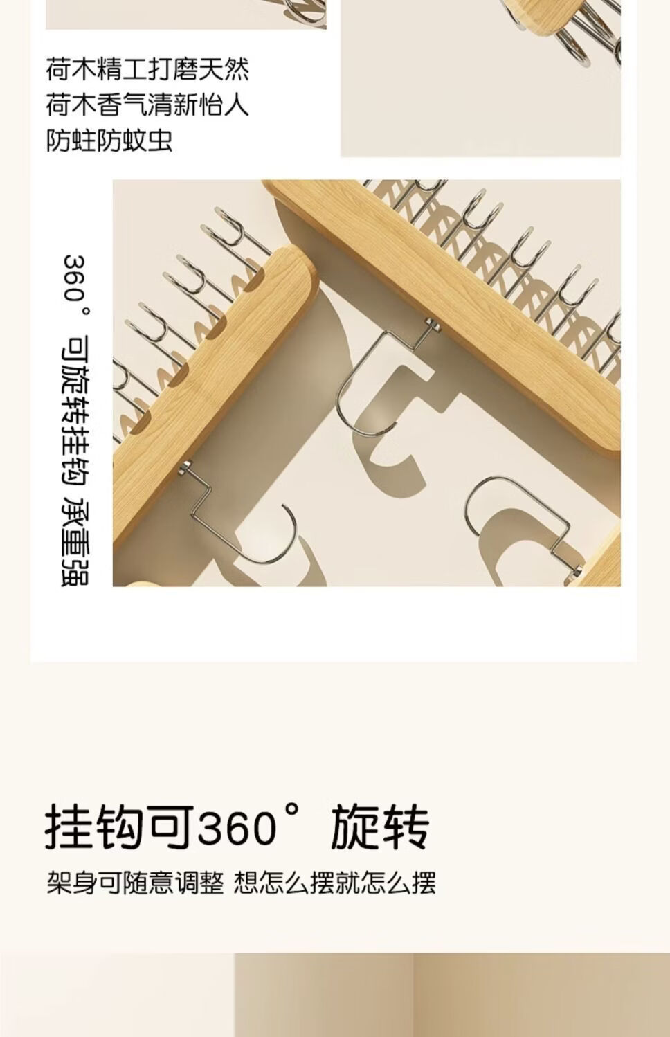 易思迪木质吊带衣架实木波浪晾衣架内衣背心收纳神器家用宿舍挂钩 原木色多功能收纳三个装
