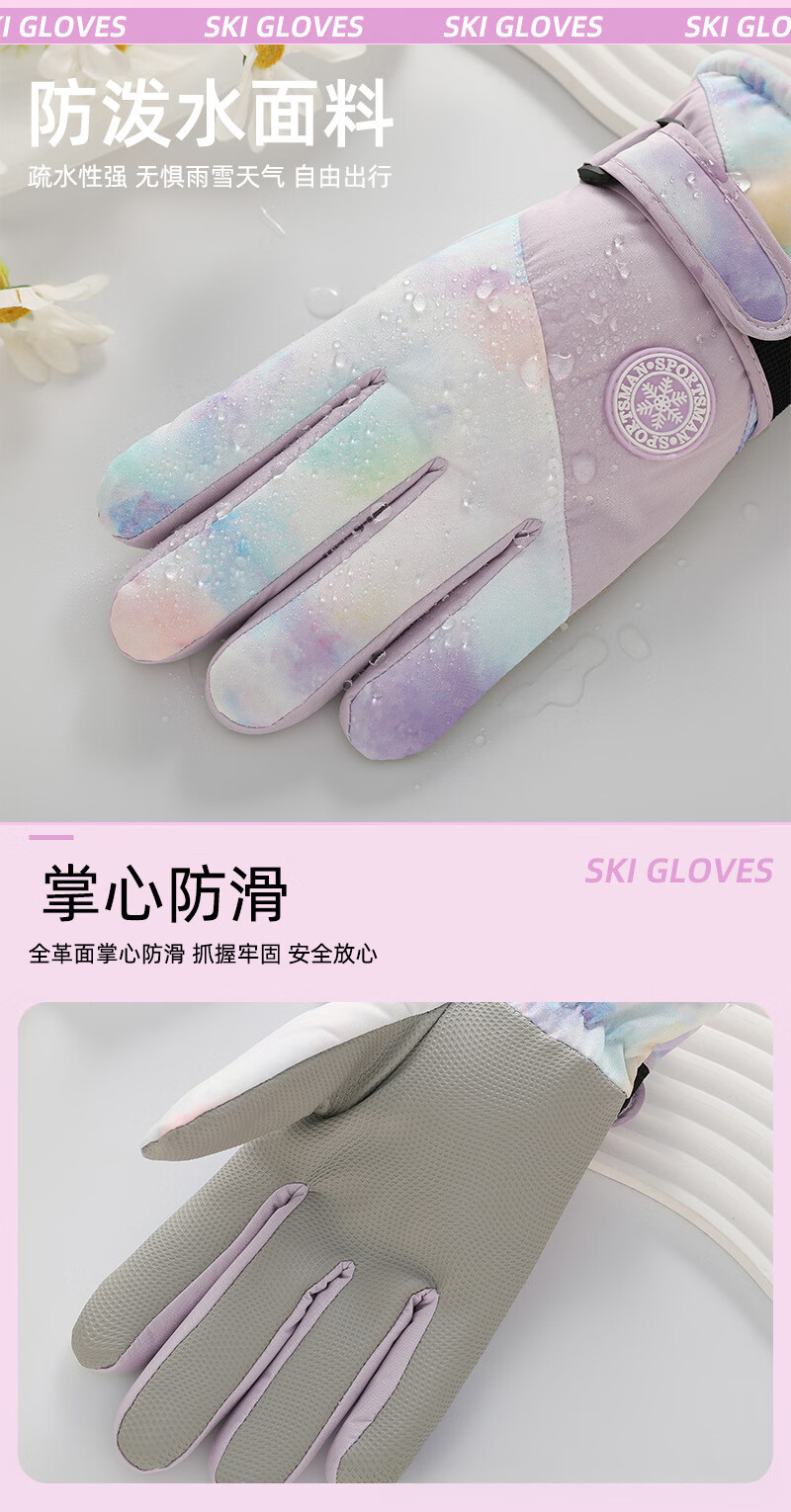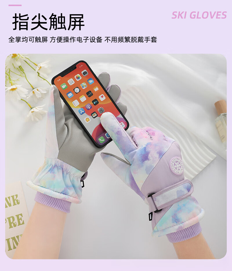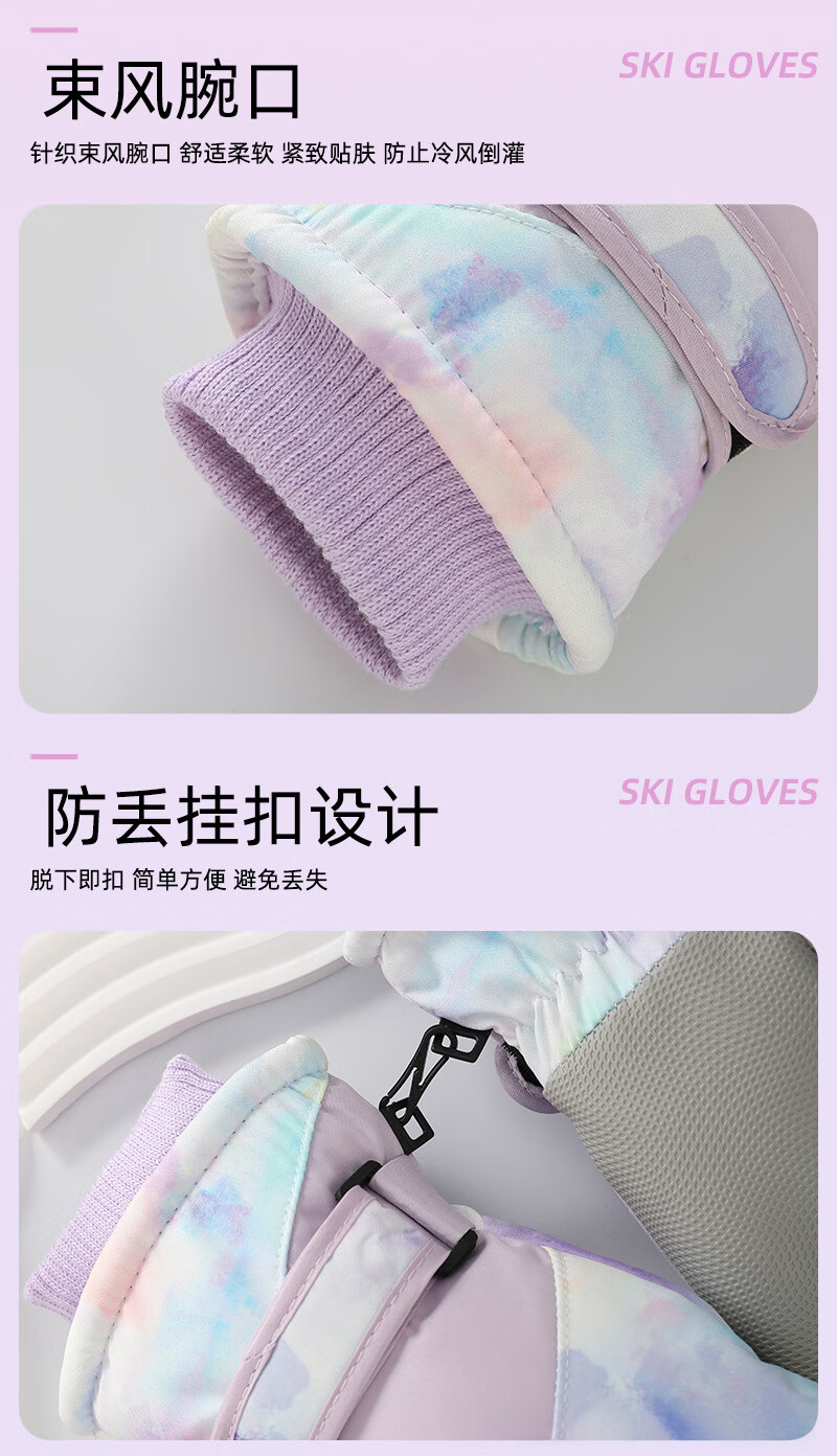 雪伦朵滑雪手套冬季女2025新防风触屏保暖骑行电动车棉手套加绒防寒防冻 幻彩紫