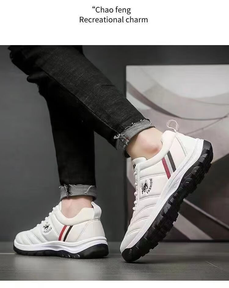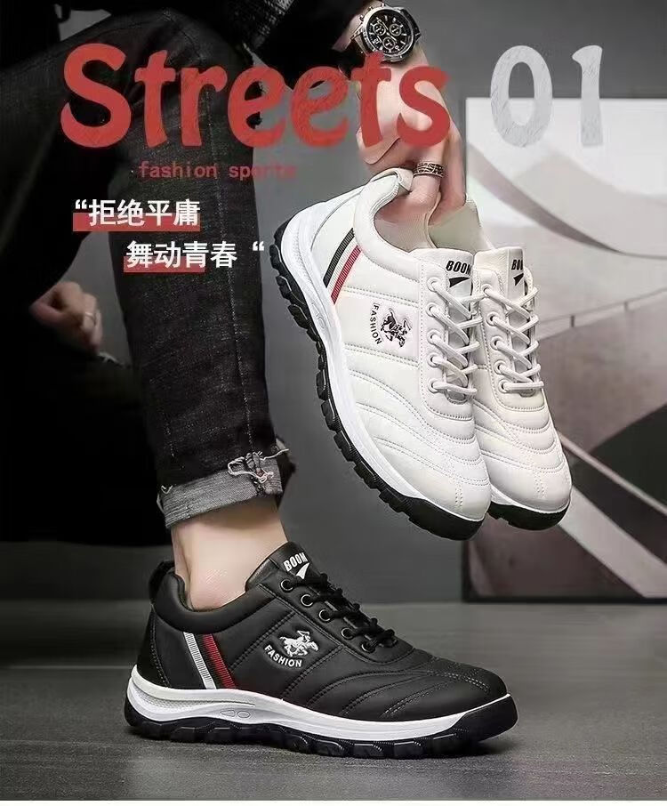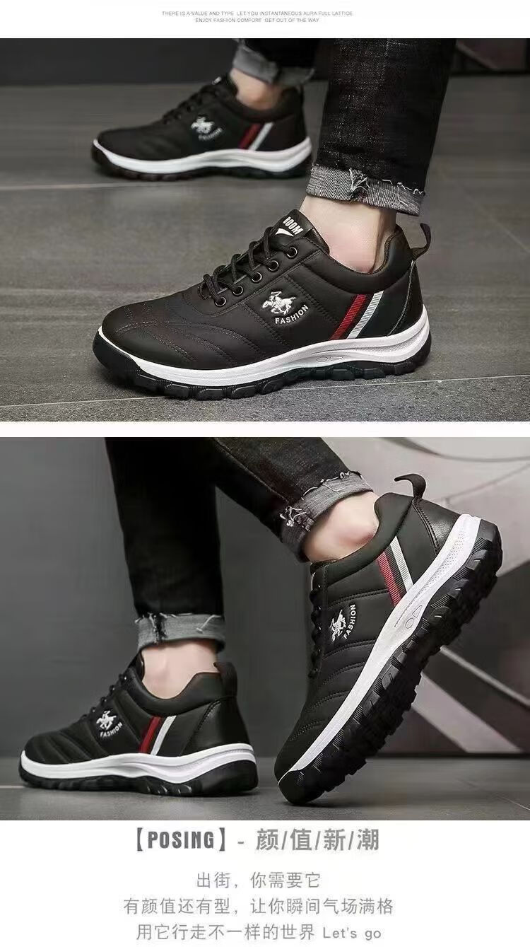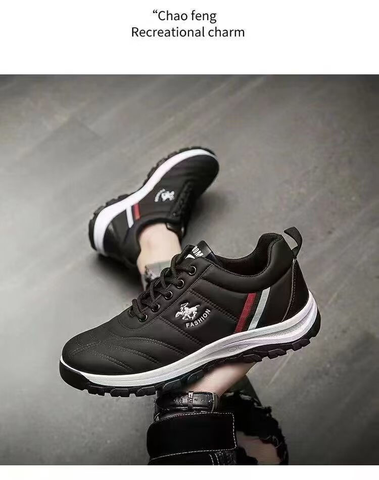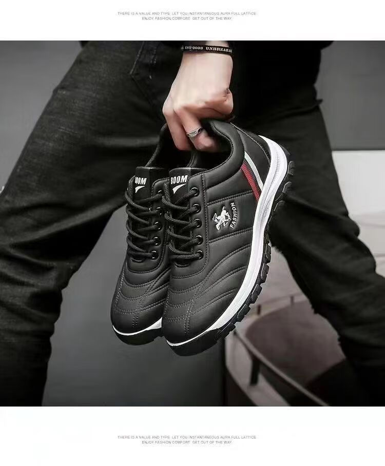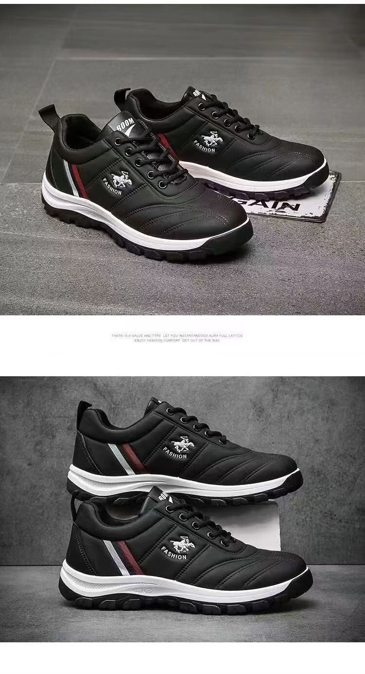 【严选好物】运动鞋耐磨跑步软底春秋季休闲透气防滑男鞋男士鞋子 保罗皮面-黑色 (一双) 40