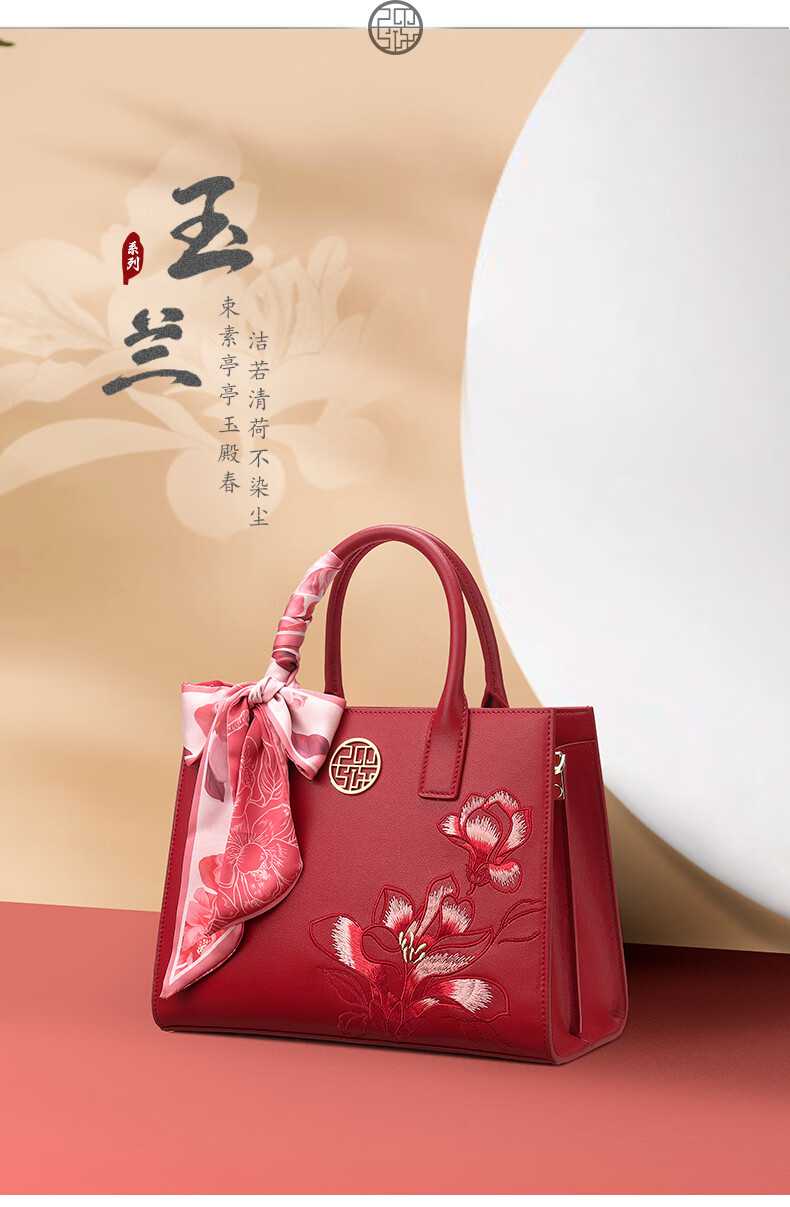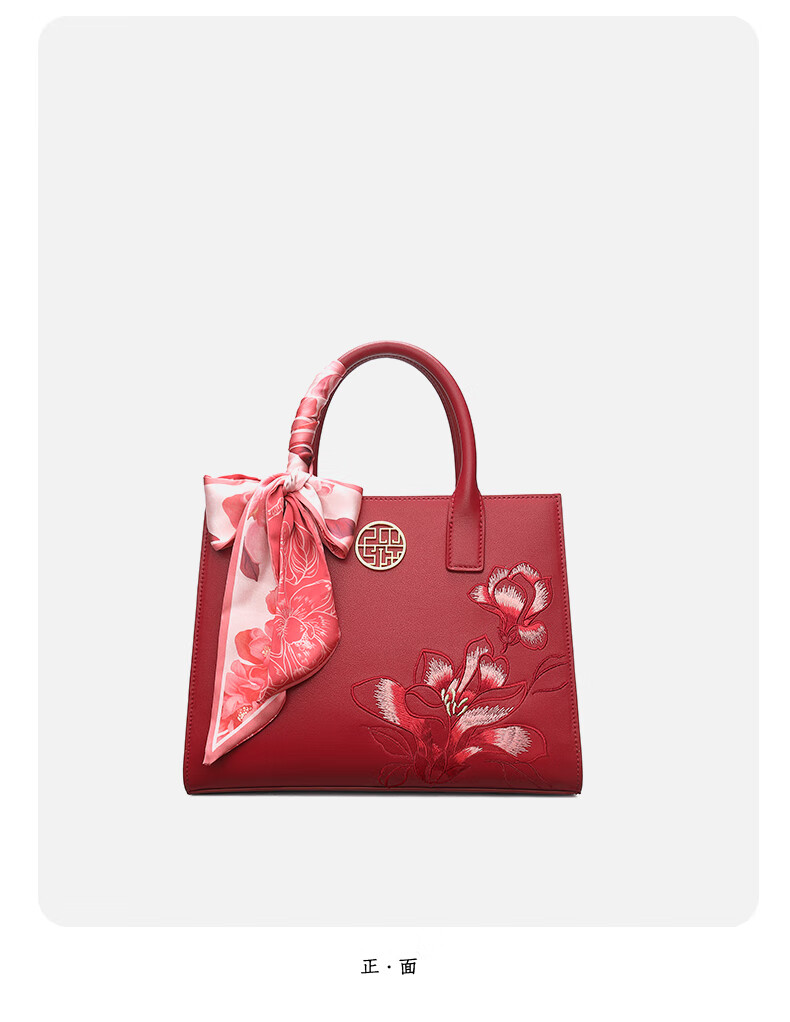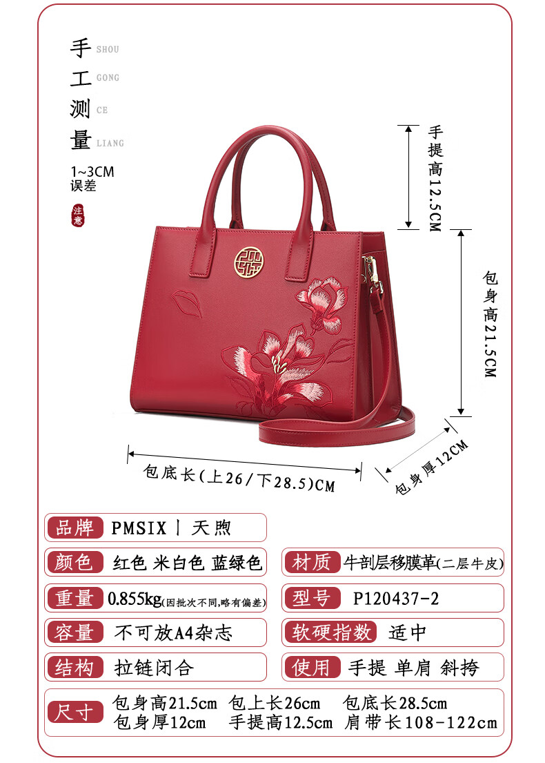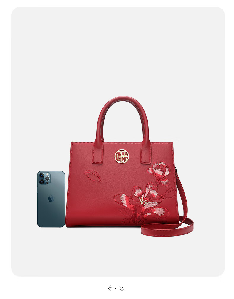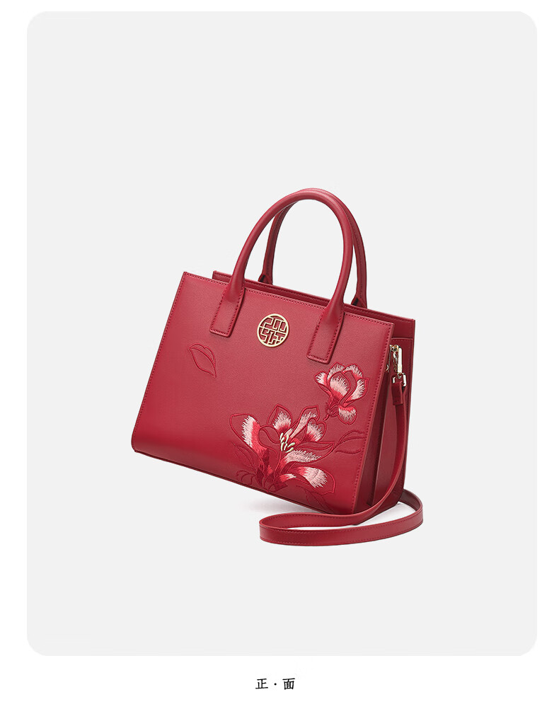天煦女包刺绣手提包牛皮大包中年婆婆包单肩旗袍包送丈母娘礼物妈妈包 蓝绿色-送礼品袋