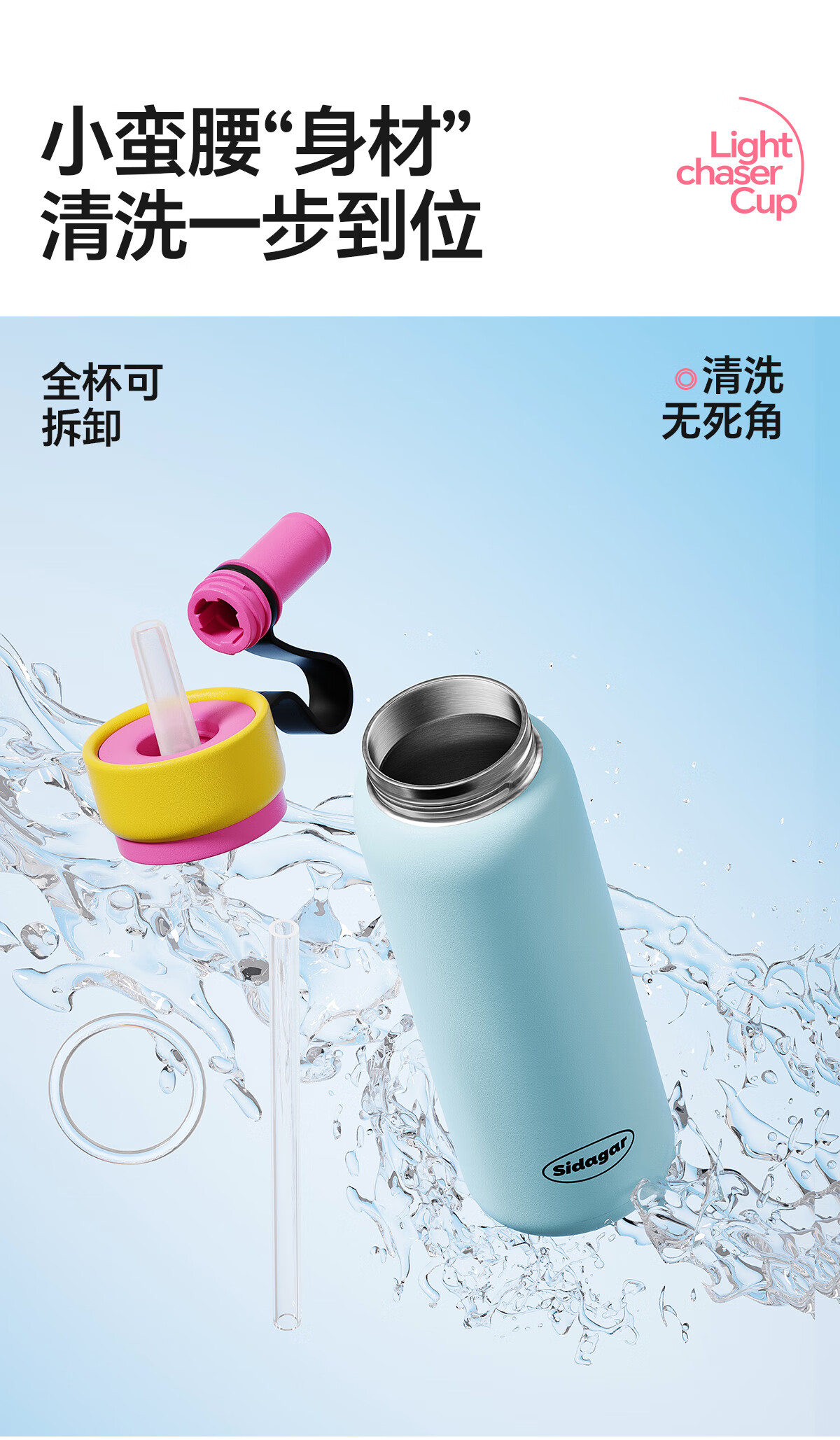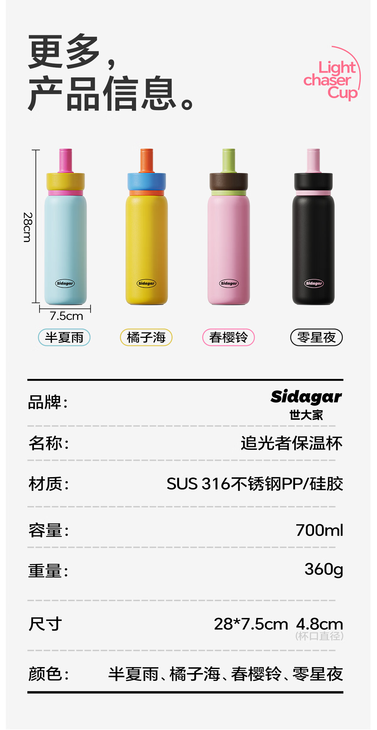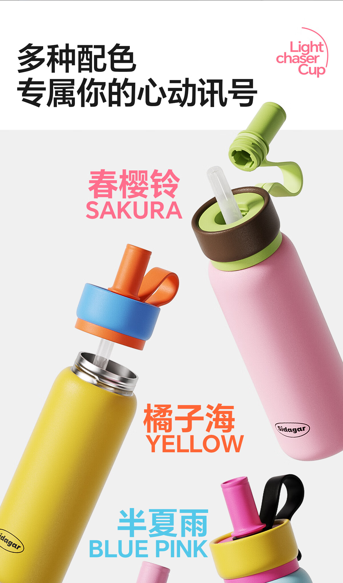 世大家保温杯运动水杯女士学生大容量便携吸管杯316不锈钢骑行户外杯子 橘子海(黄) 700ml