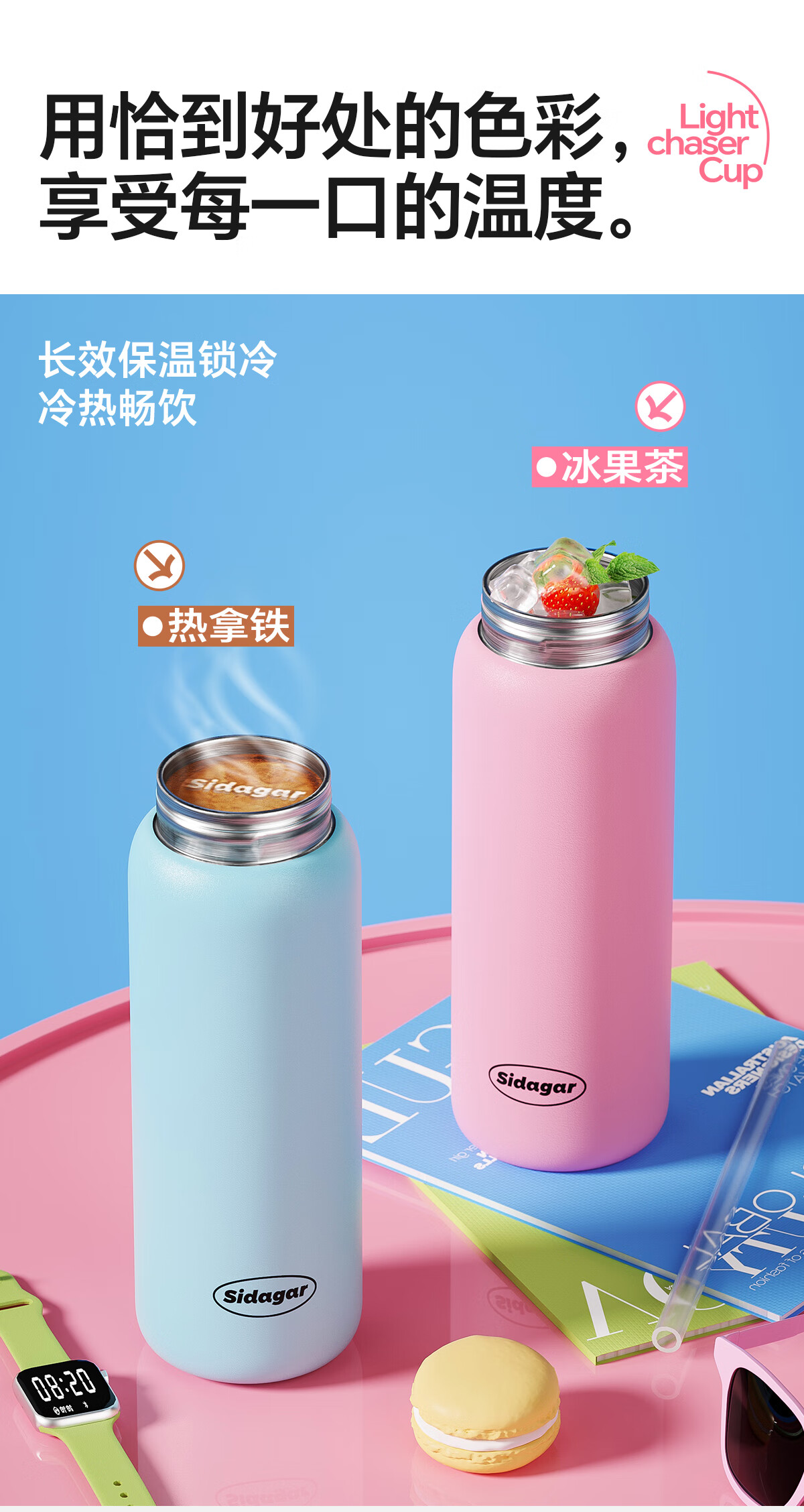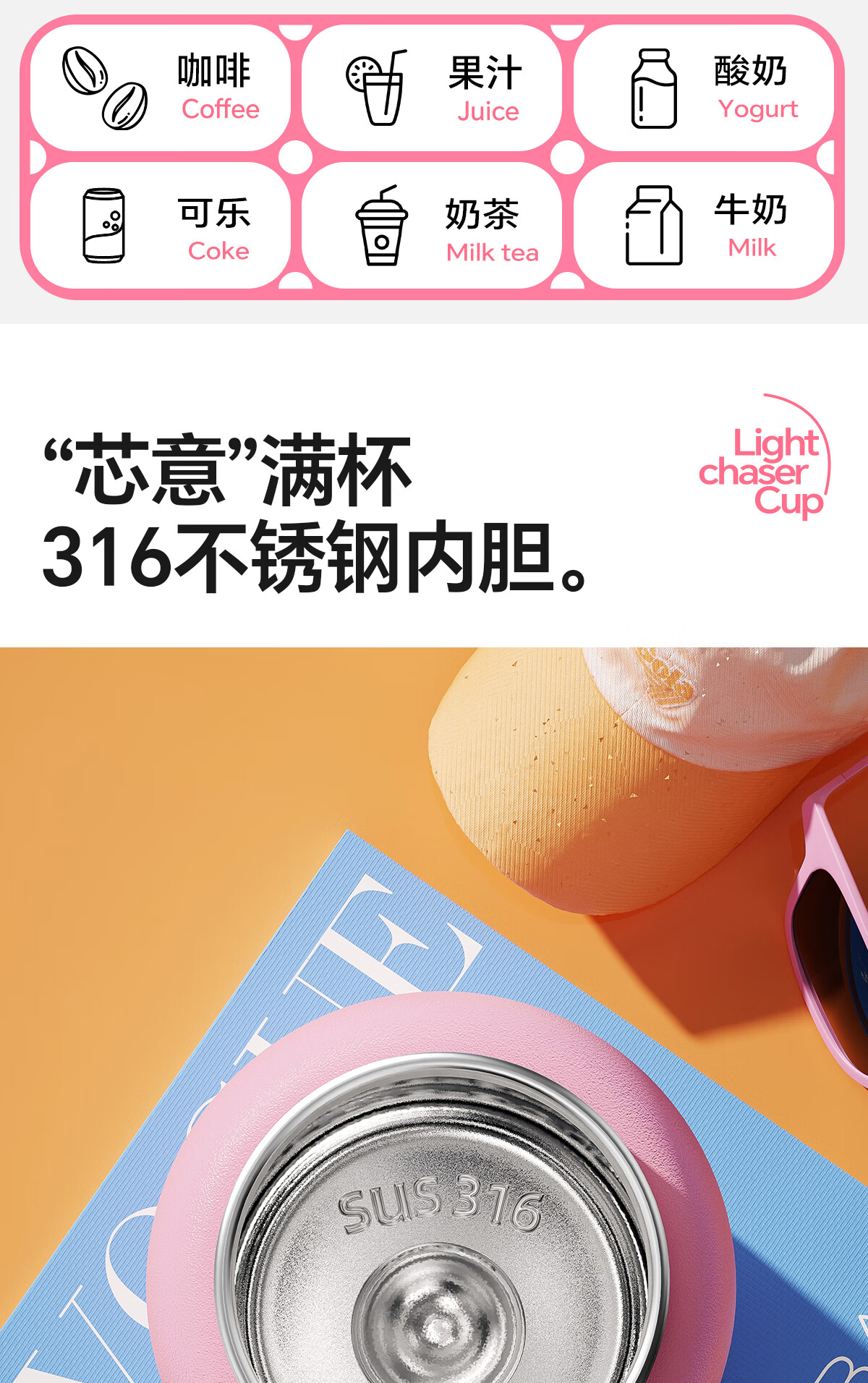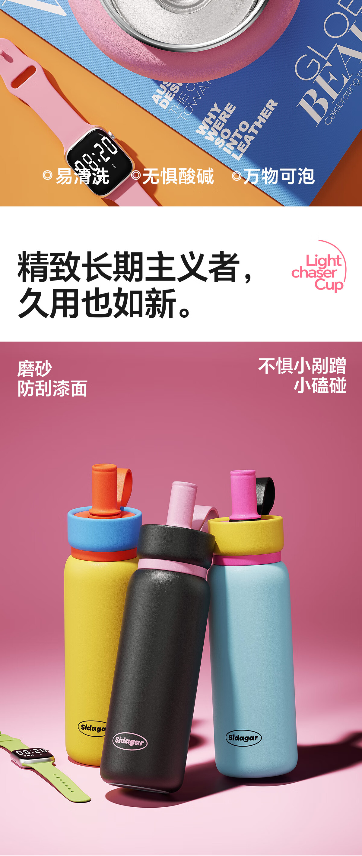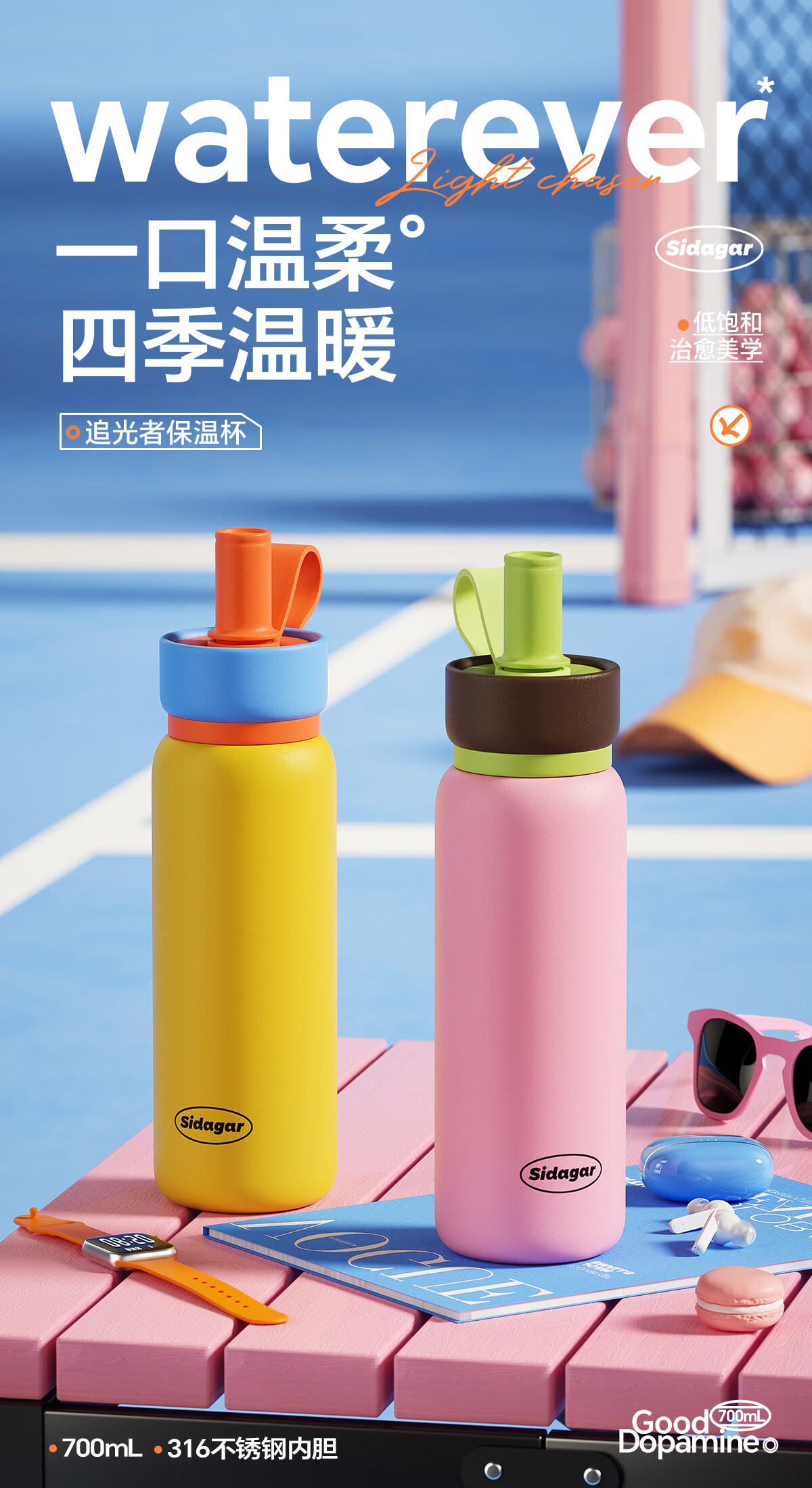 世大家保温杯运动水杯女士学生大容量便携吸管杯316不锈钢骑行户外杯子 橘子海(黄) 700ml