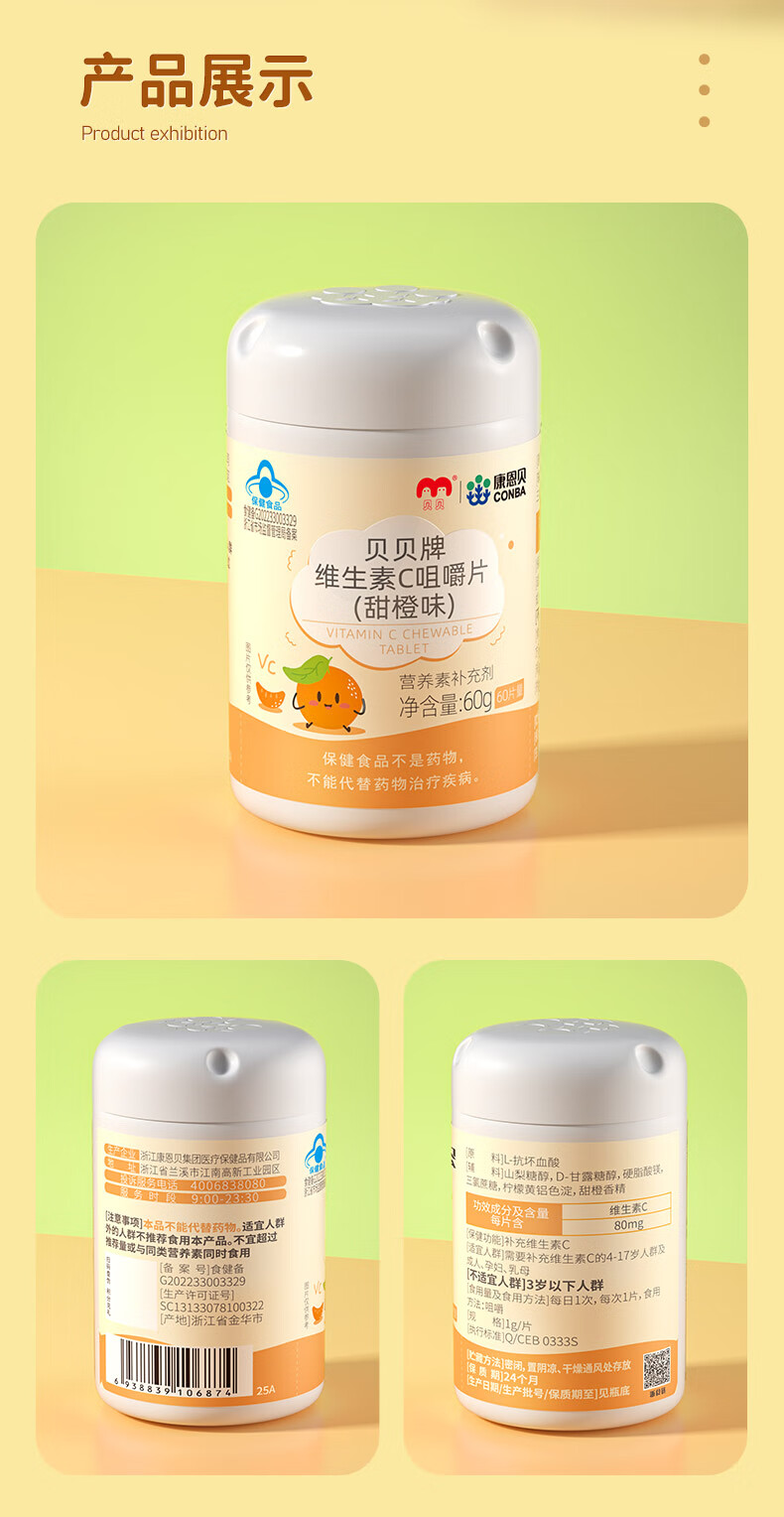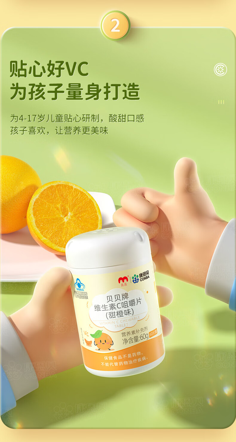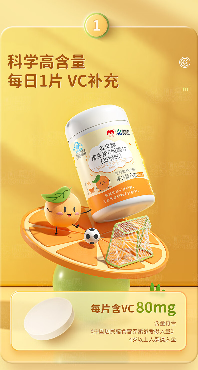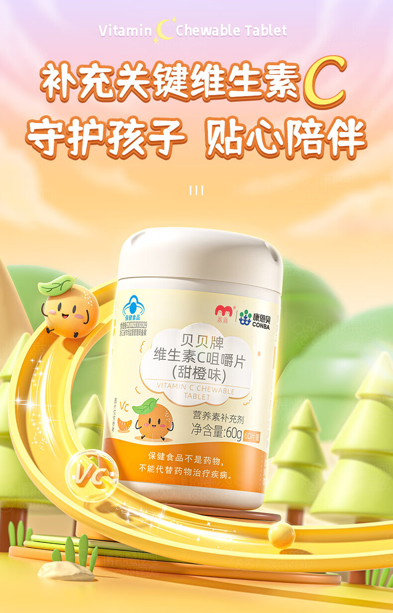 康恩贝儿童维生素c咀嚼片vc小孩学生成人维他命C搭多种维生素钙铁锌钙片 好吃的儿童维C:1瓶儿童维C【草莓味】