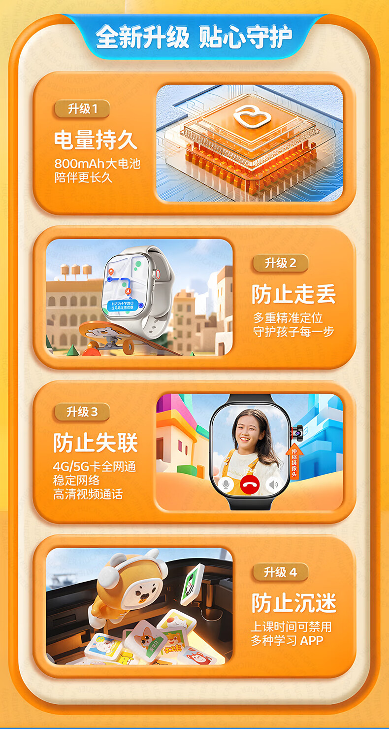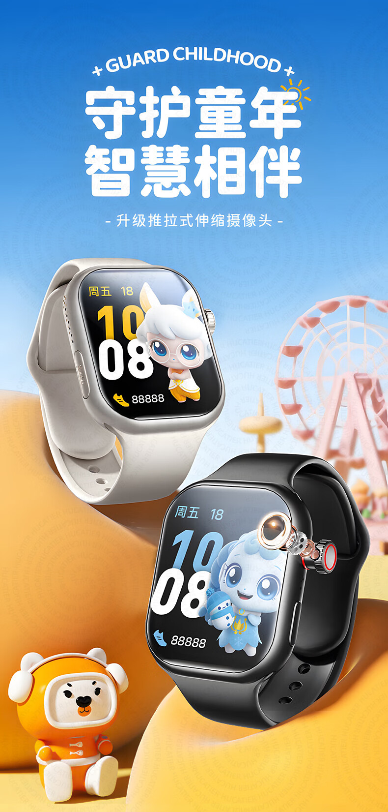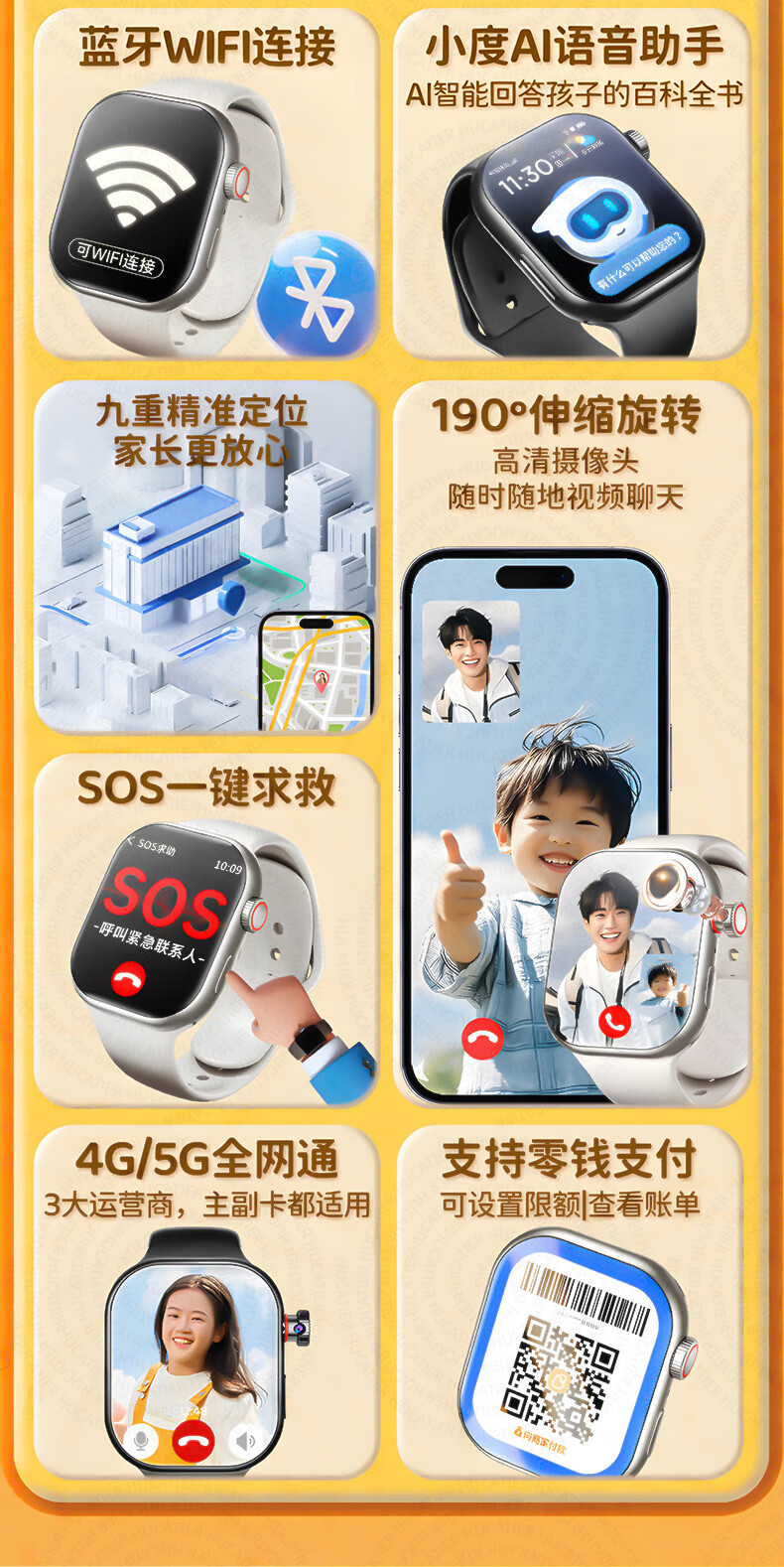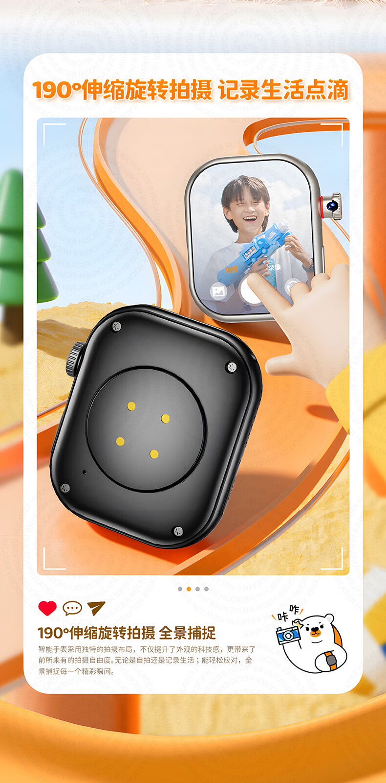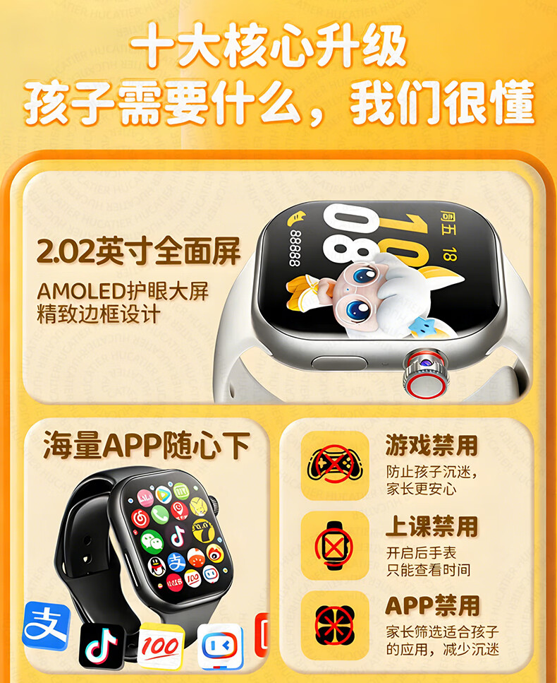 HUCATIER天才机适用儿童电话手表微信视频小学初高中生青少年6-12-18岁5G全网通可插卡防水定位男女孩 【热销】尊贵黑190°摄像+256G处理器+管控