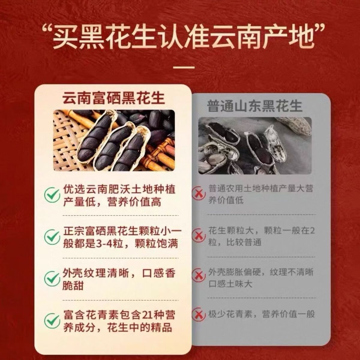 云南富硒生黑花生带壳黑花生米黑衣花生养胃花生批发养生原味好吃 1斤 精选出口级老品种小粒独粒黑花生 回甜味好