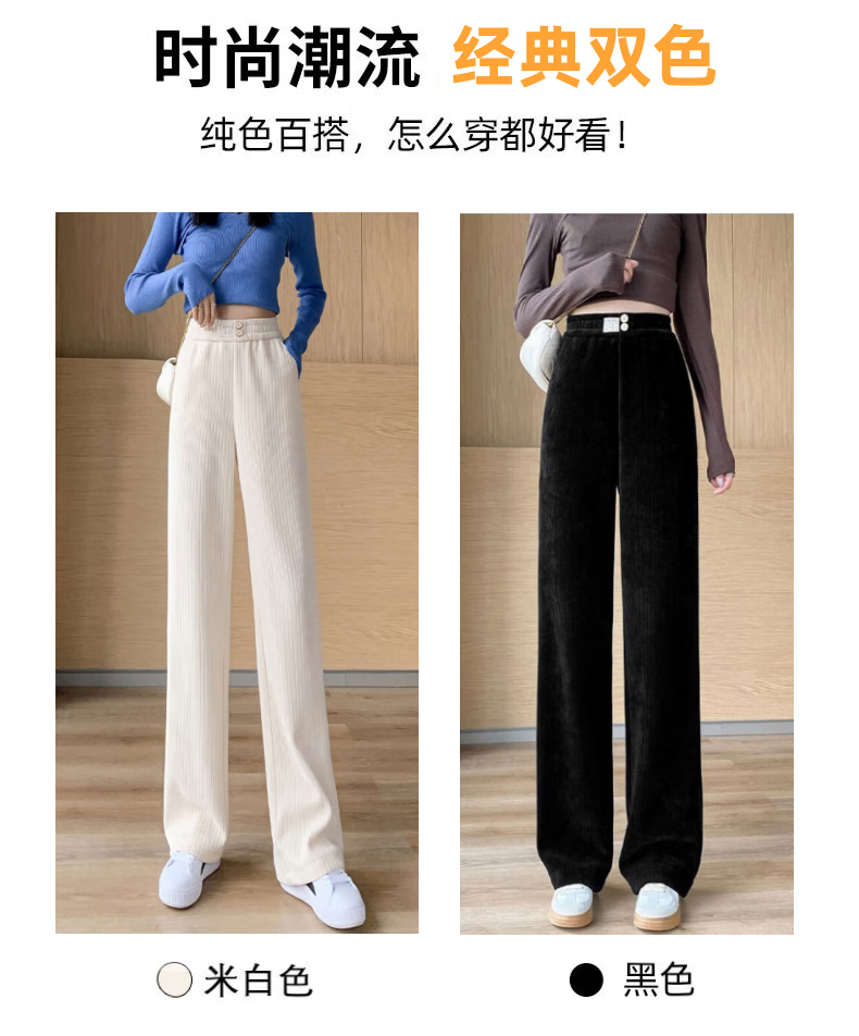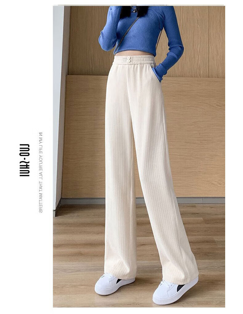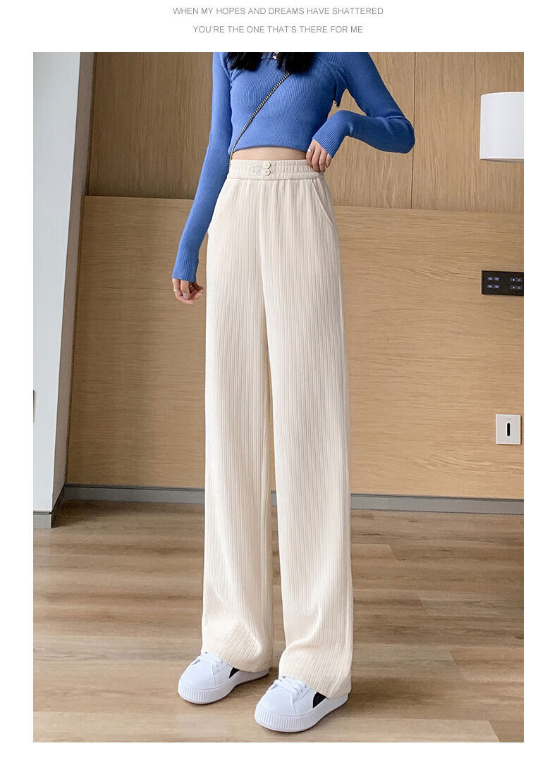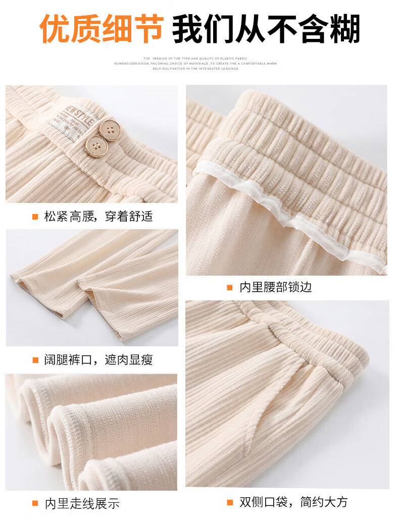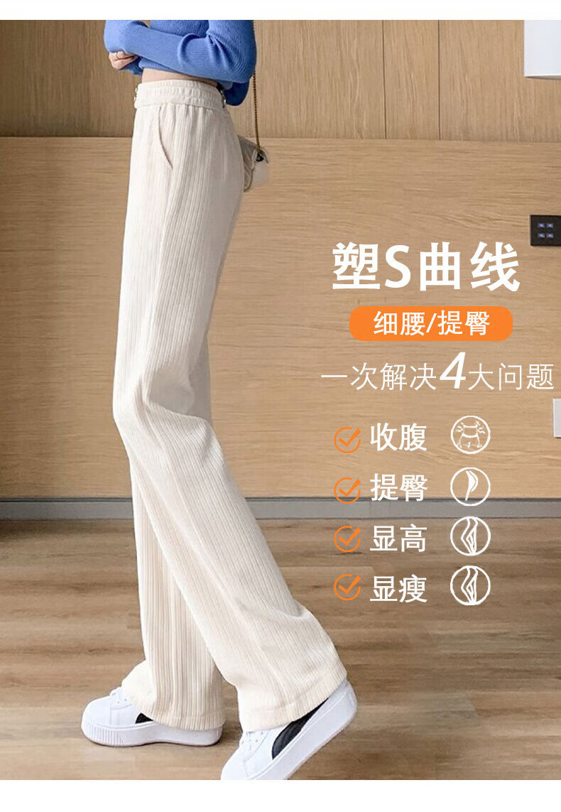 浪莎雪尼尔阔腿裤女秋冬季新款加绒加厚高腰直筒裤宽松垂感休闲裤子女 米白色 -冬季加绒 M (推荐101斤-110斤)
