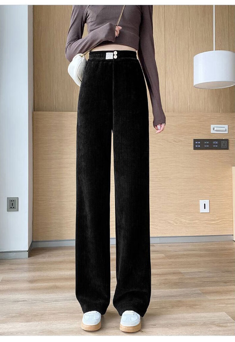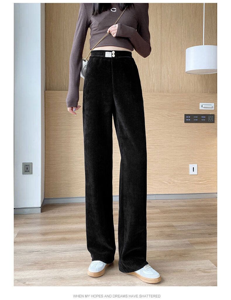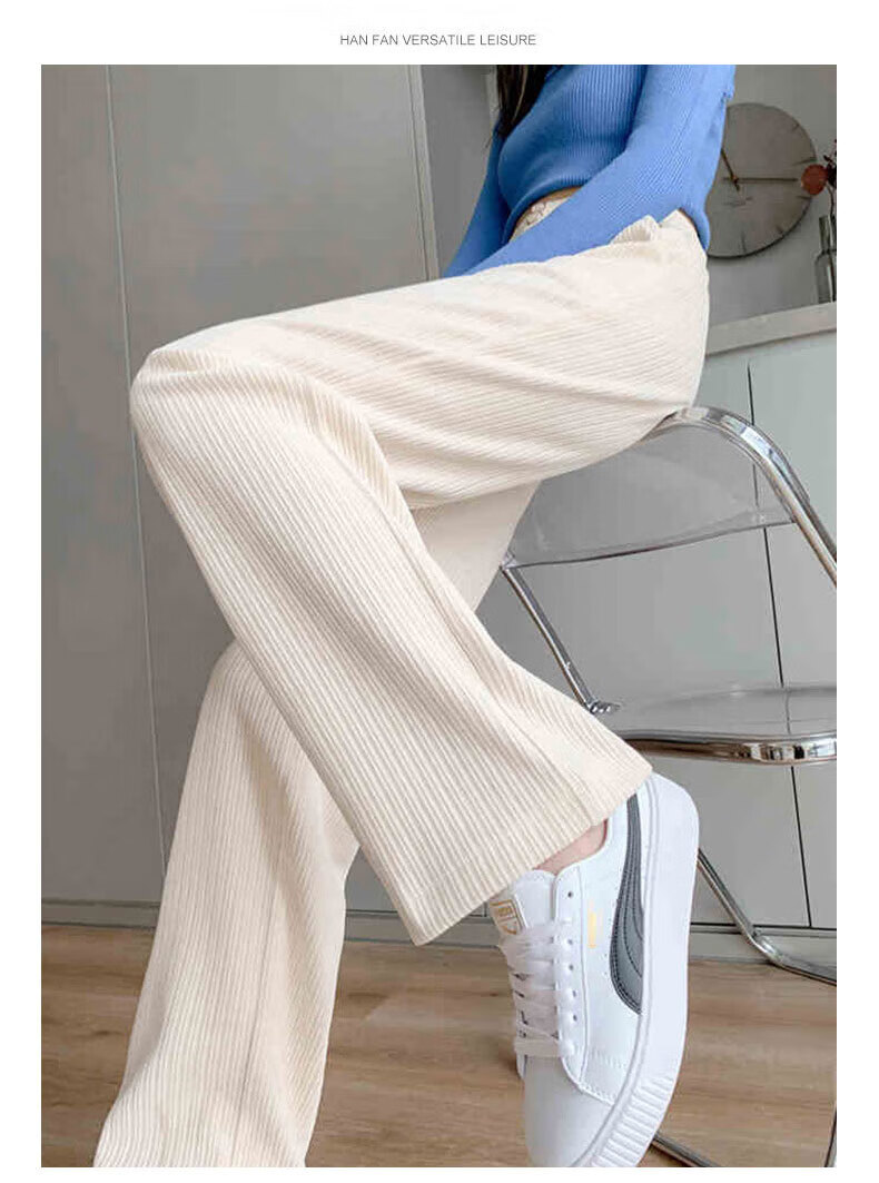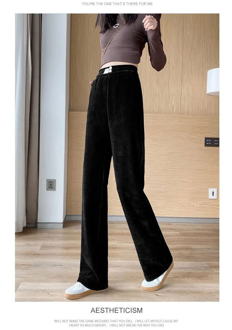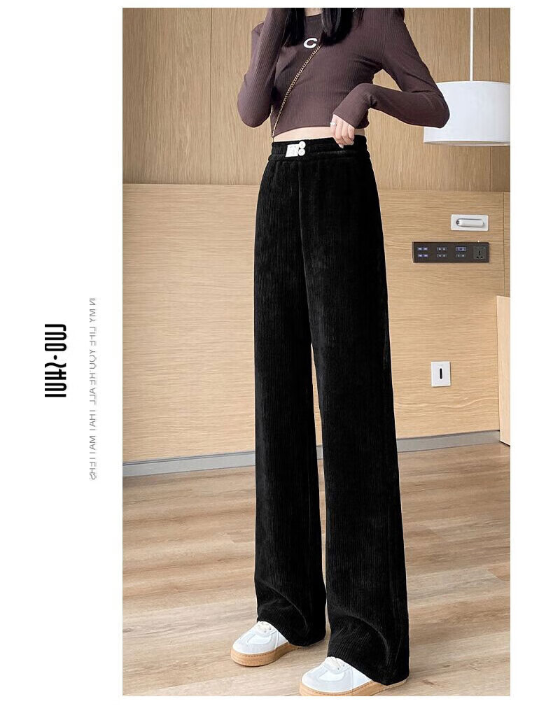 浪莎雪尼尔阔腿裤女秋冬季新款加绒加厚高腰直筒裤宽松垂感休闲裤子女 米白色 -冬季加绒 M (推荐101斤-110斤)