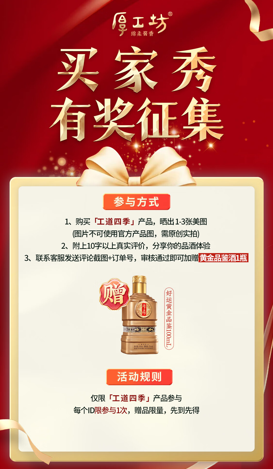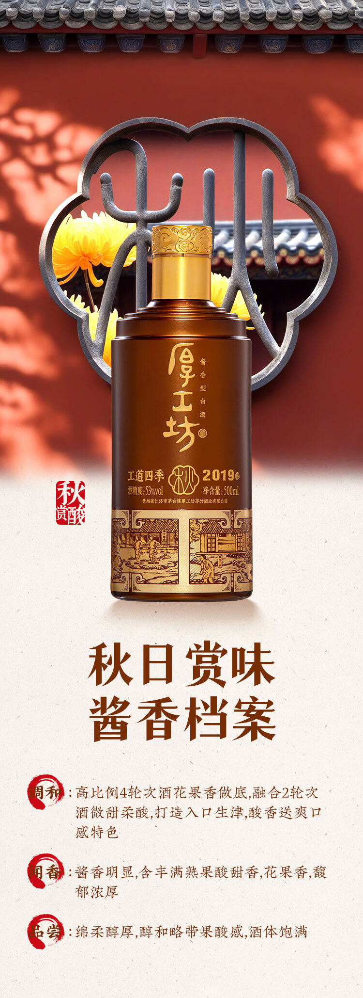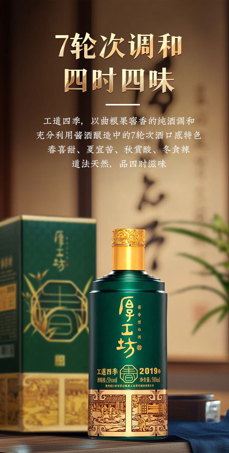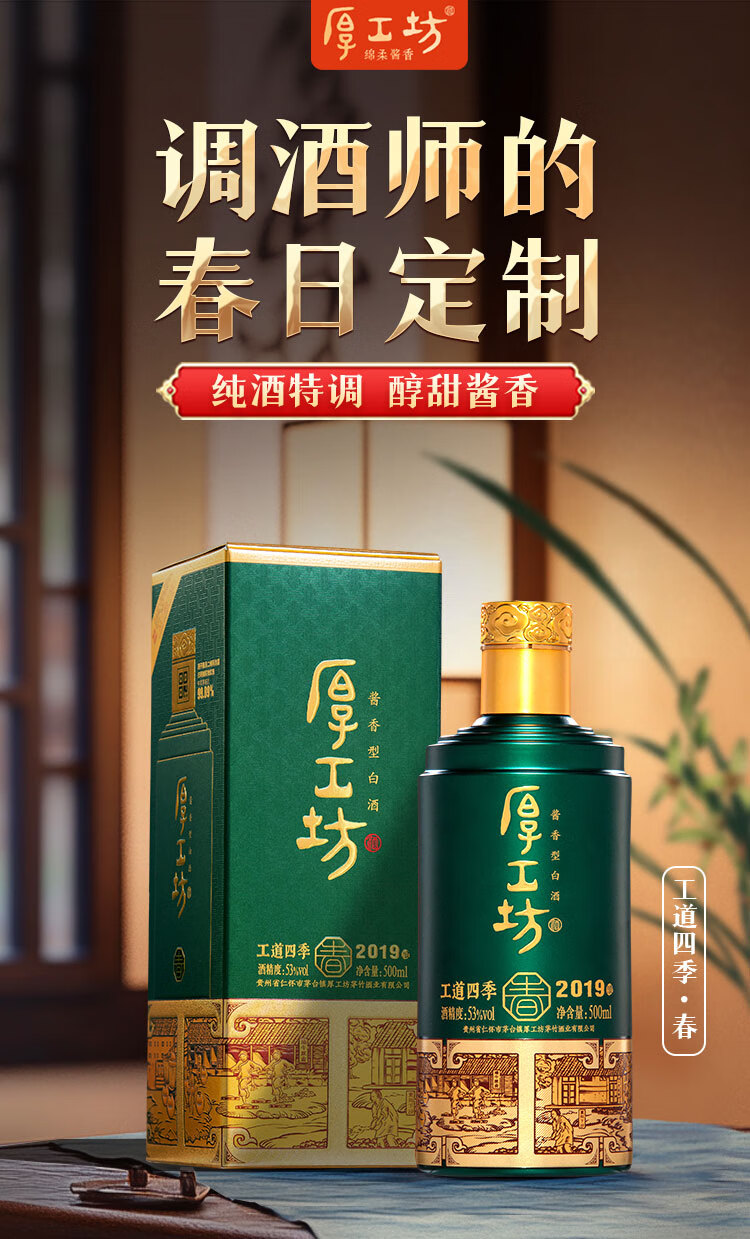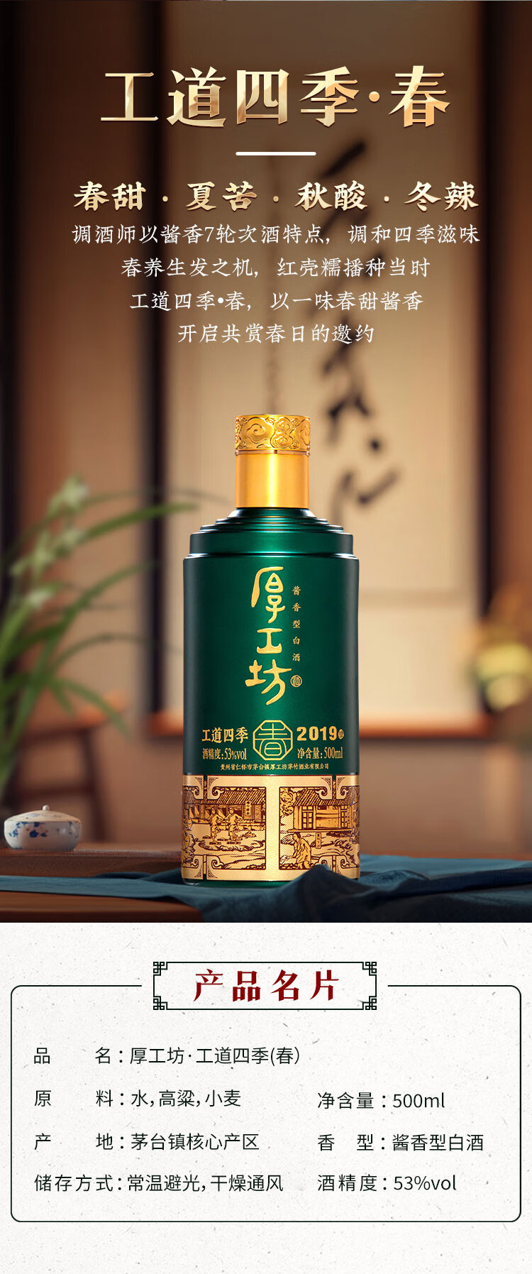 厚工坊工道四季 春 夏 秋 冬 纯酒特调 茅台镇高端酱香型53度白酒 53度 500mL 6瓶 (工道四季夏1箱)