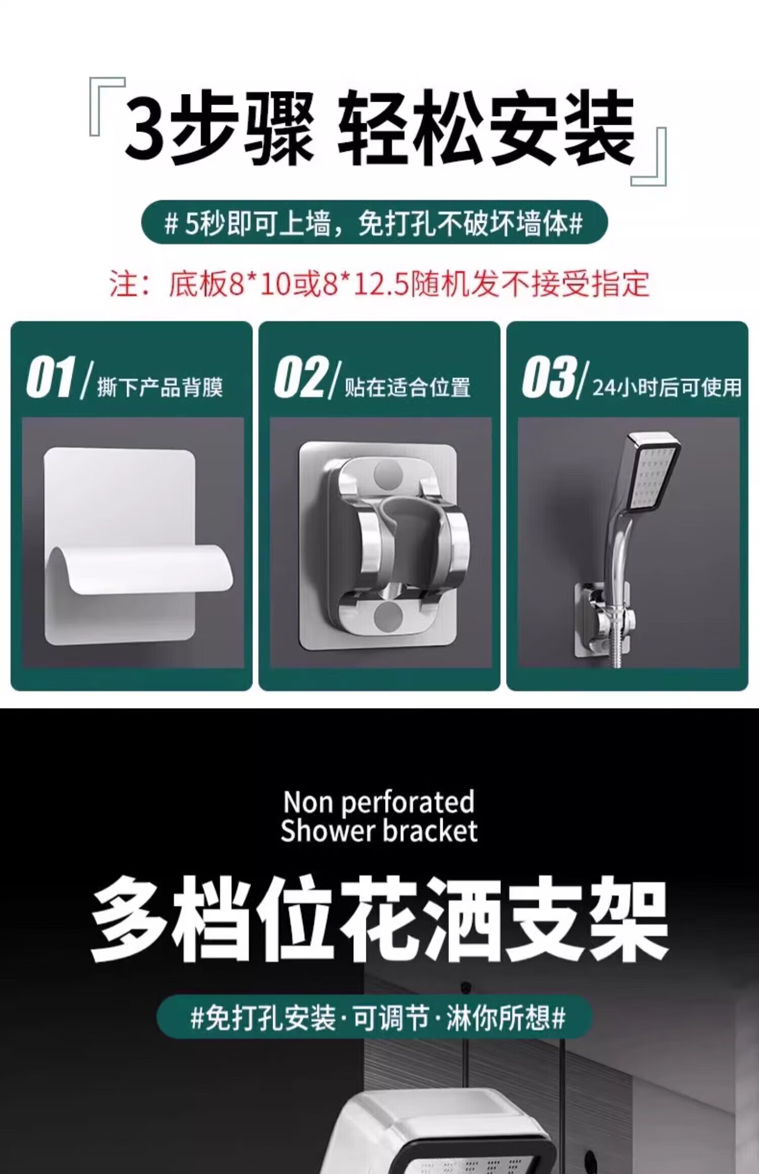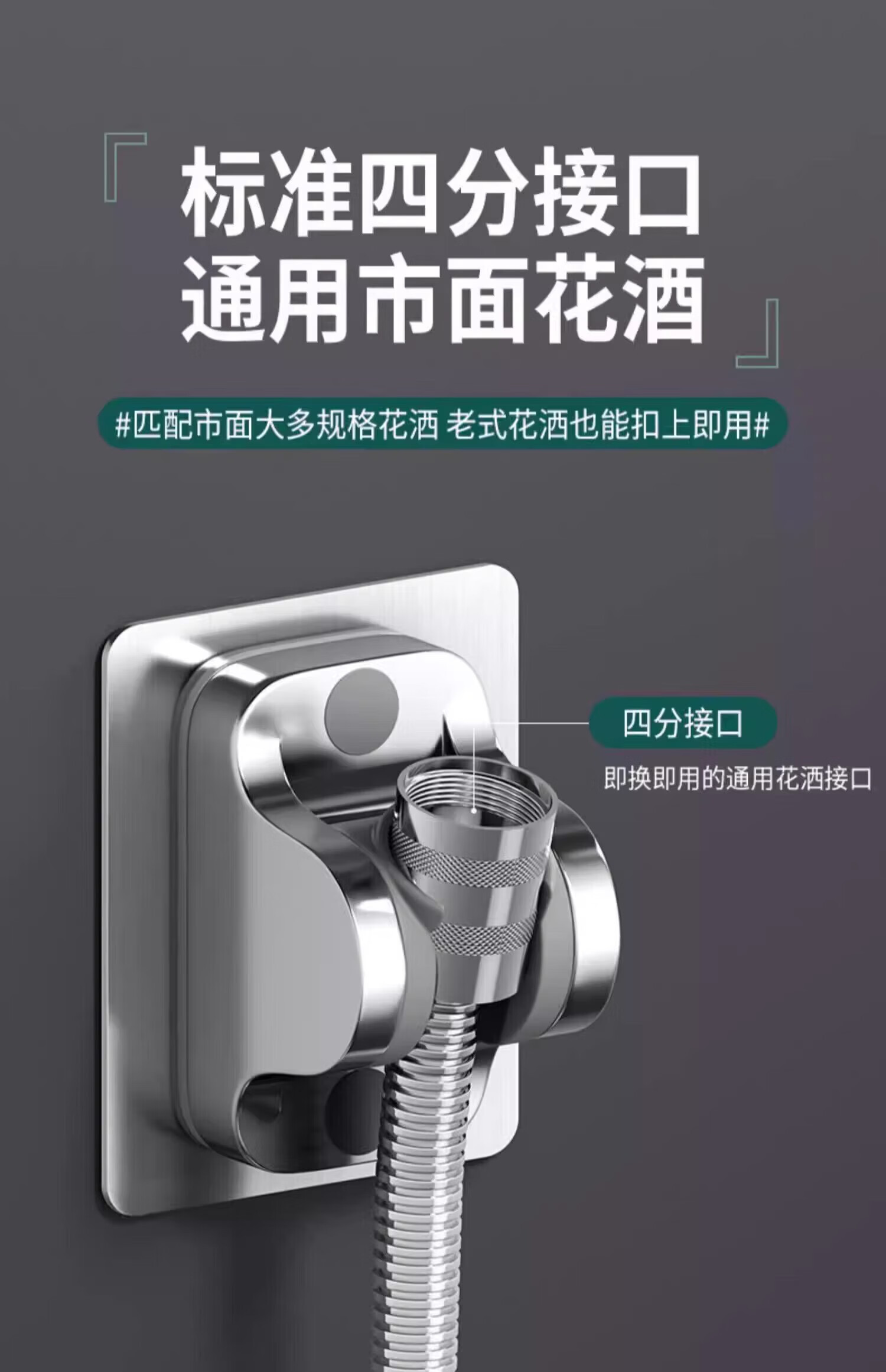 免打孔花洒支架可调节喷头挂座浴室淋浴器淋雨莲蓬固定墙底座 双重加固【万向】电镀银 无规格