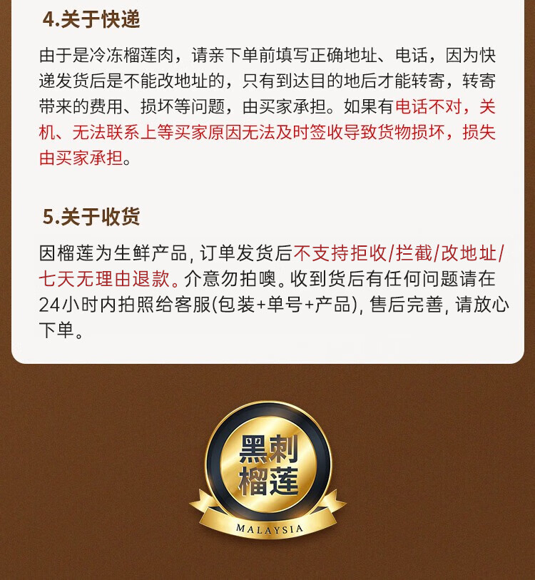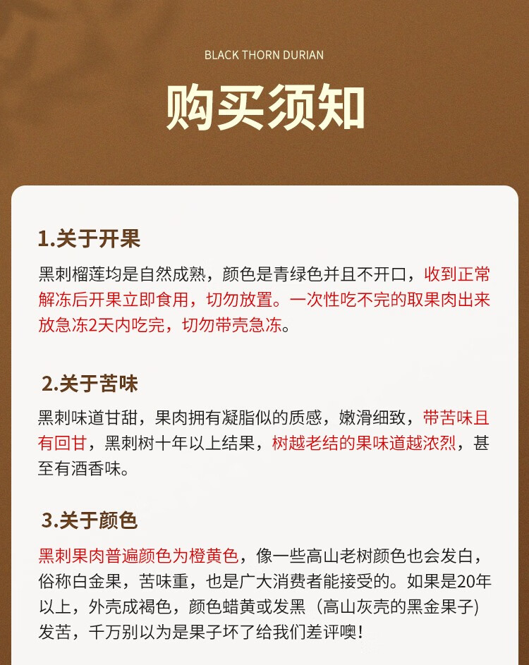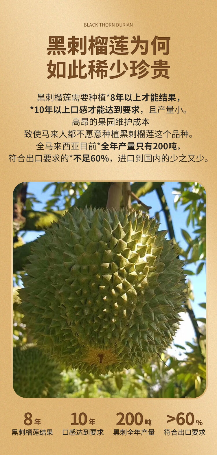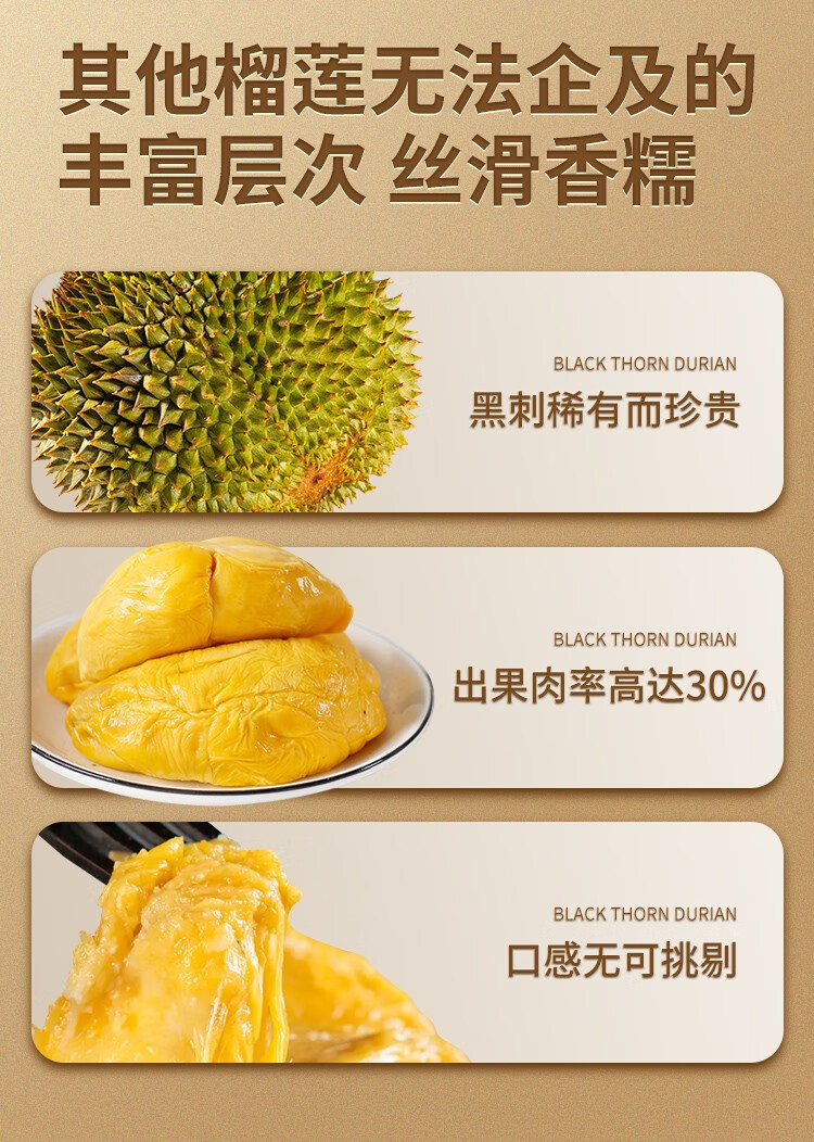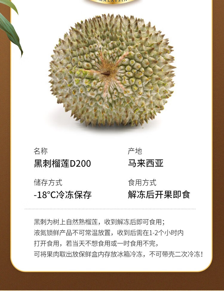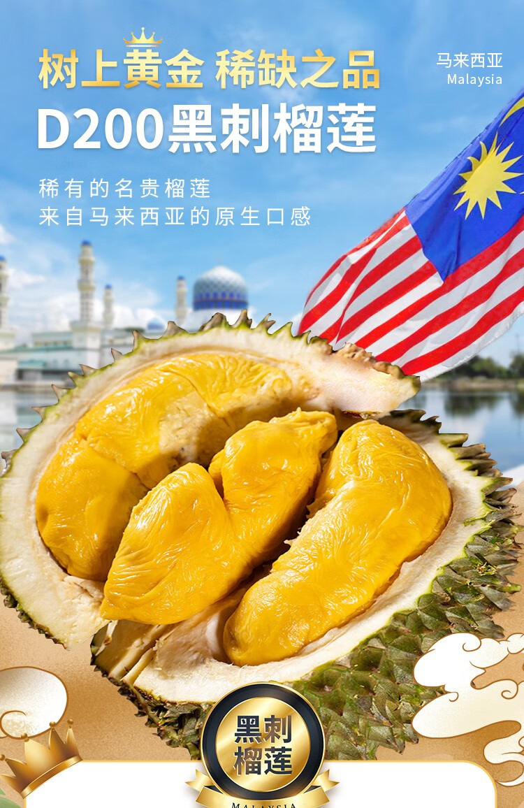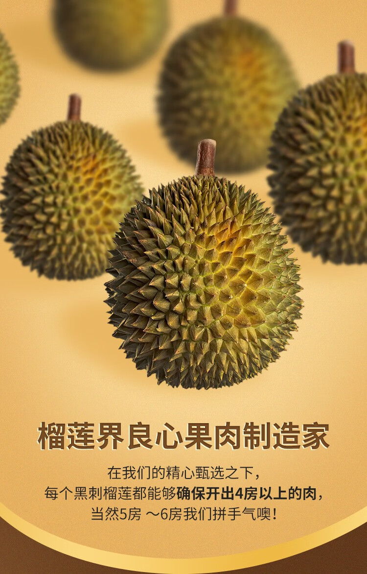 至尚云巅黑刺榴莲冷冻生鲜水果D200 5.5斤-6.0斤【豪华果 保5房】
