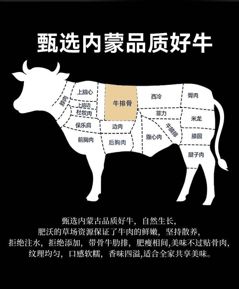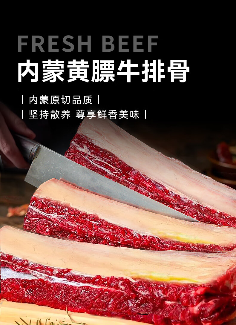 胖东来同款黄膘牛排内蒙古原切扇子骨牛排骨新鲜带肉牛肋排条生鲜 【原切中段 多肉牛肋排】内蒙散 4斤