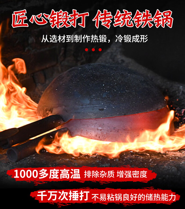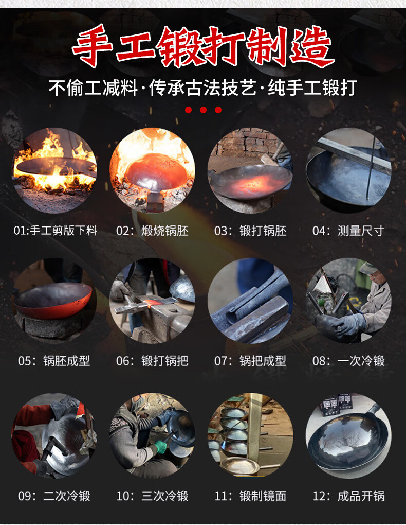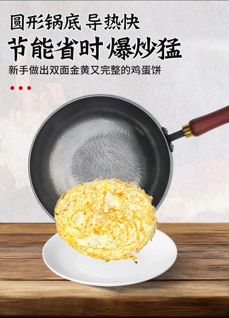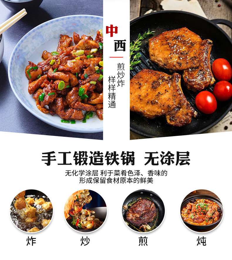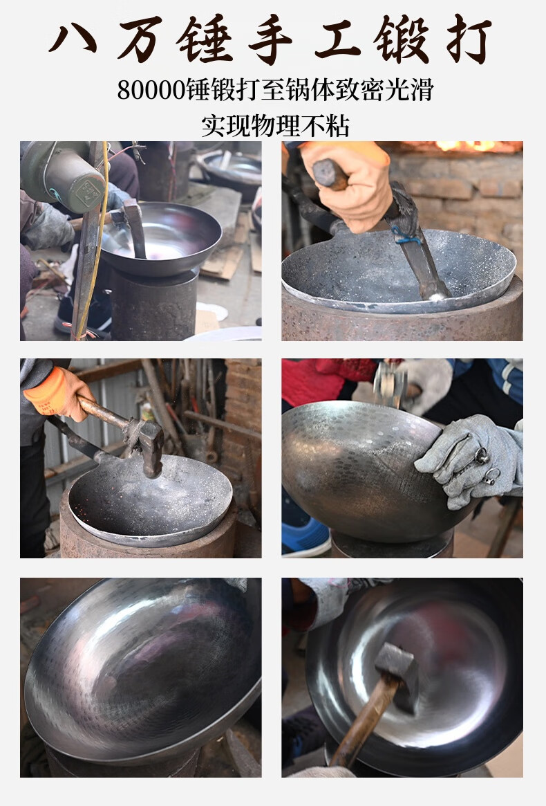 万代传铁锅章丘款炒锅不粘锅锻打无涂层老式炒锅燃气煤气灶通用圆底锅 【4-8人使用】 36cm 手工锻打古法黑锅