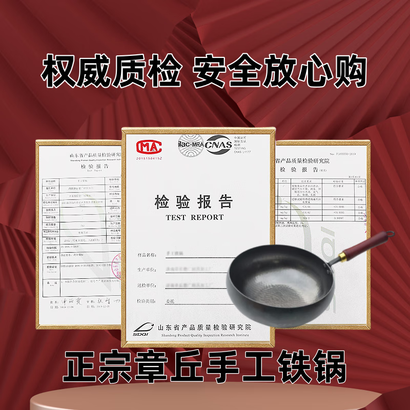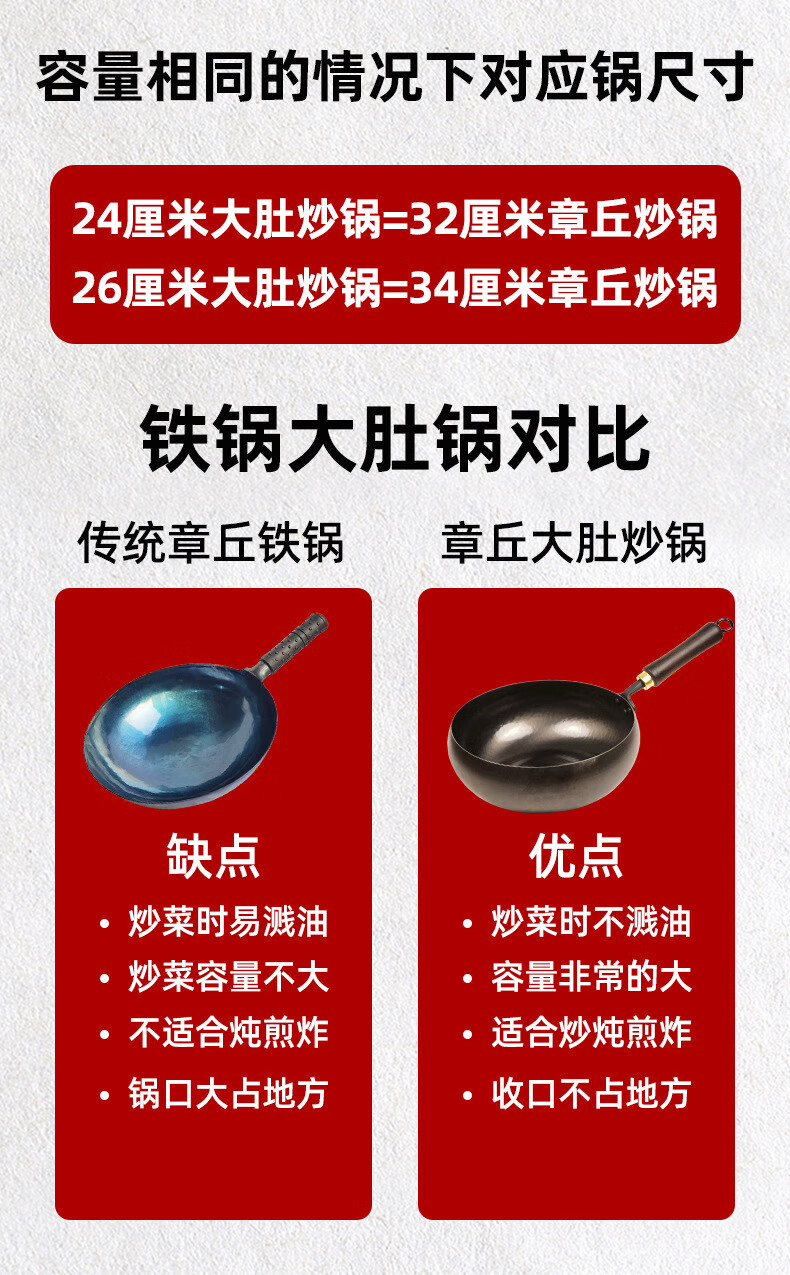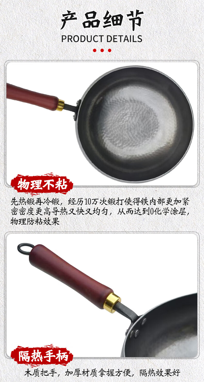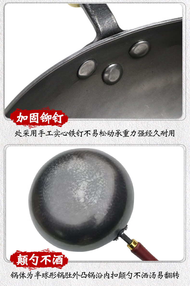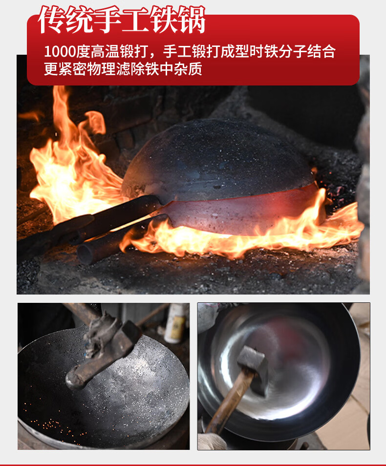 万代传铁锅章丘款炒锅不粘锅锻打无涂层老式炒锅燃气煤气灶通用圆底锅 【4-8人使用】 36cm 手工锻打古法黑锅