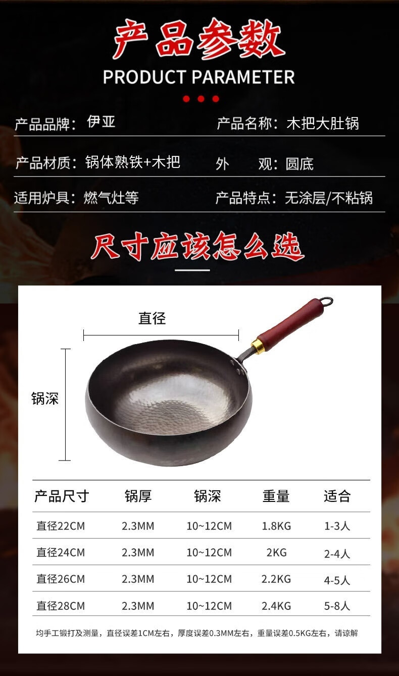 伊亚大肚铁锅章丘大肚铁锅炒锅铁锅锅正宗章丘大肚锅手工锻打熟铁锅 正宗章丘手工大肚锅【单锅】1-3人 22cm