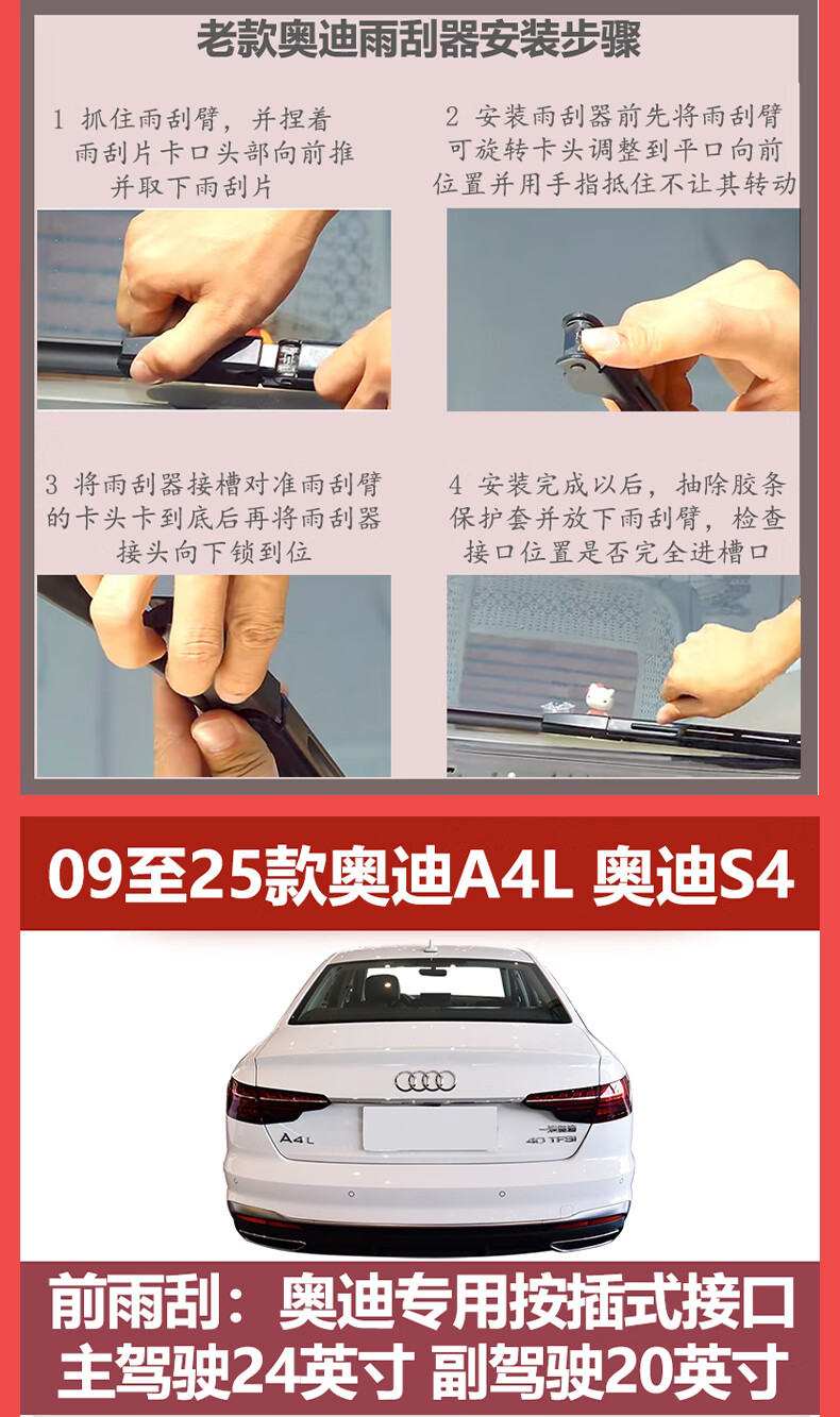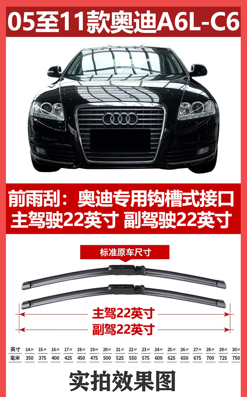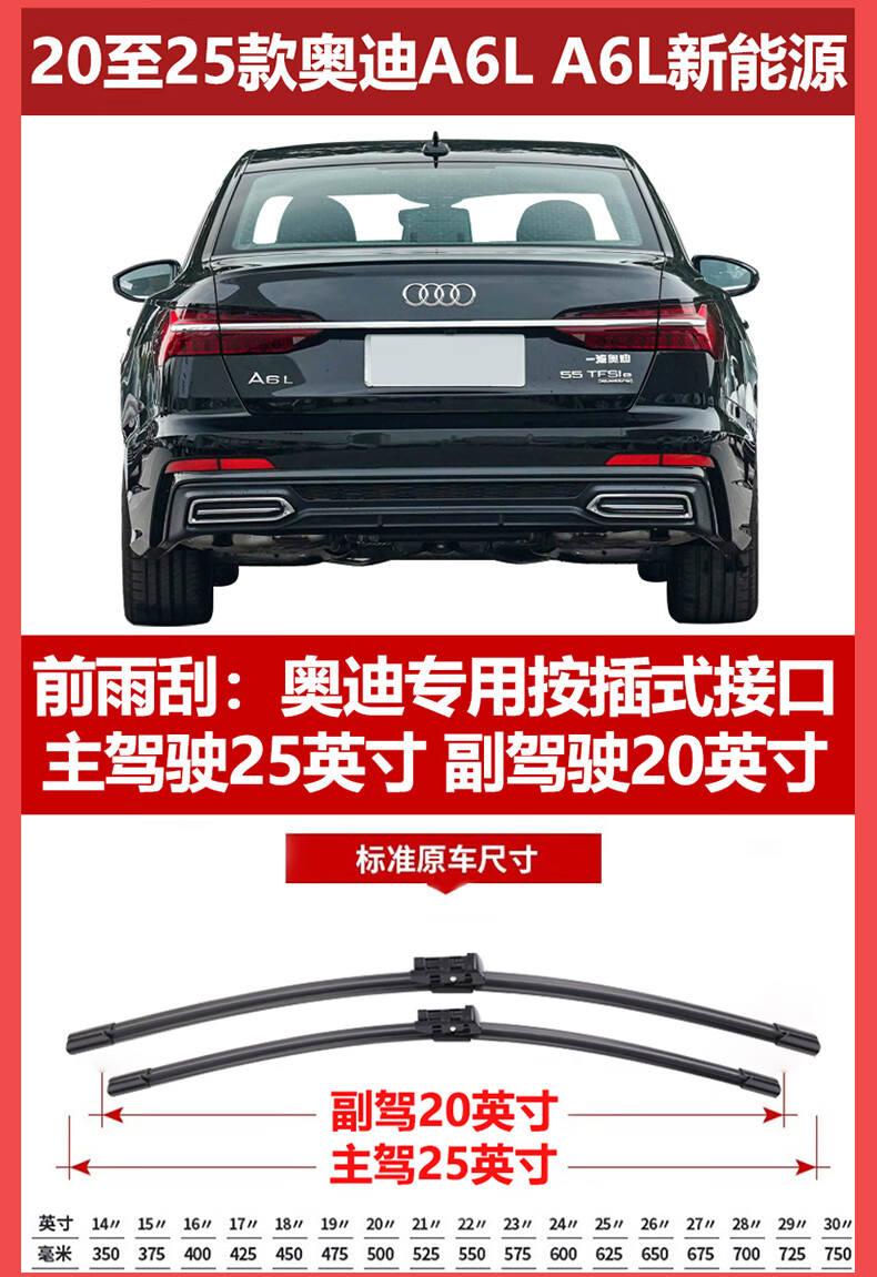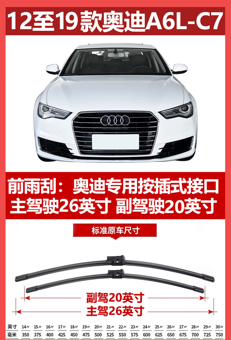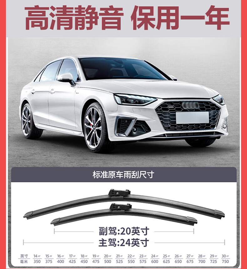 澳雷洁(AOLEIJIE)奥迪雨刮器 静音雨刷 原装雨刮片胶条 适用于 奥迪A4L 09至25款 前挡一对装