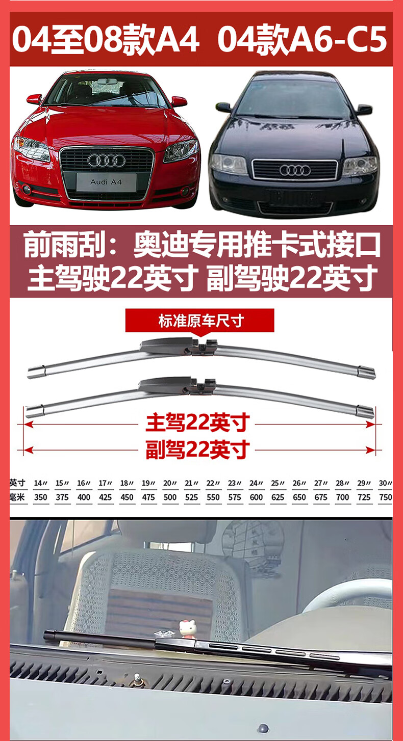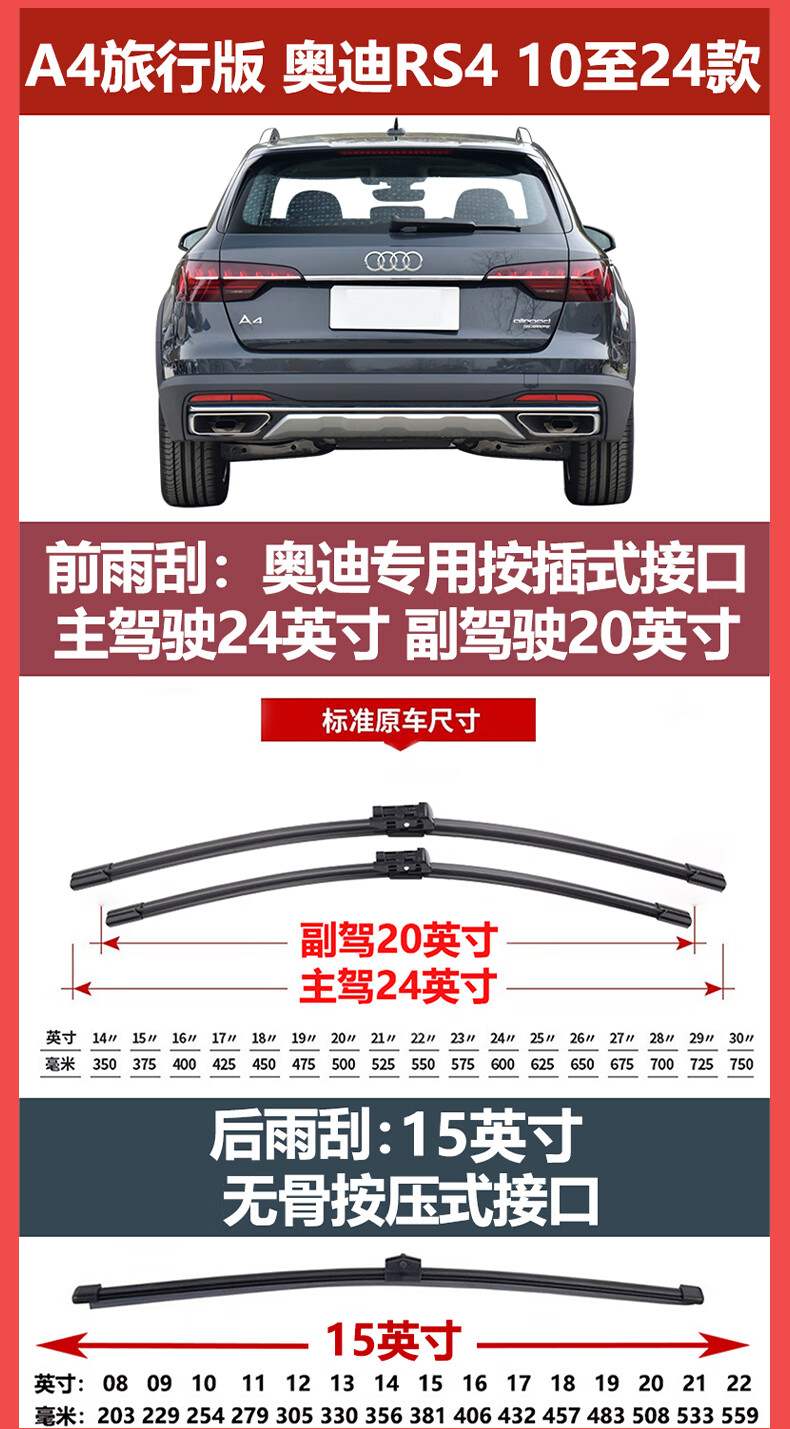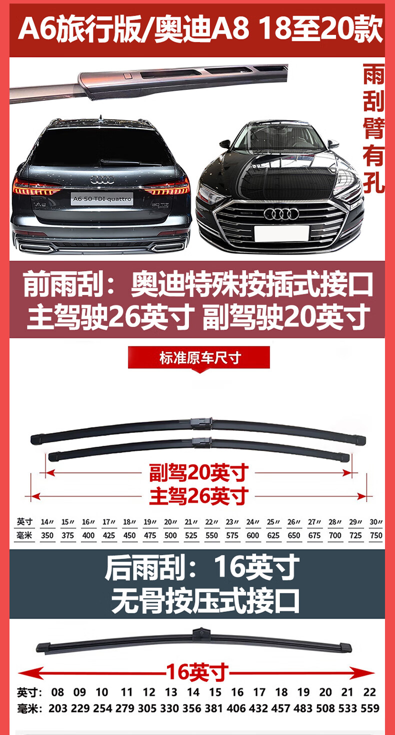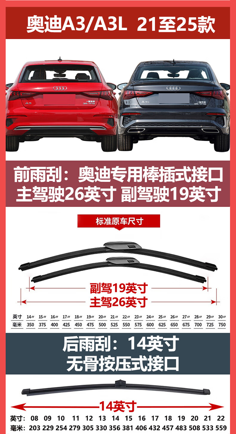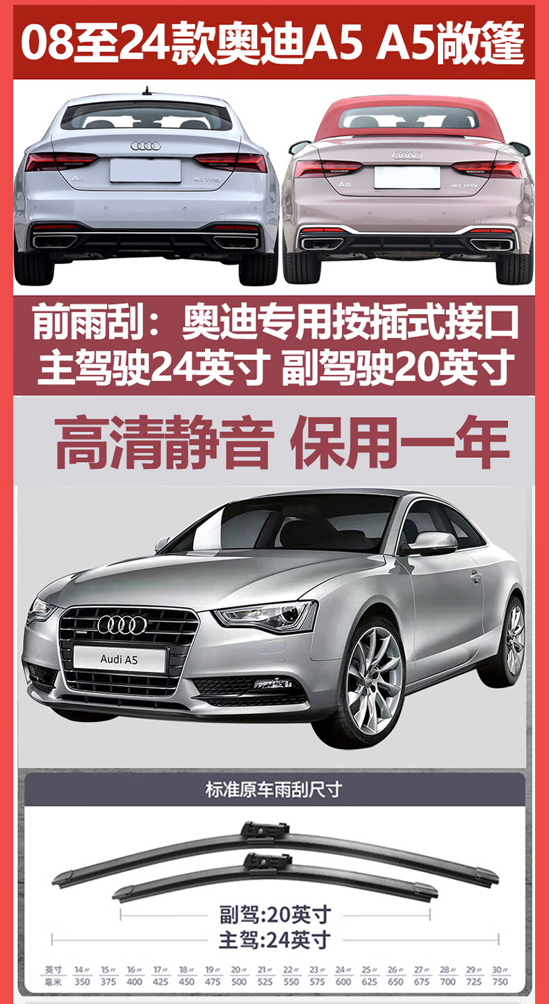 澳雷洁(AOLEIJIE)奥迪雨刮器 静音雨刷 原装雨刮片胶条 适用于 奥迪A4L 09至25款 前挡一对装