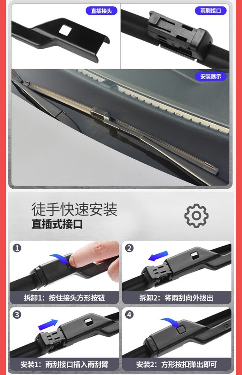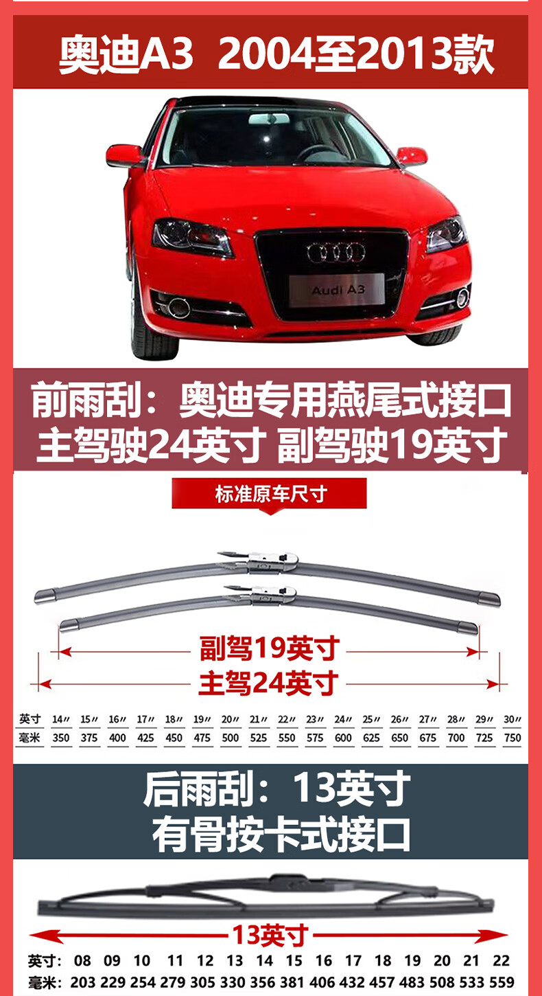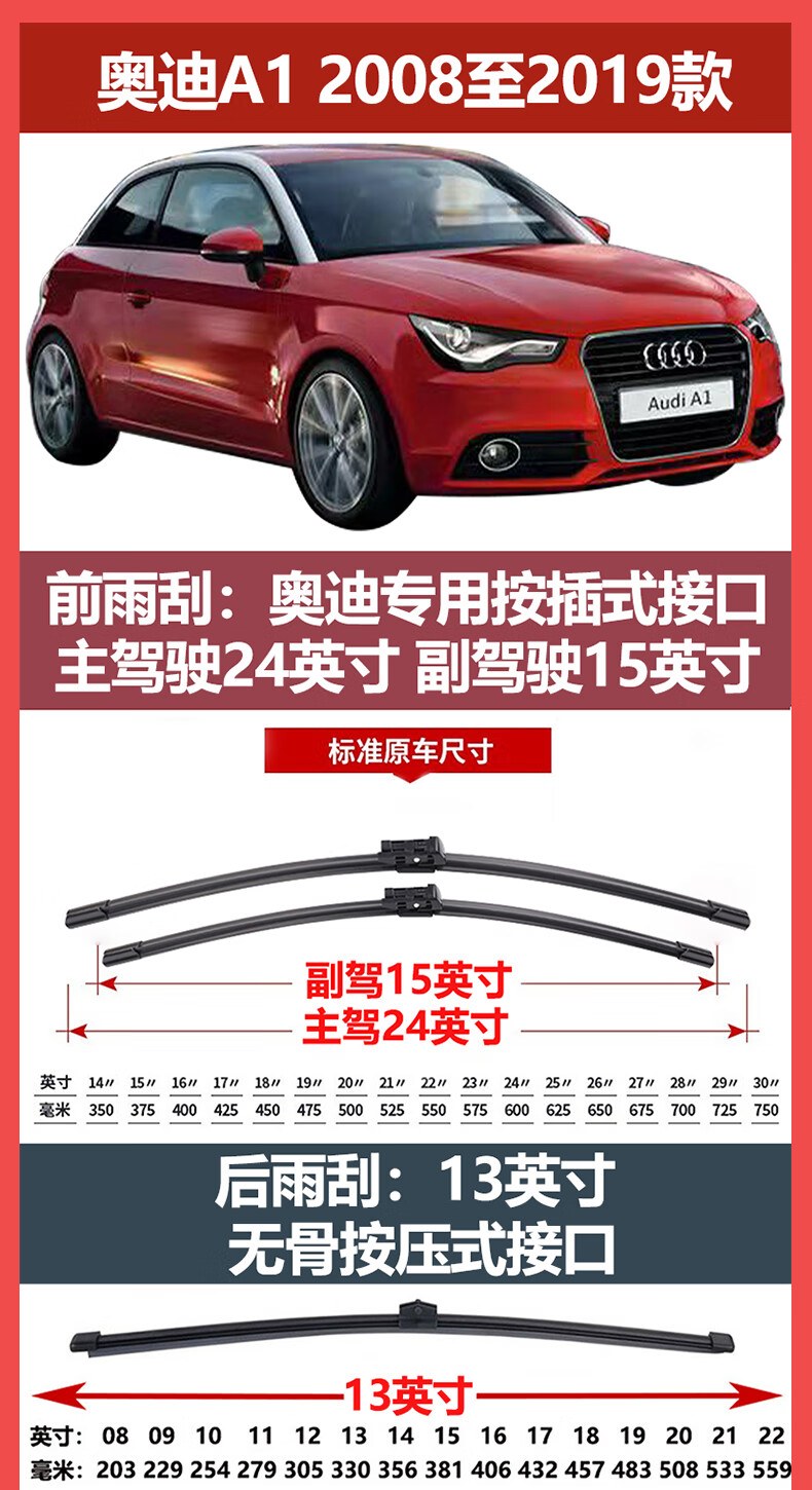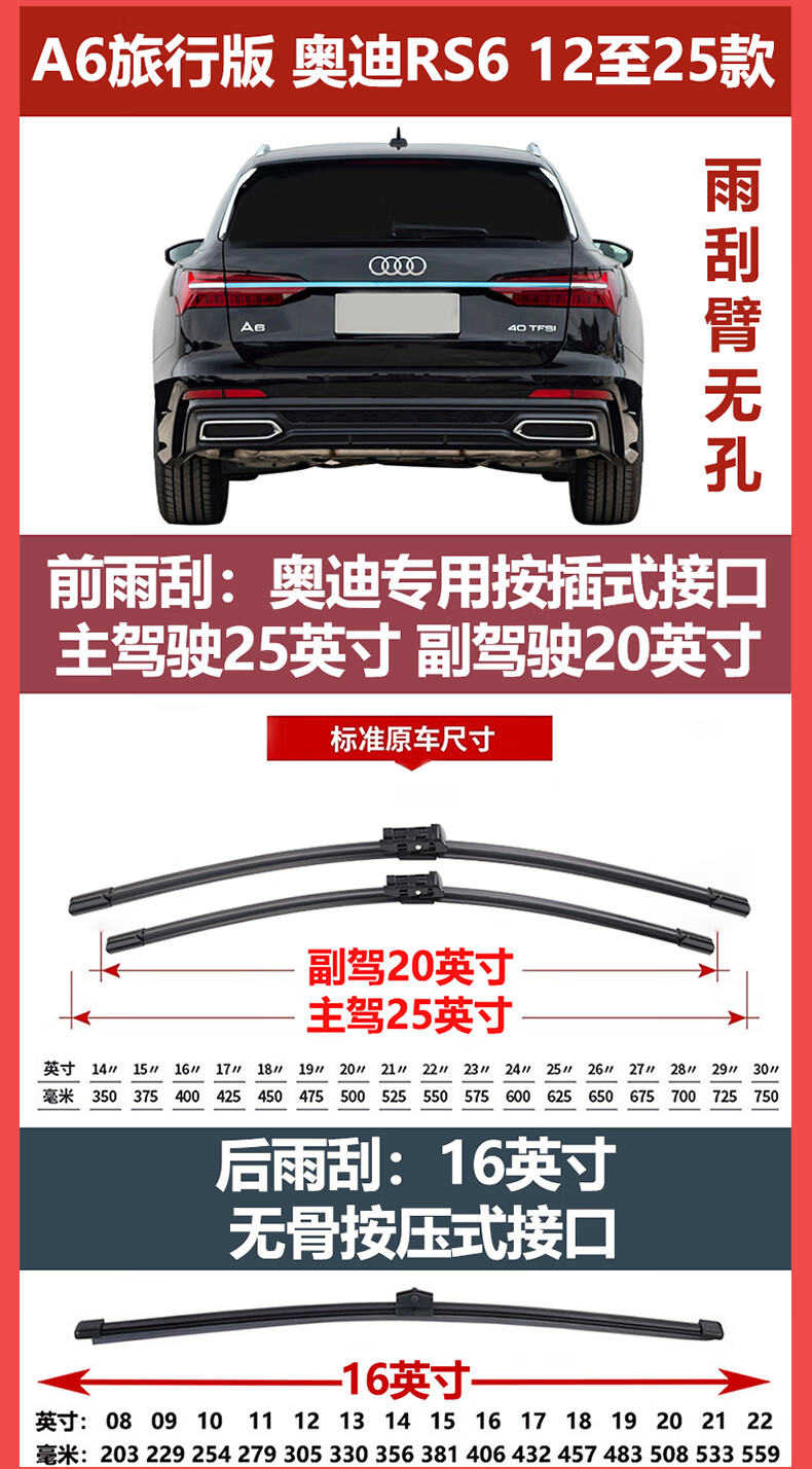 澳雷洁(AOLEIJIE)奥迪雨刮器 静音雨刷 原装雨刮片胶条 适用于 奥迪A4L 09至25款 前挡一对装