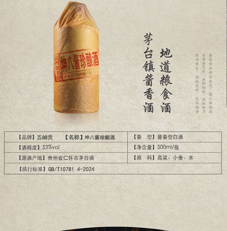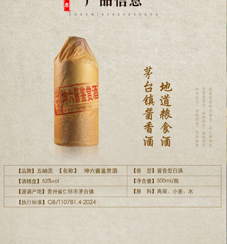 五岫贡 酱香型白酒53度 贵州茅台镇 坤沙高品质酱酒 纯粮食酒整箱 53度 500mL 6瓶 坤六酱鉴赏酒