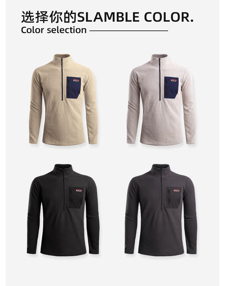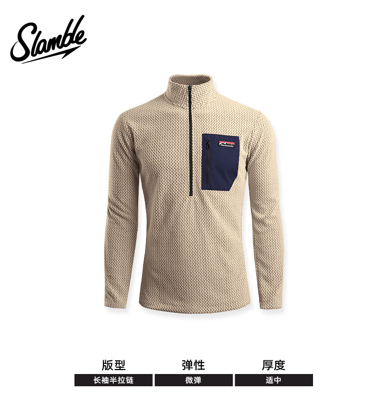 SLAMBLE春季新款立领半拉链加绒套头衫男女运动户外保暖透气上衣 燕麦色 M