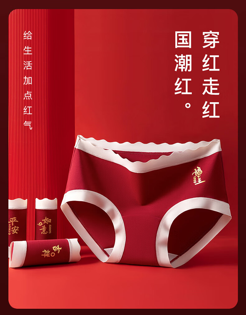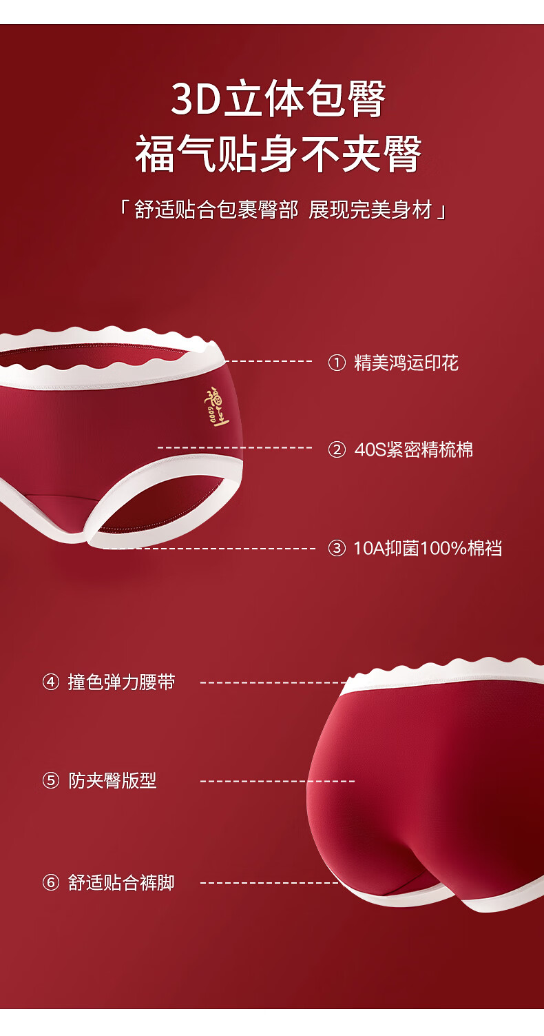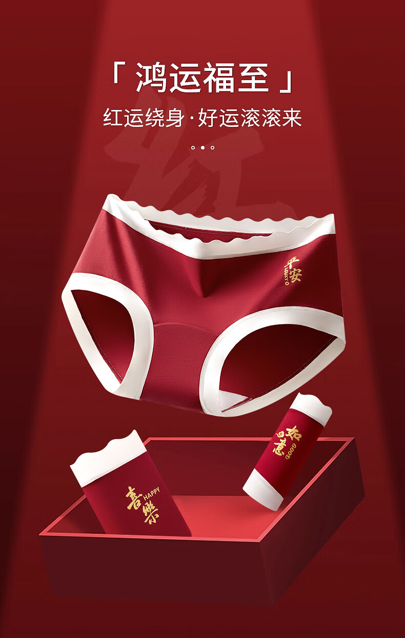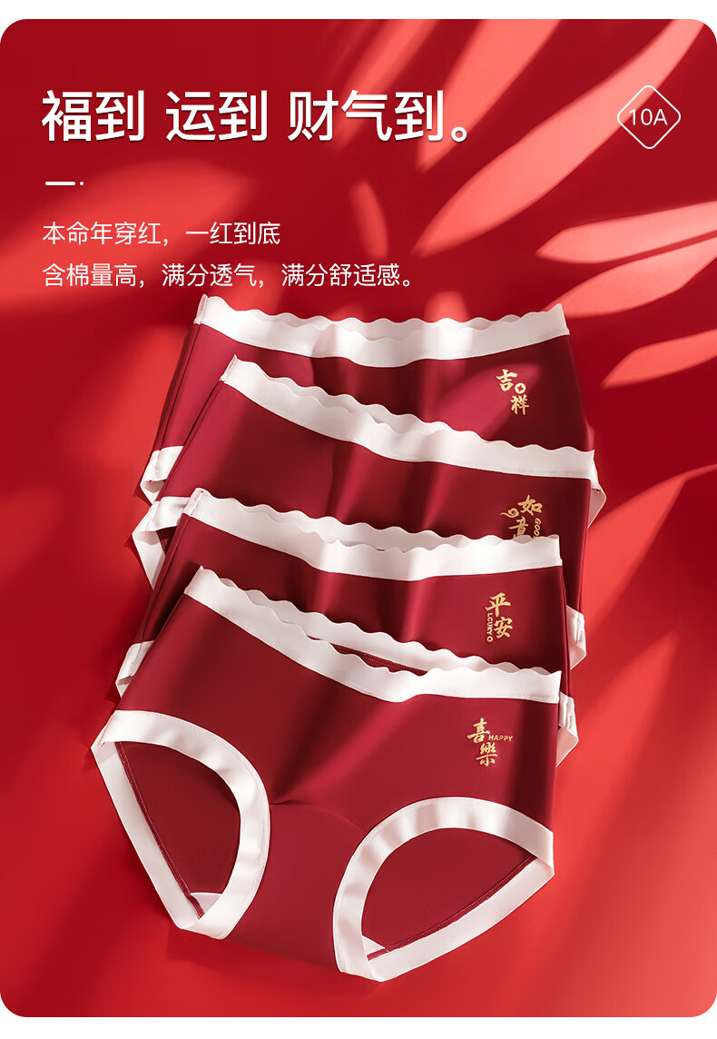 猫人(MiiOW)红色内裤少女纯棉10A级抗菌全棉裆2025年新款本命年中腰三角裤 如意+平安+吉祥 3条 160 (M) 建议体重60-80斤