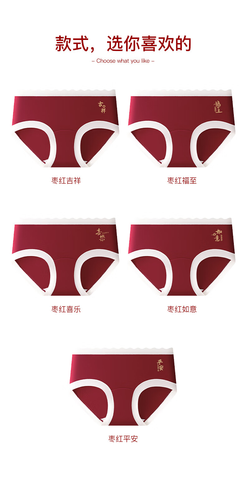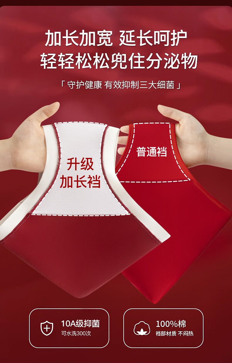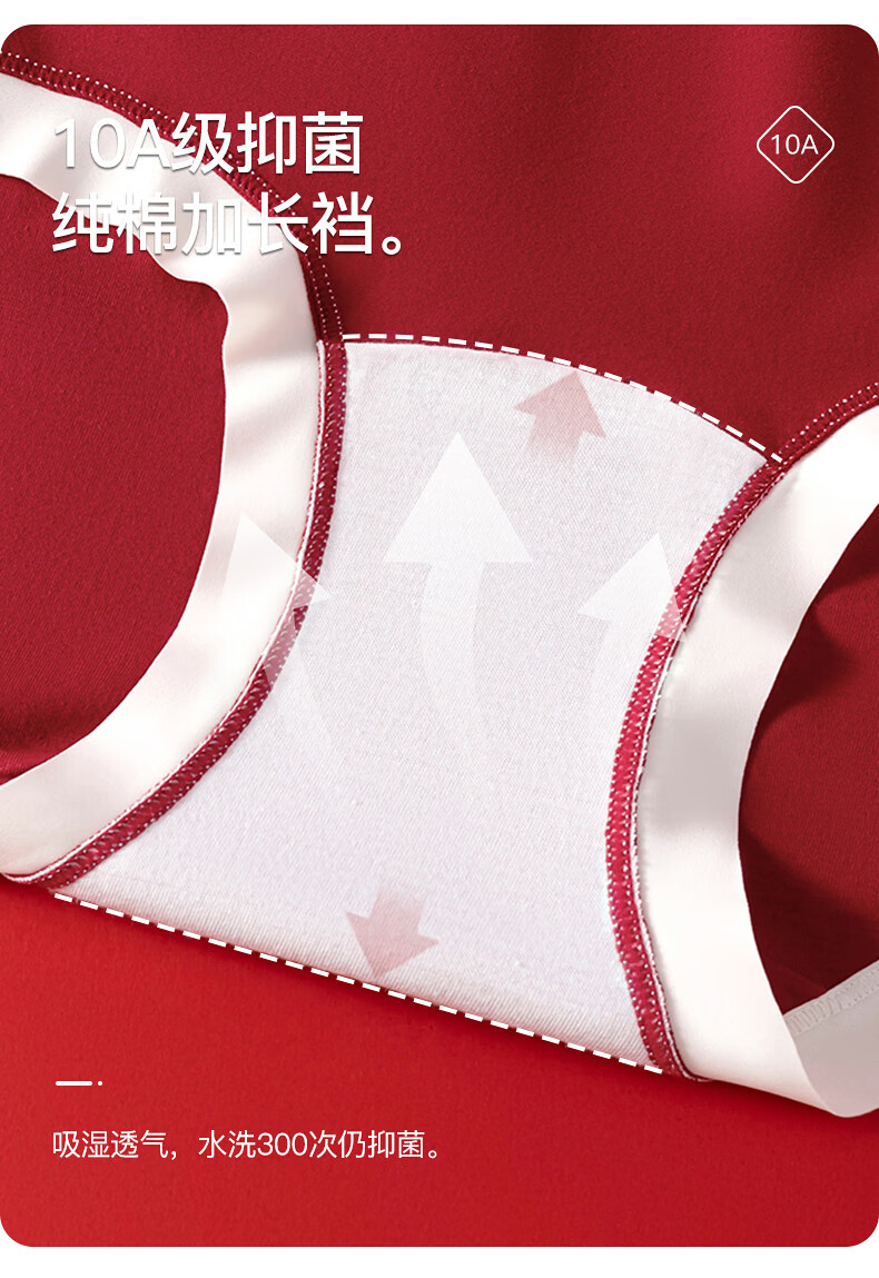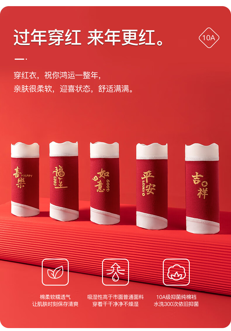 猫人(MiiOW)红色内裤少女纯棉10A级抗菌全棉裆2025年新款本命年中腰三角裤 如意+平安+吉祥 3条 160 (M) 建议体重60-80斤