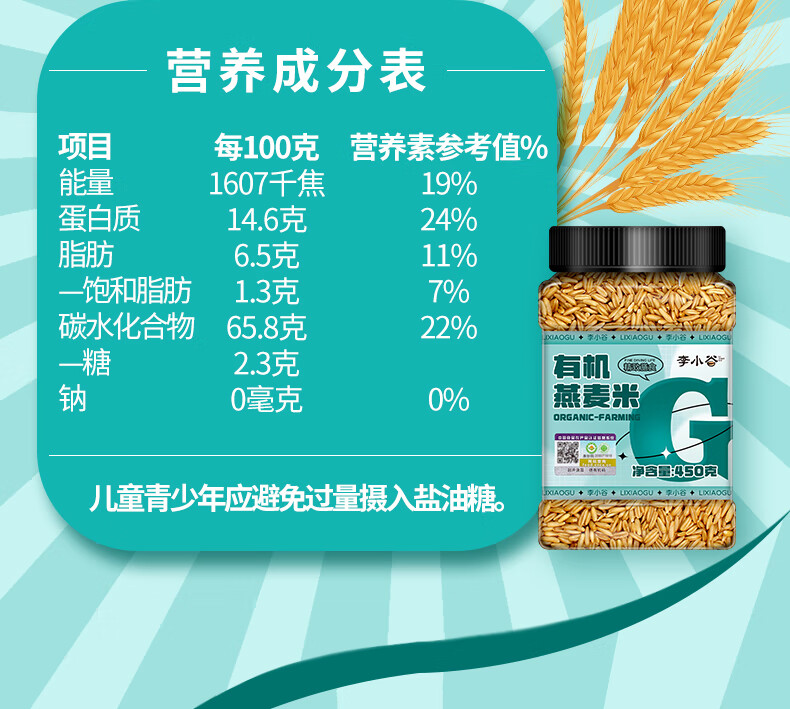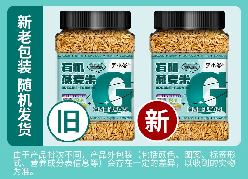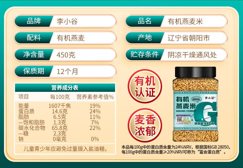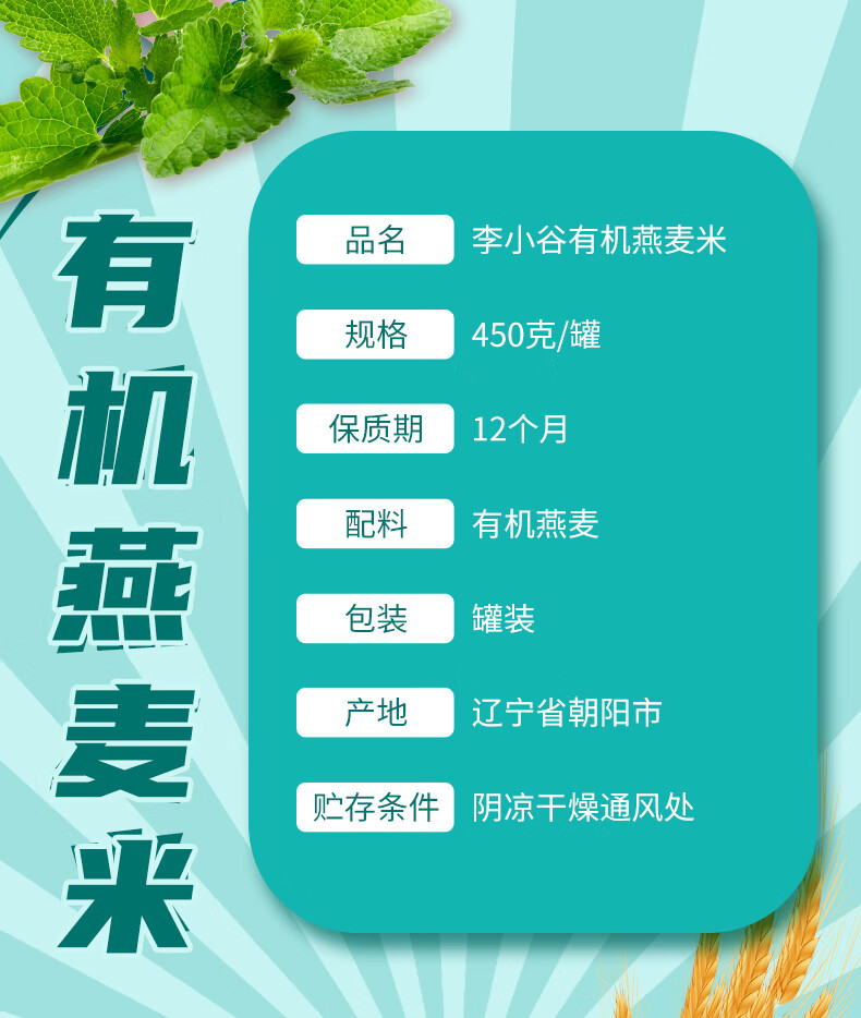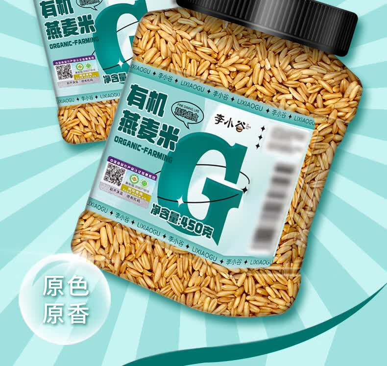 李小谷 有机燕麦米450克罐装(轻食原料五谷杂粮粥米伴侣燕麦仁米)
