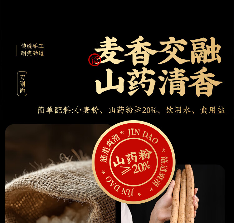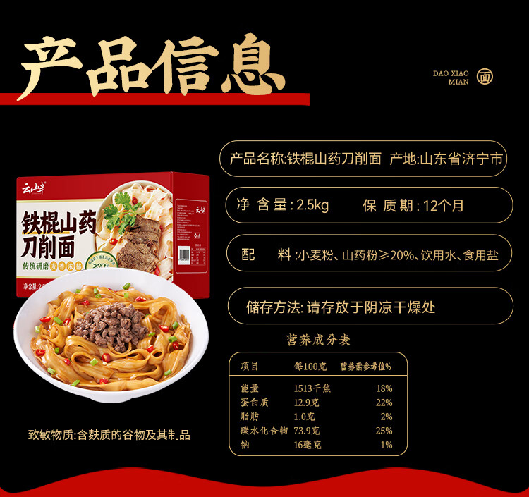 云山半铁棍山药刀削面2.5kg 低脂肪低钠拌面宽面烩面油泼面速食挂面条